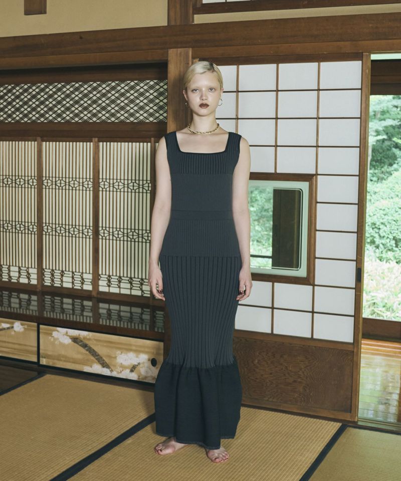 レディな気分をあげてくれるマーメイドシルエットのニットドレス。