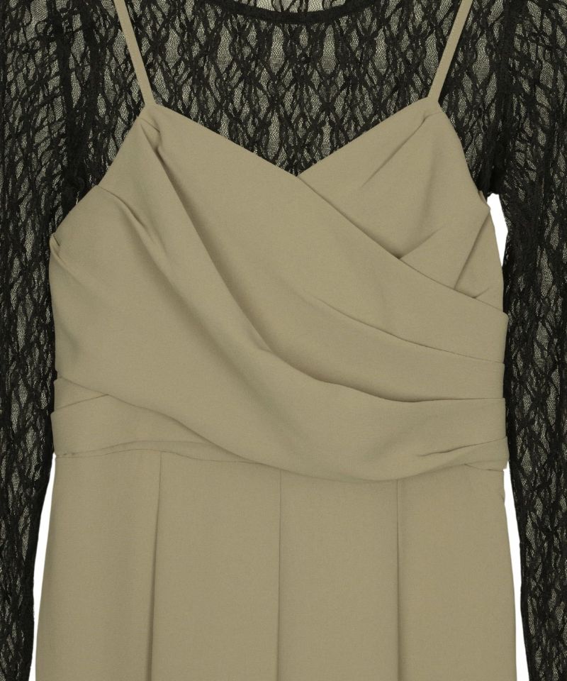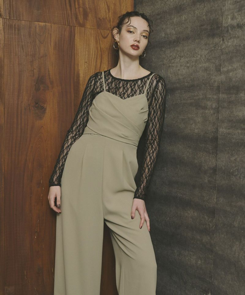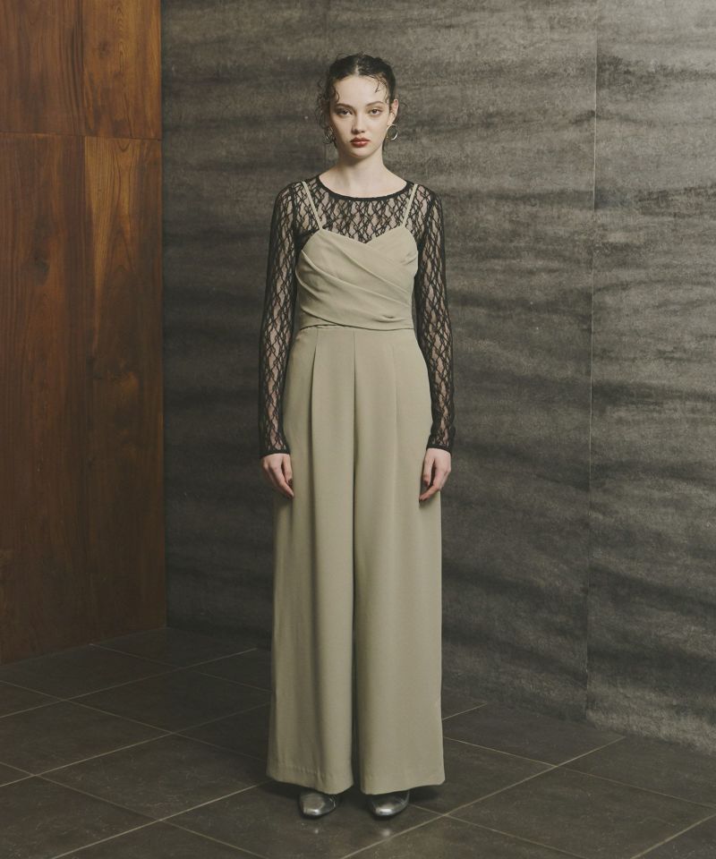 さらに、オールインワンのフロント部分にはランダムに入ったタックがポイント。