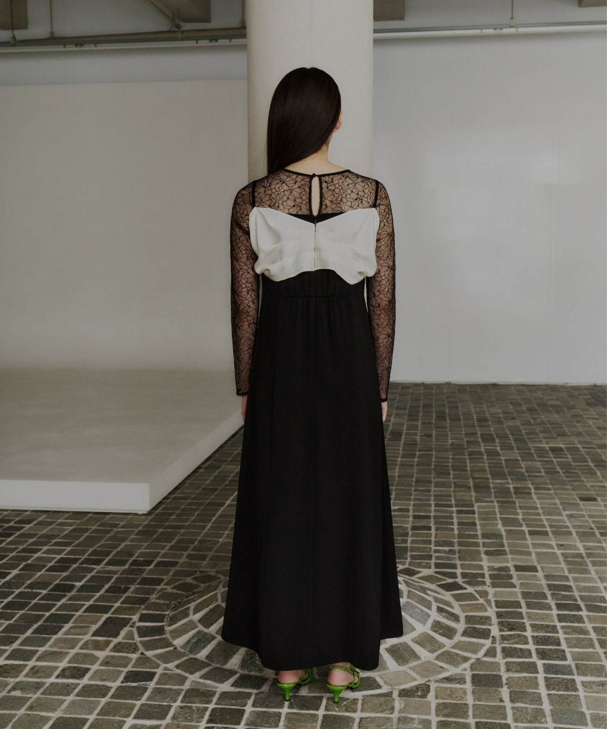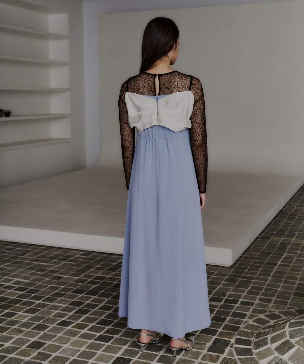 スカート部分にかけては、ドレープ性のある素材を使用。