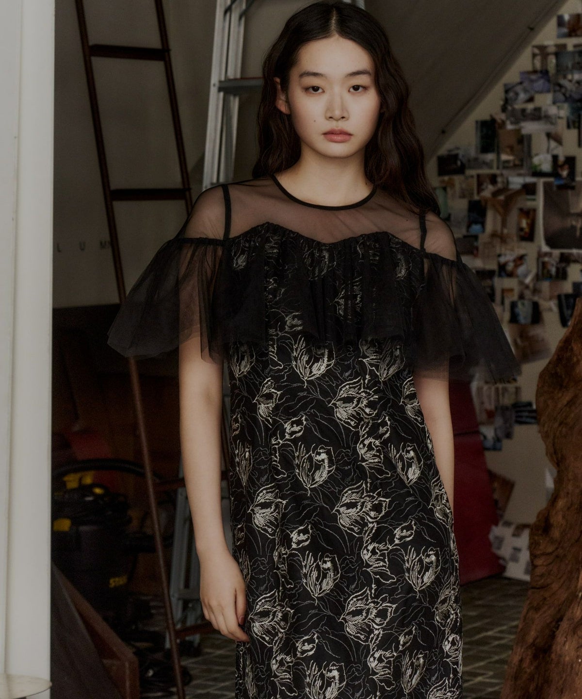 みんなが好きそうな刺繍とチュールの王道フェミニンドレスです♡