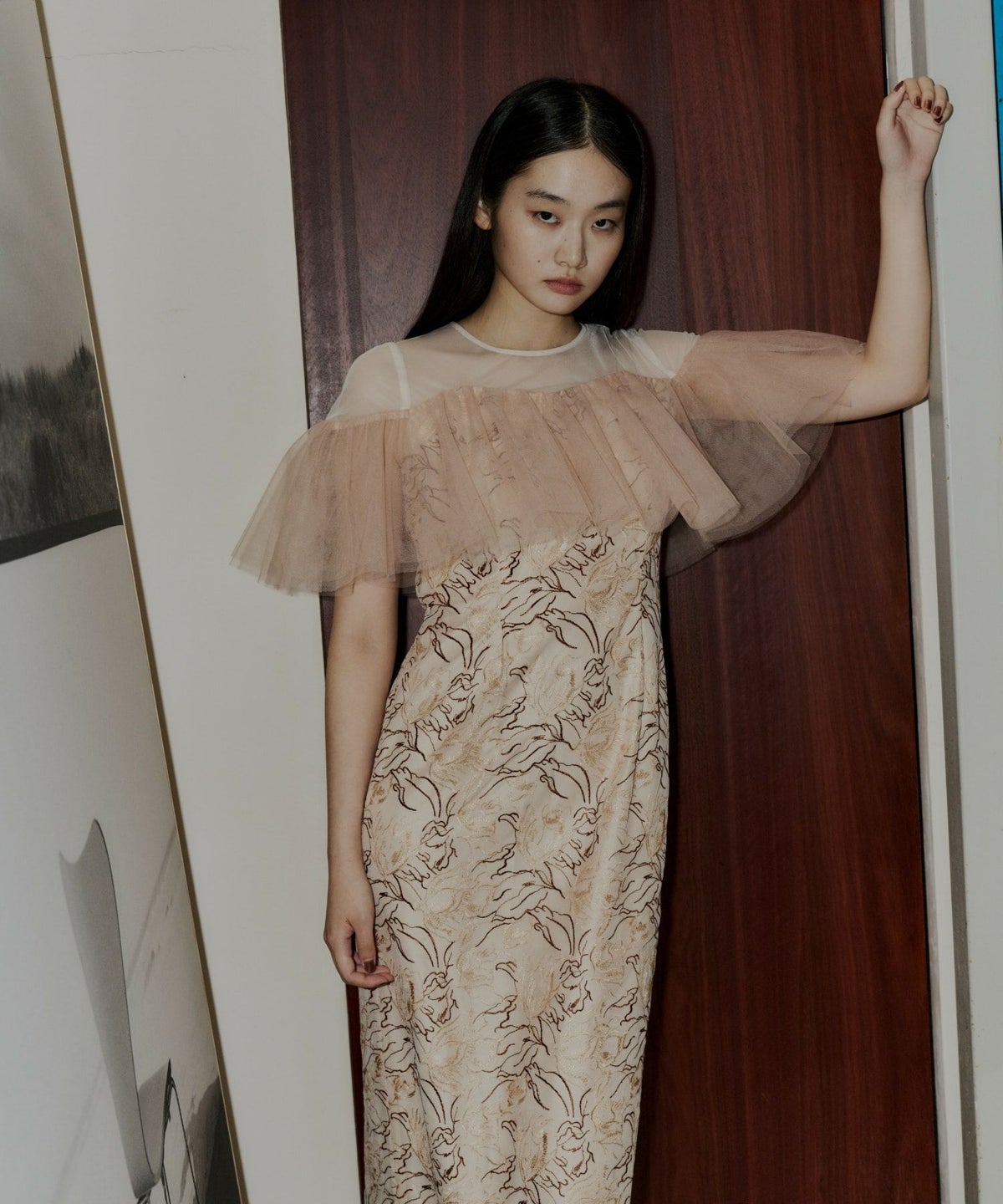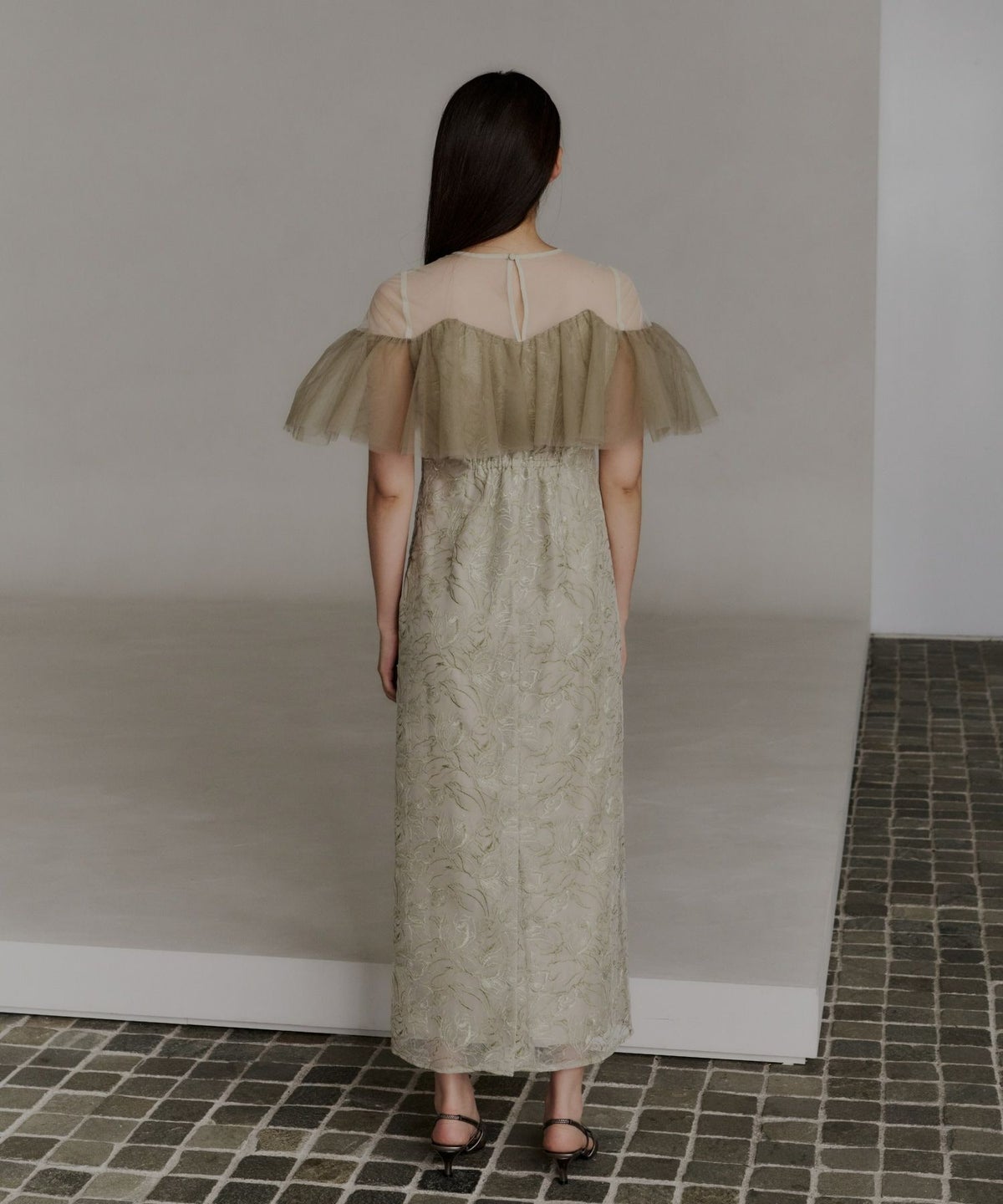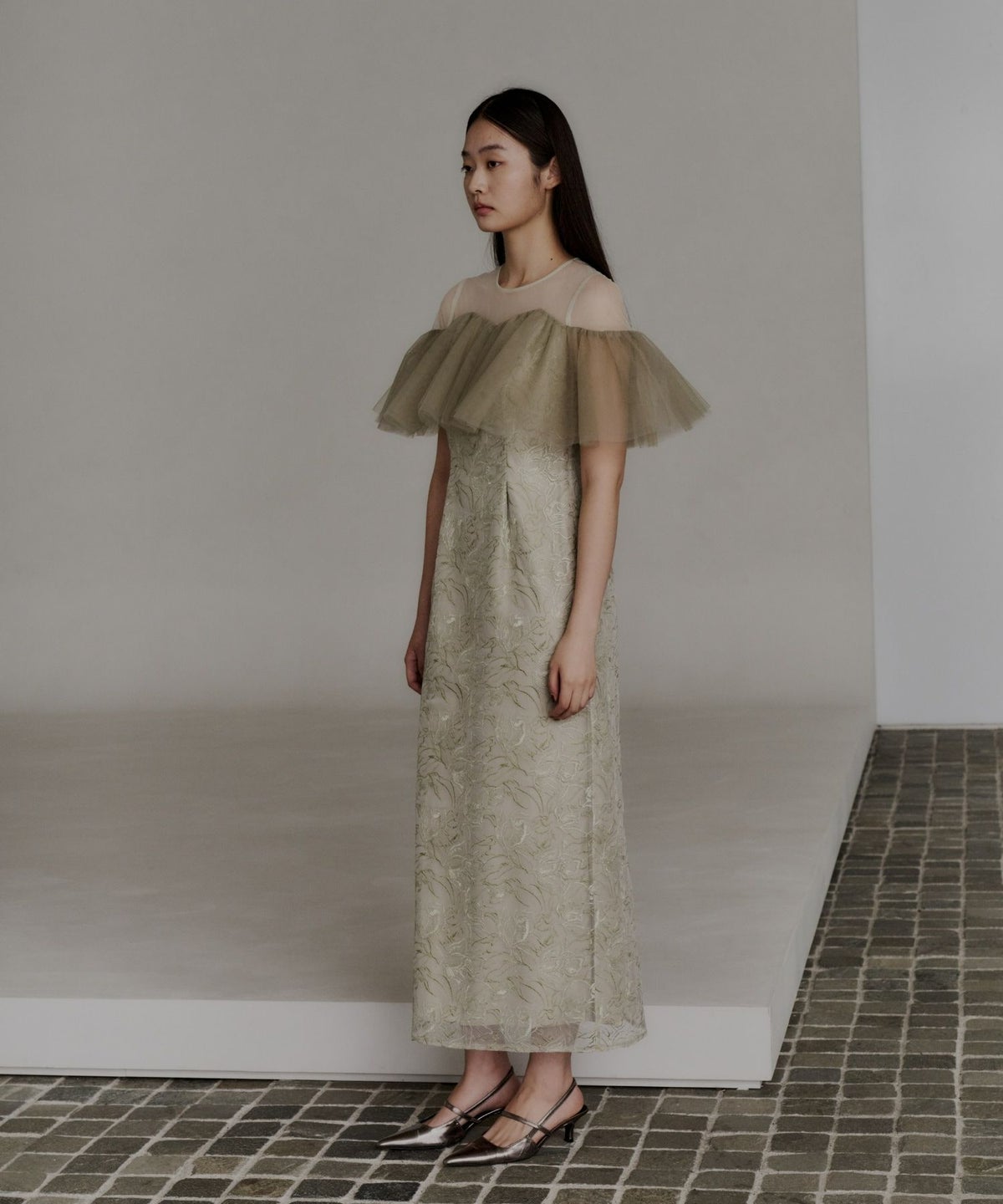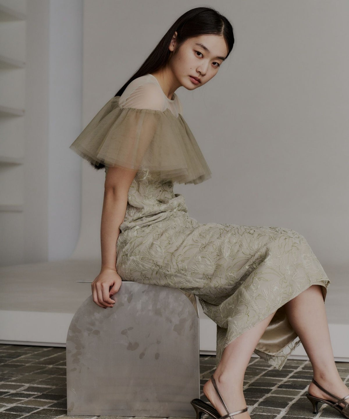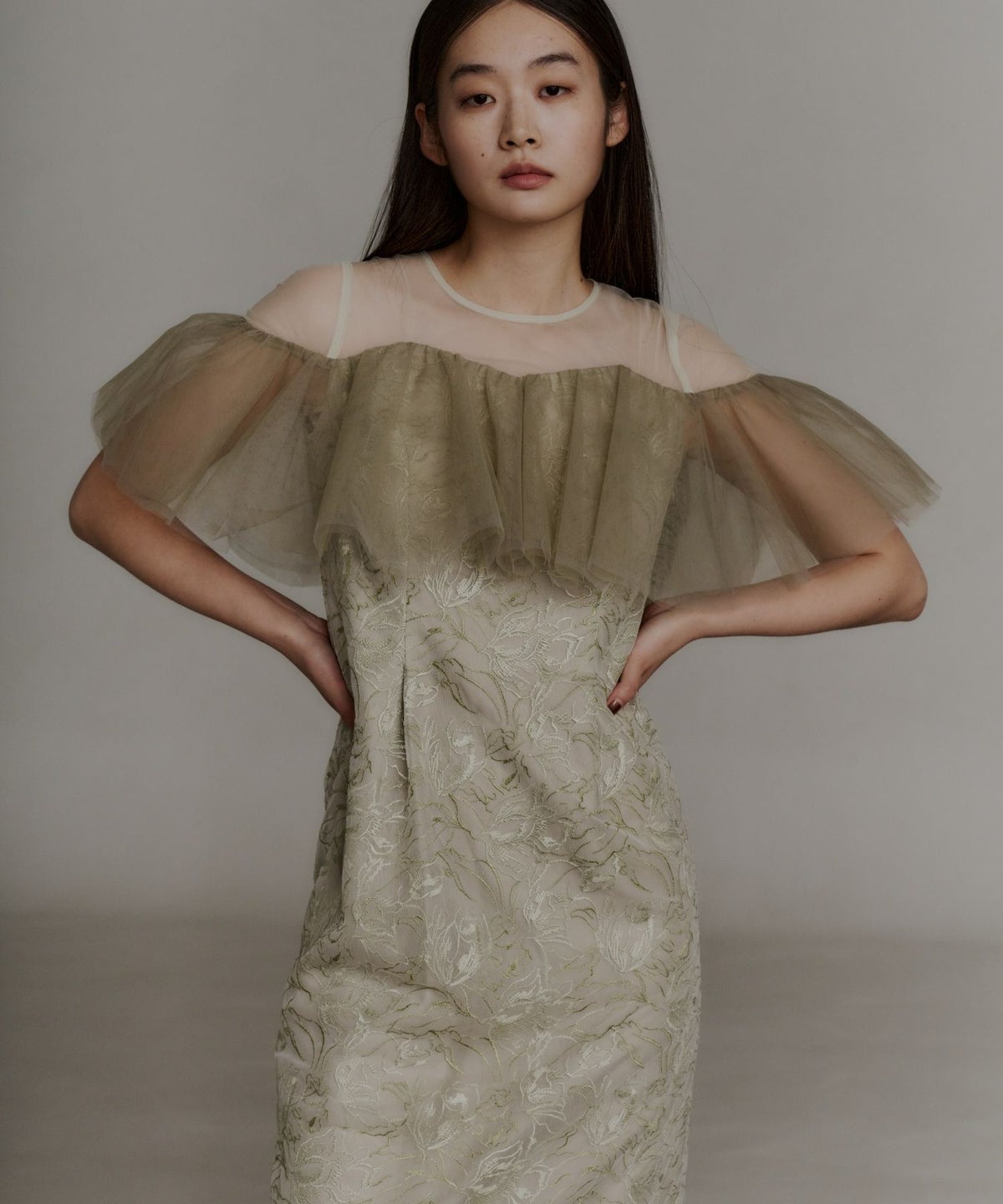 微細な色差のチュールを重ねることで奥行きのあるニュアンスを表現。