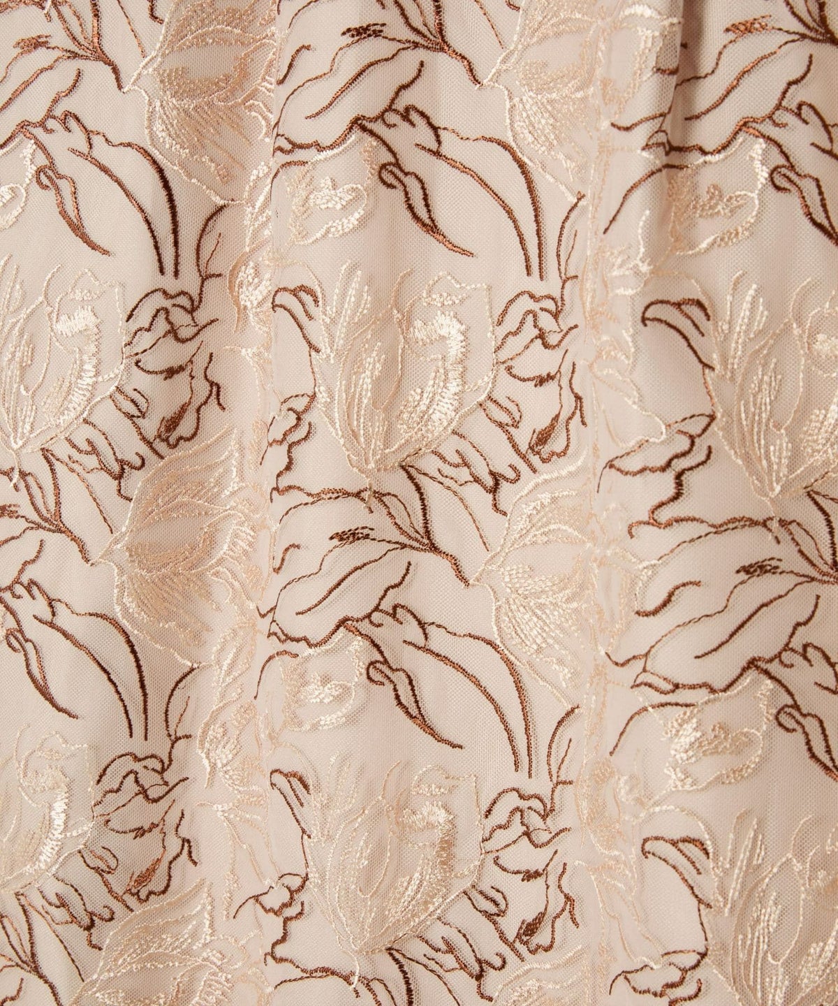 配色が目を惹く線画調のフラワー刺繍は繊細ながら存在感とフェミニンな印象を。