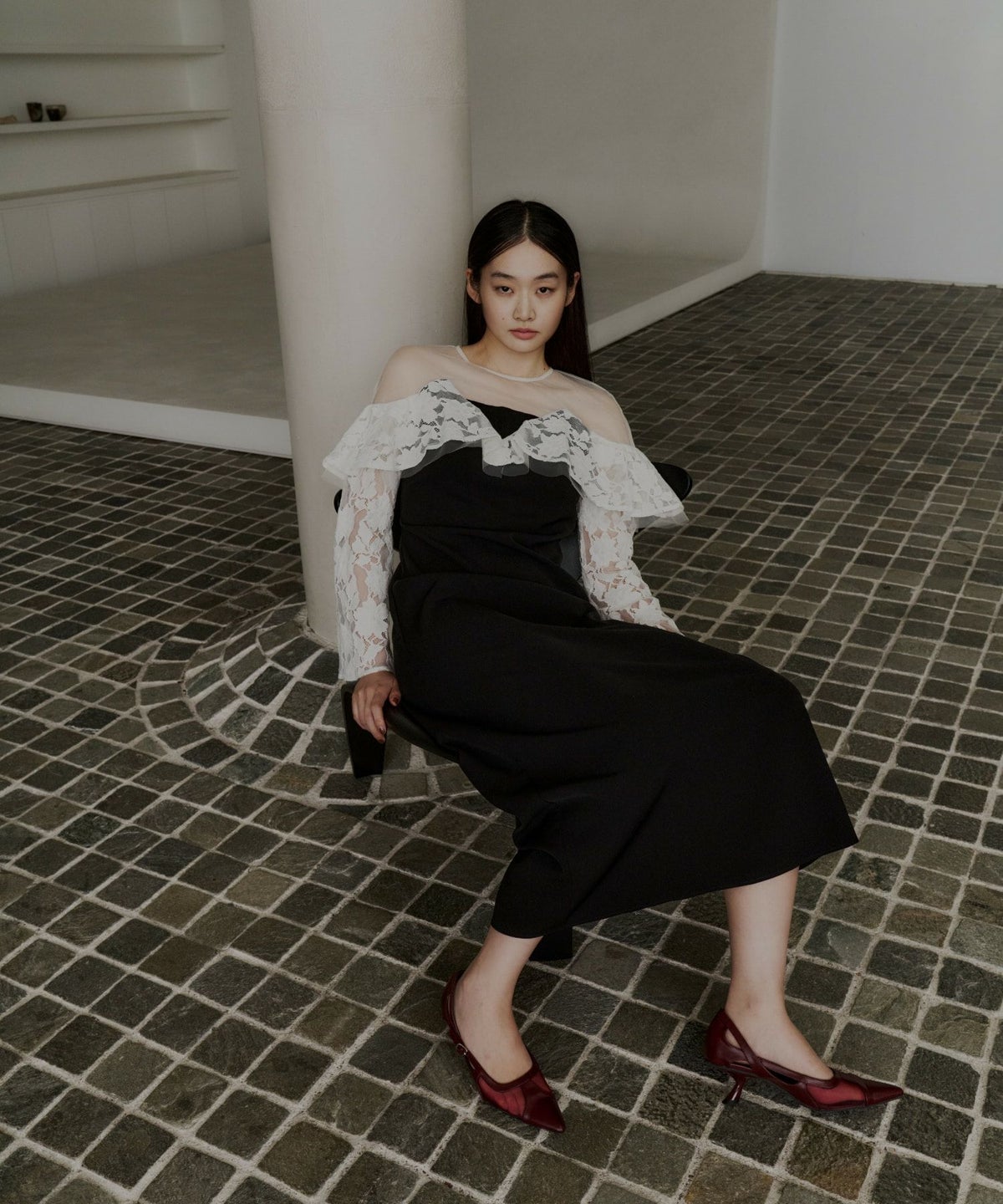 ほどよく存在感のあるレースは、モードな印象を際立たせる。