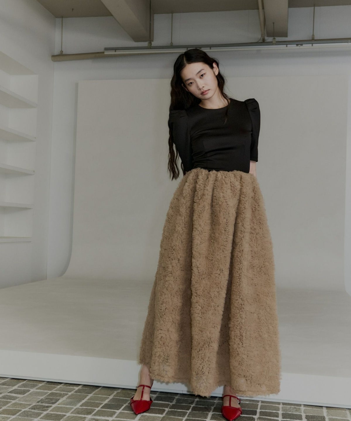 もともとはノースリーブタイプとセットだった人気スカートに、「袖ありが欲しい!」という声からアップデートしたデザインです。
