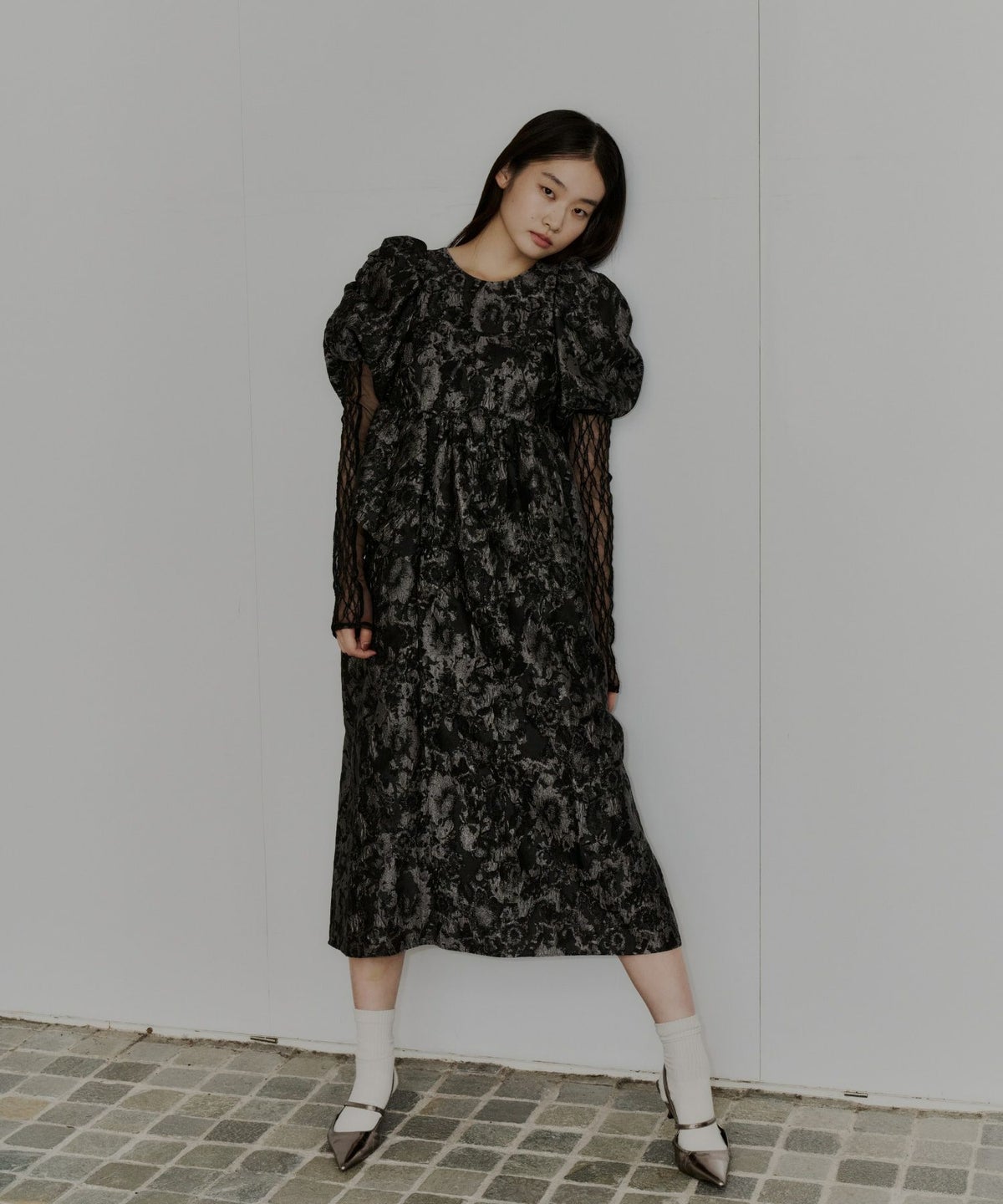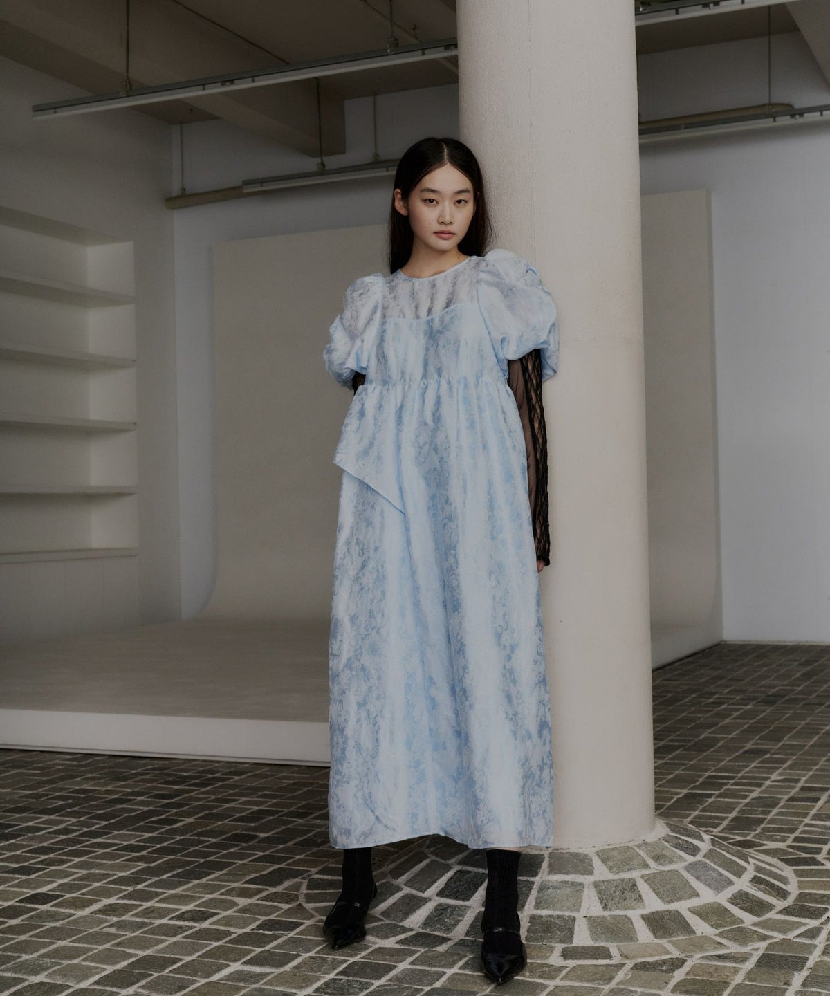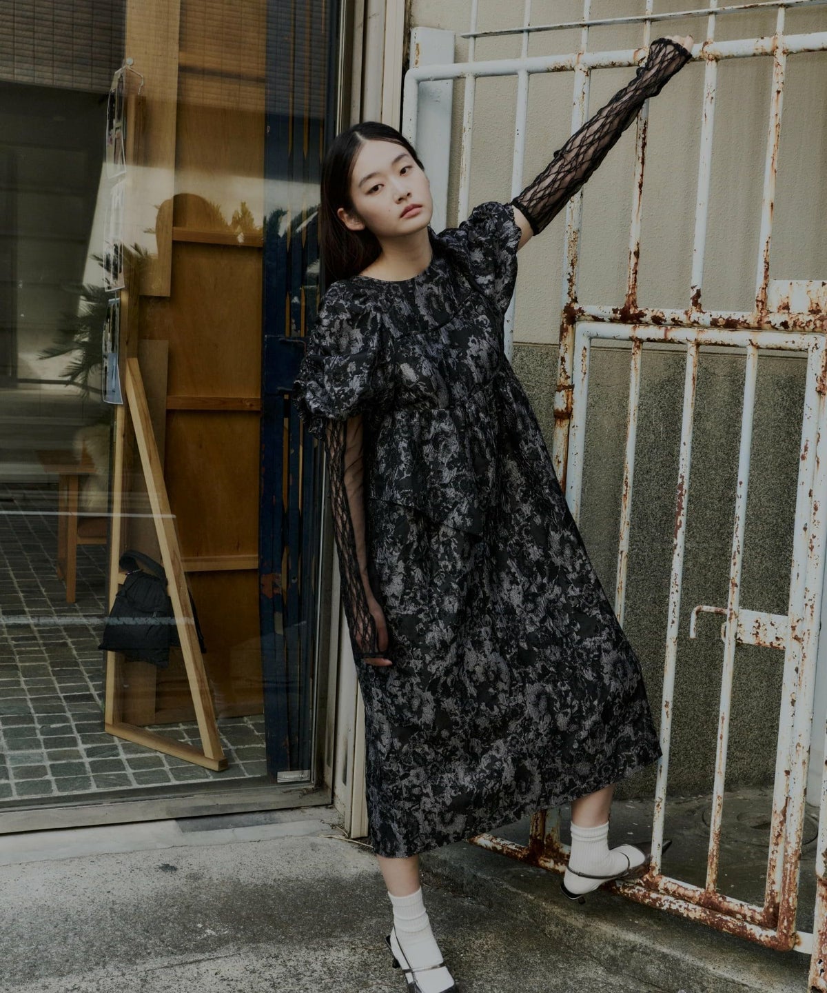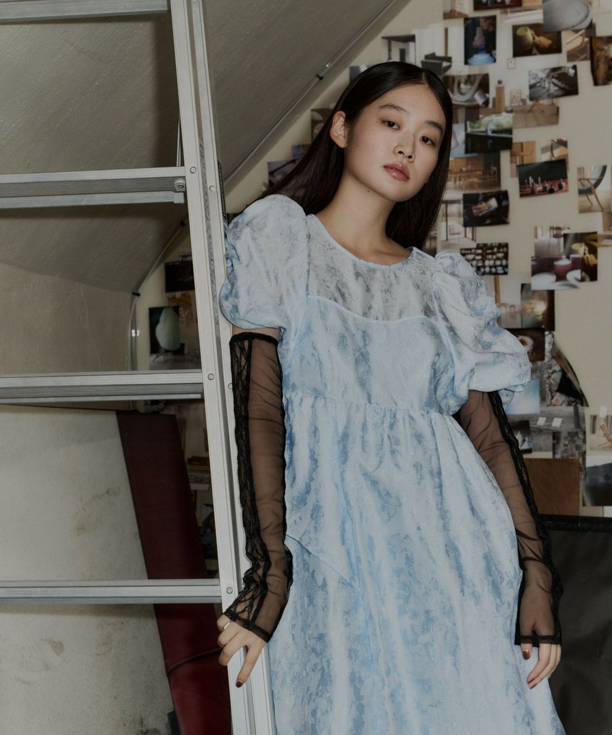 ストレッチ性のある繊細レースとチュールの切り替えで異素材の組み合わせでデザインし