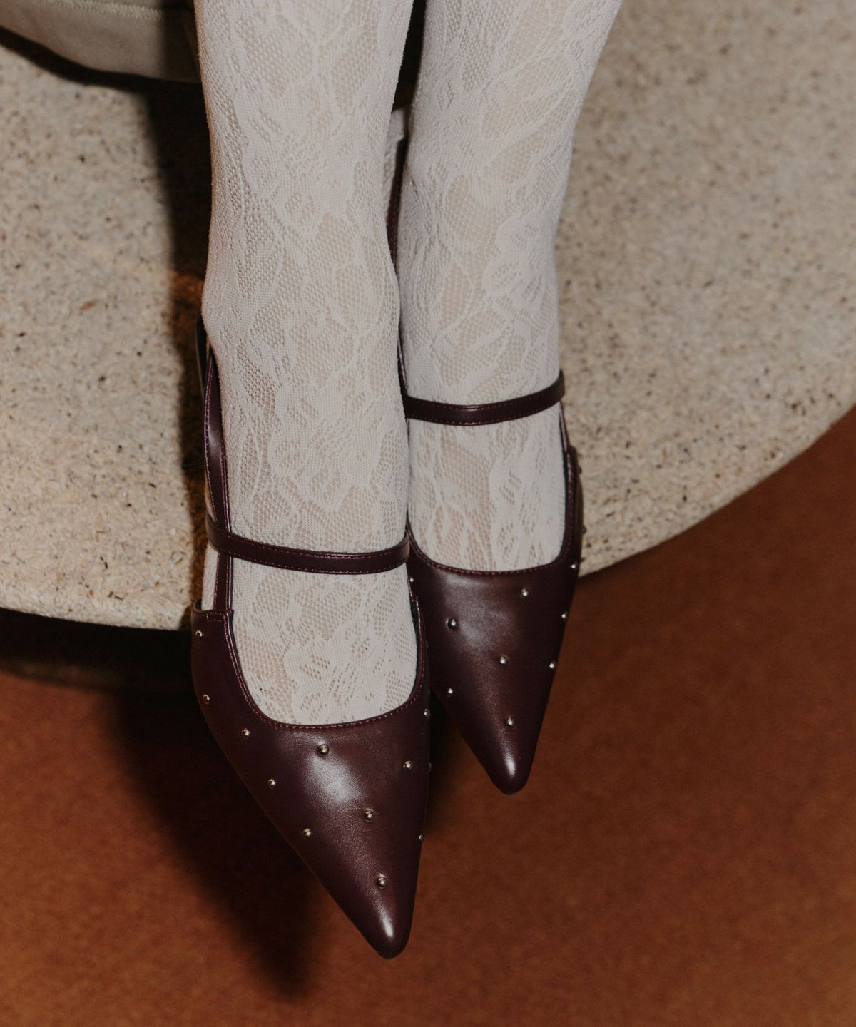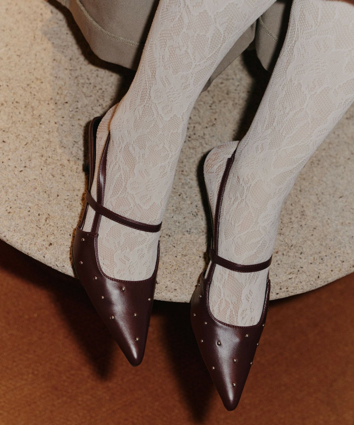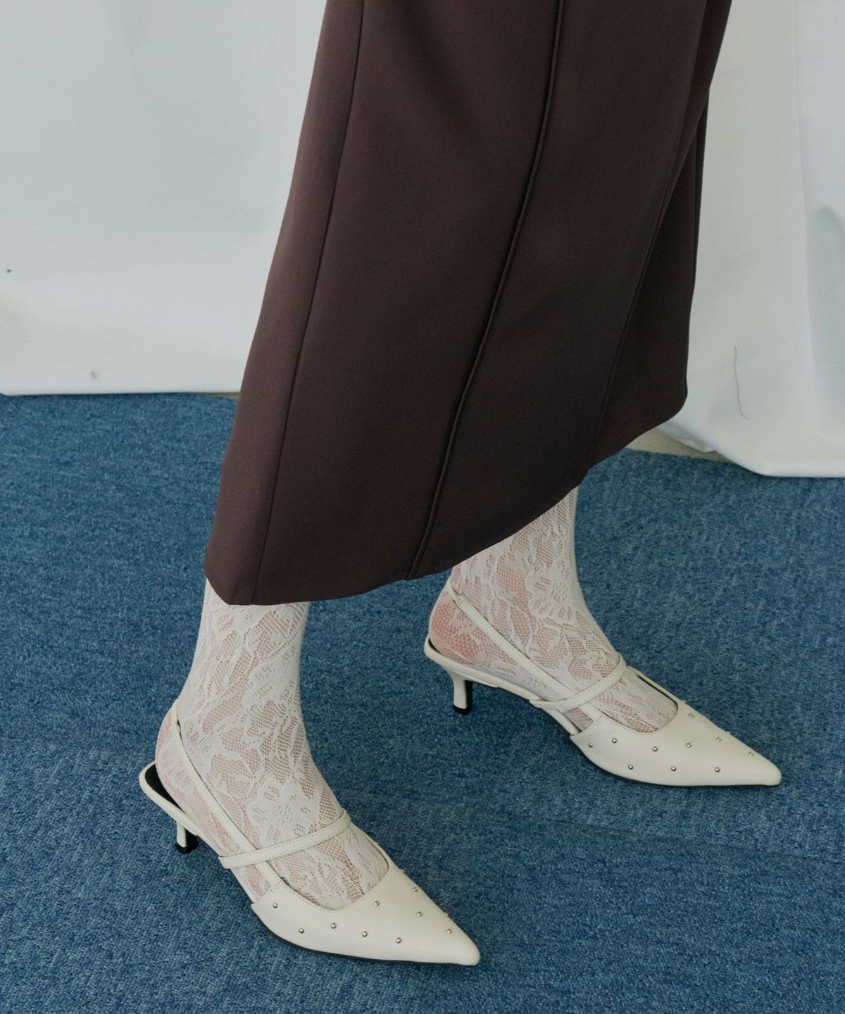 slingback always shoes(品番:80020) より控えめでスタッズが映える生地を採用