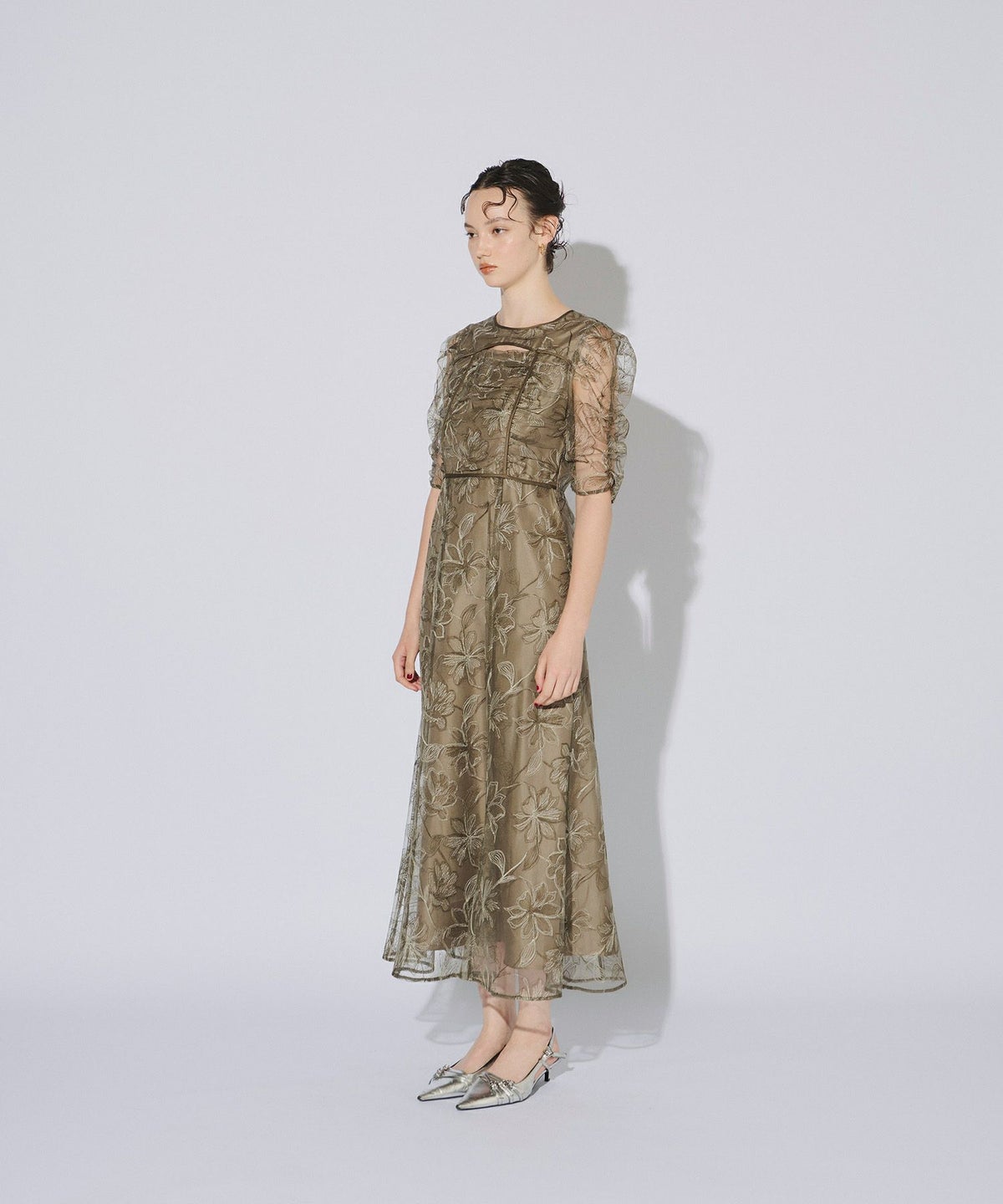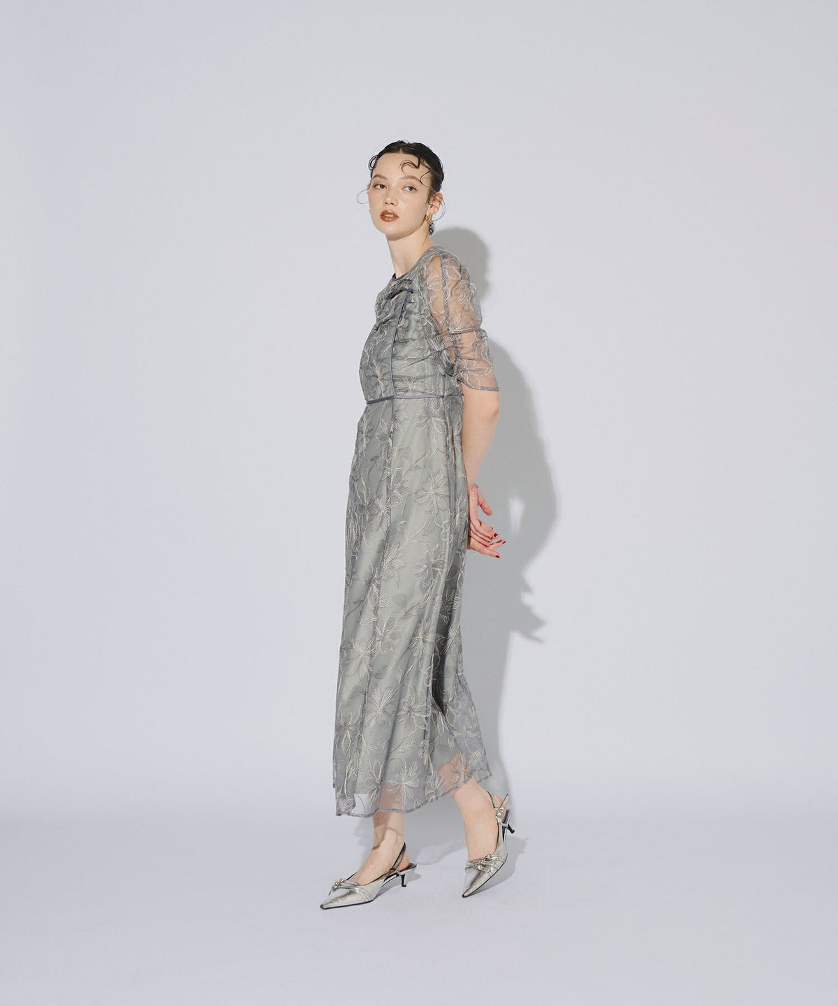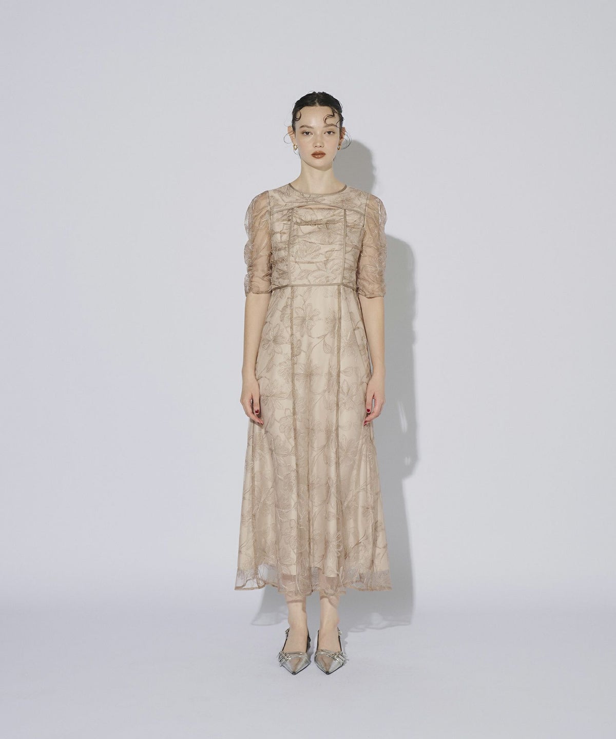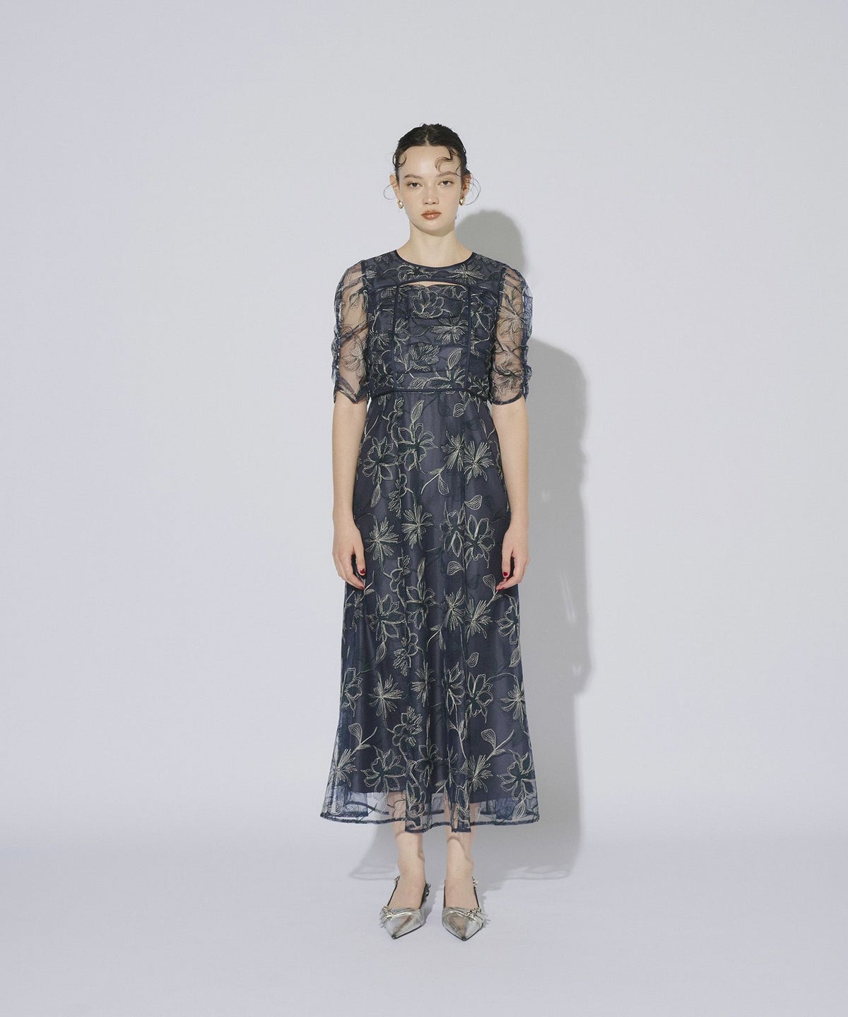 刺繍素材を使ったAラインドレスは、どのオケージョンシーンにおいても間違いのない1枚です。