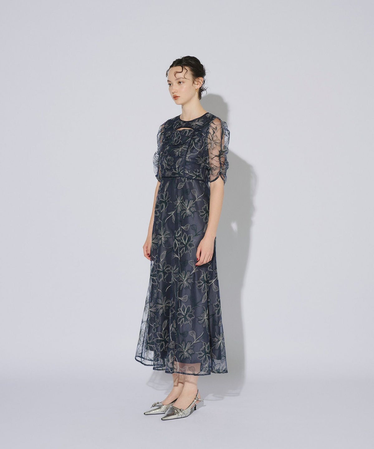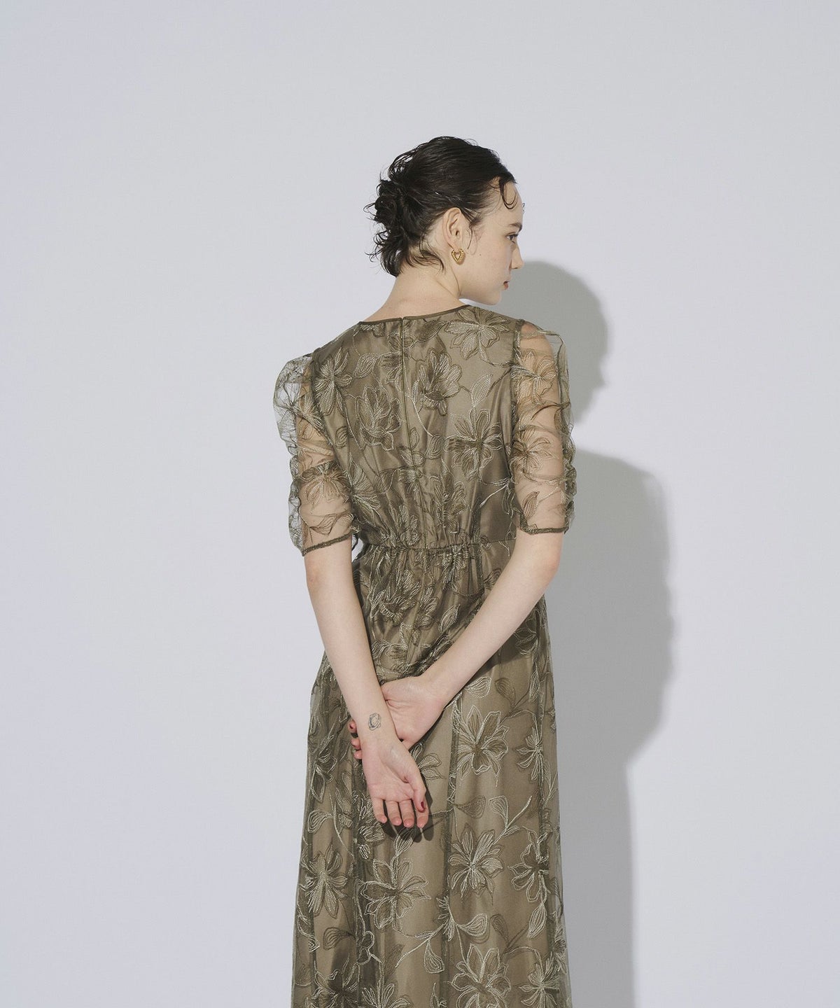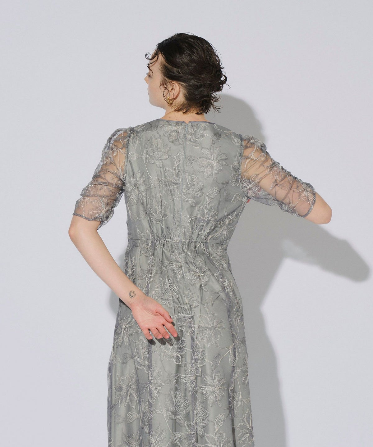 刺繍素材を使ったAラインドレスは、どのオケージョンシーンにおいても間違いのない1枚です。