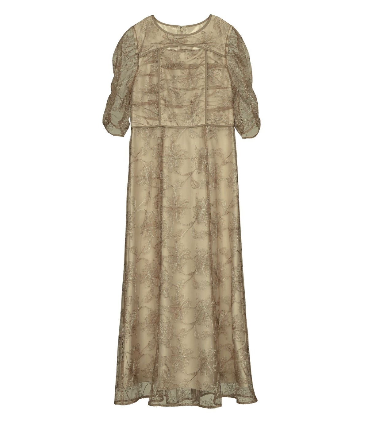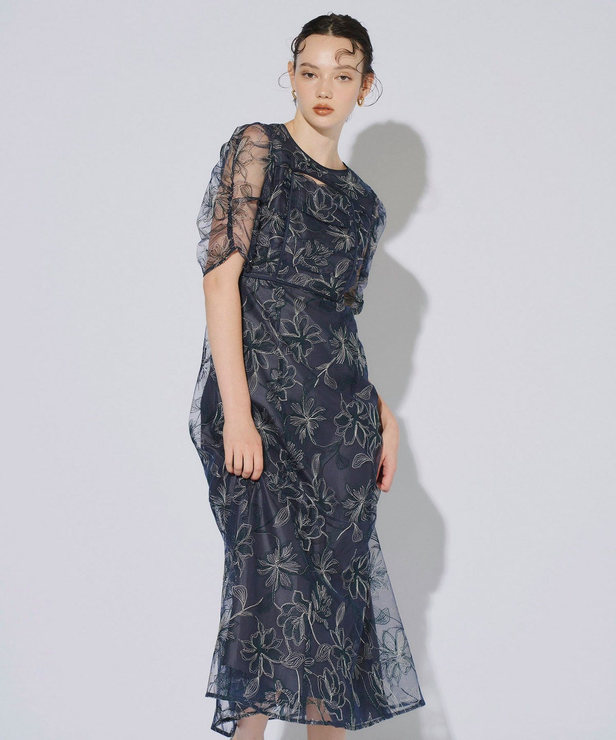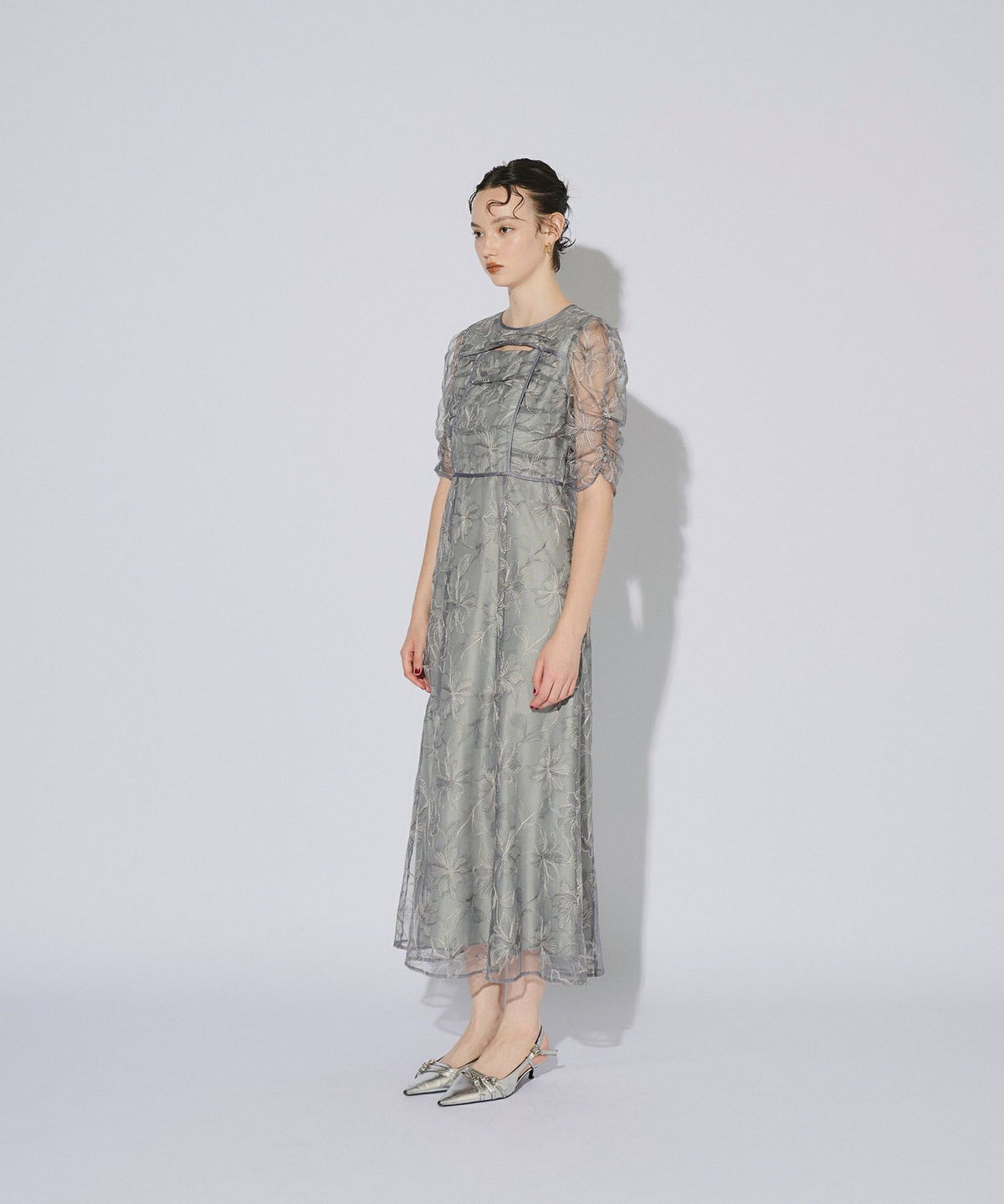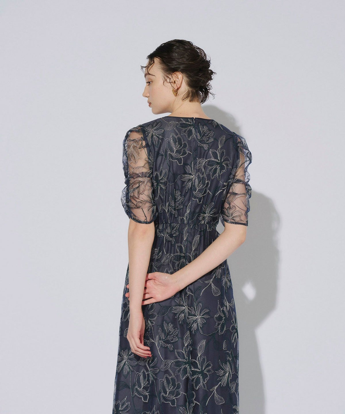 刺繍素材を使ったAラインドレスは、どのオケージョンシーンにおいても間違いのない1枚です。