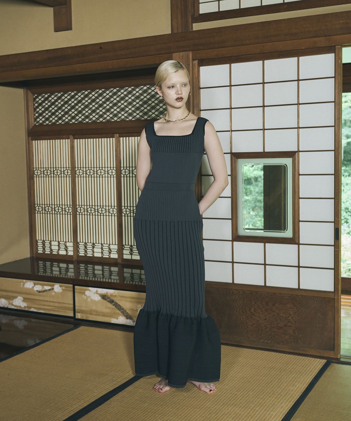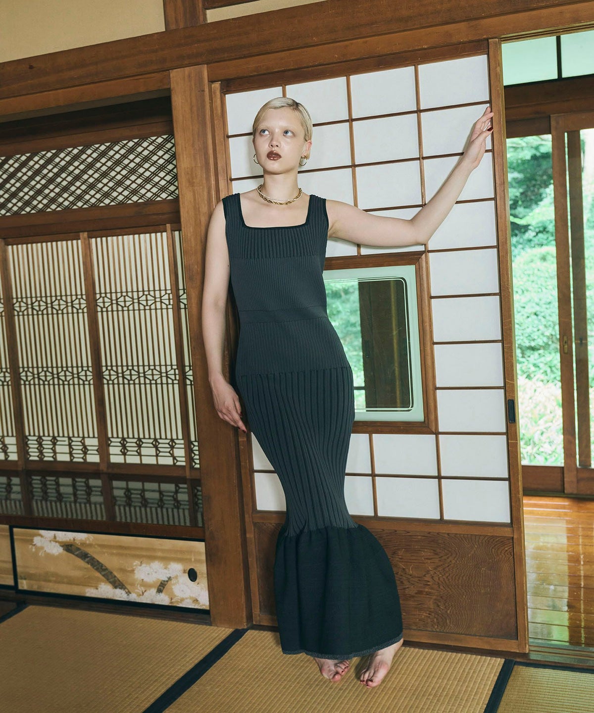 レディな気分をあげてくれるマーメイドシルエットのニットドレス。