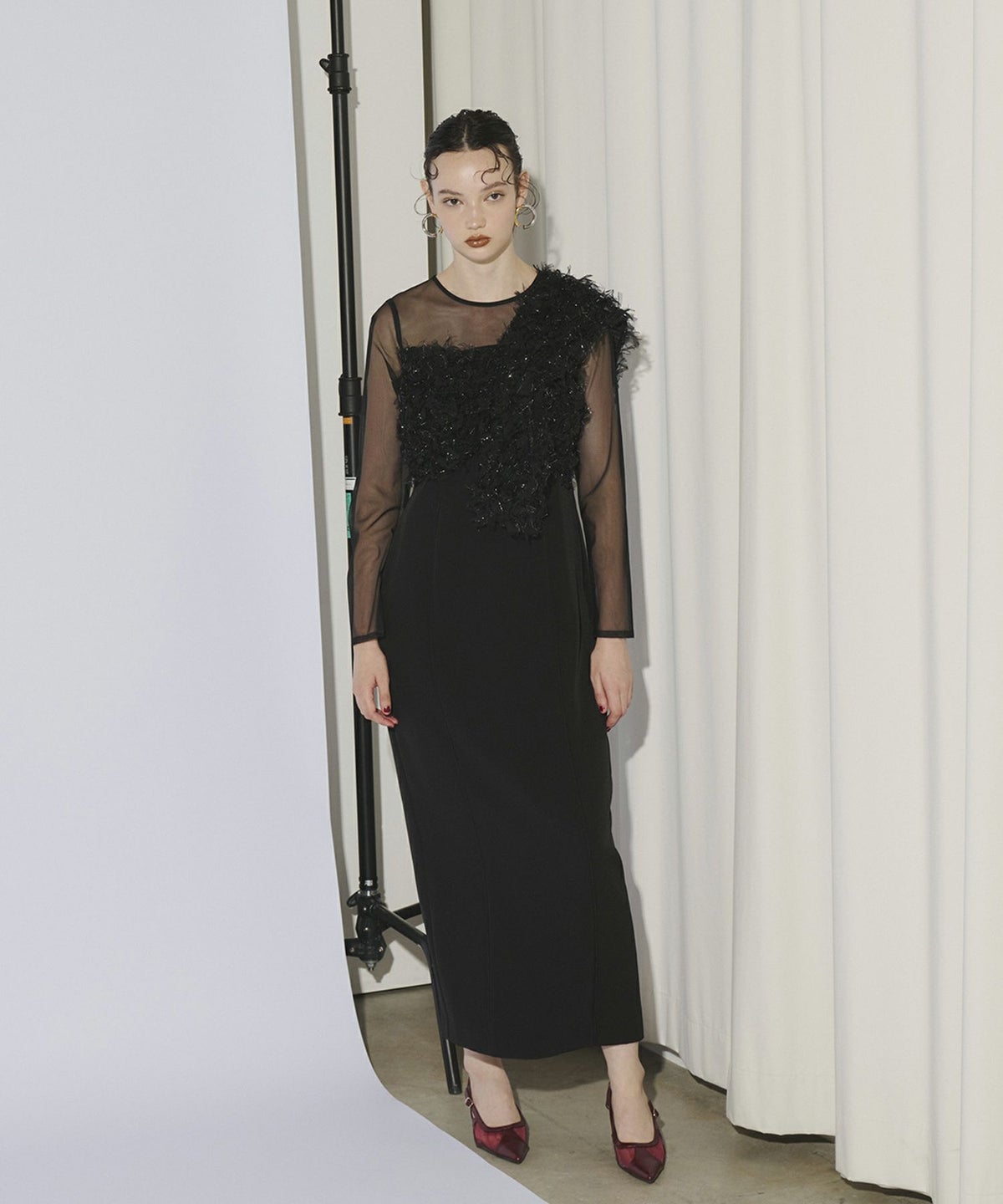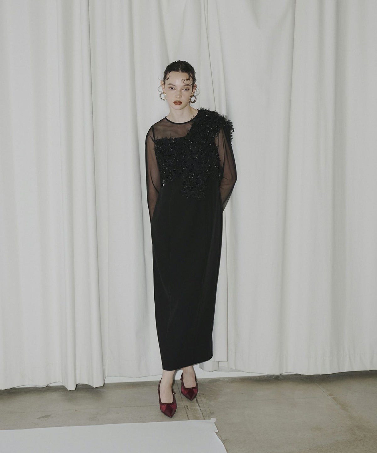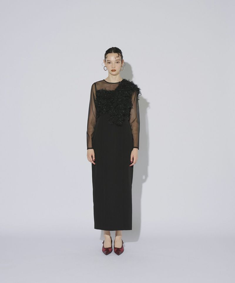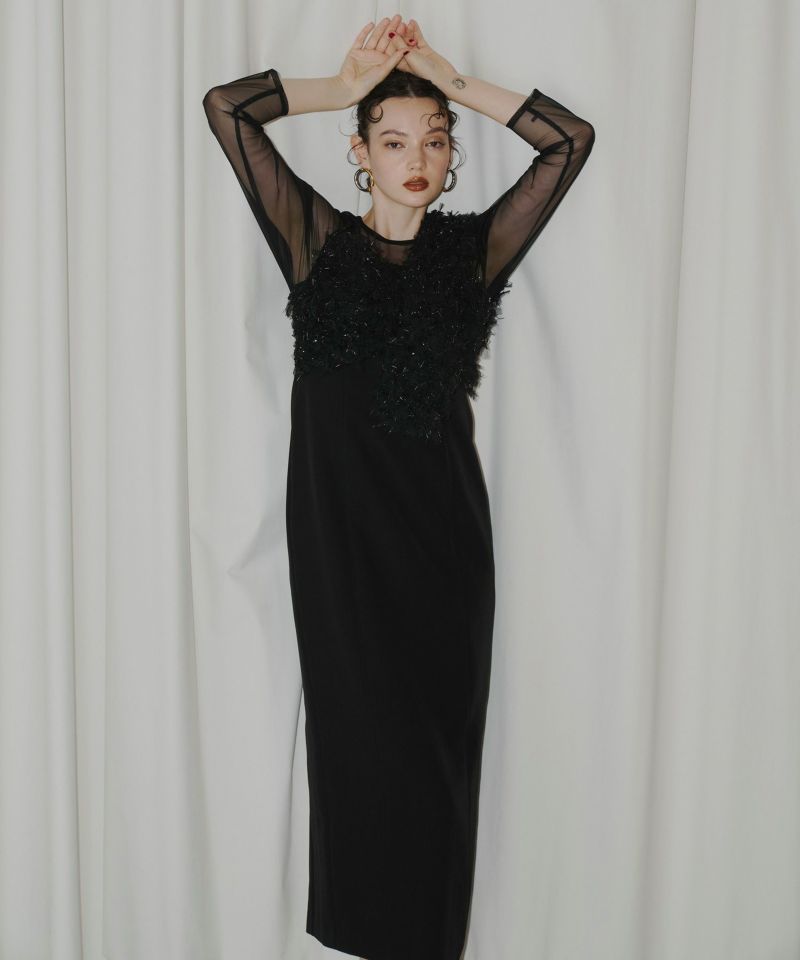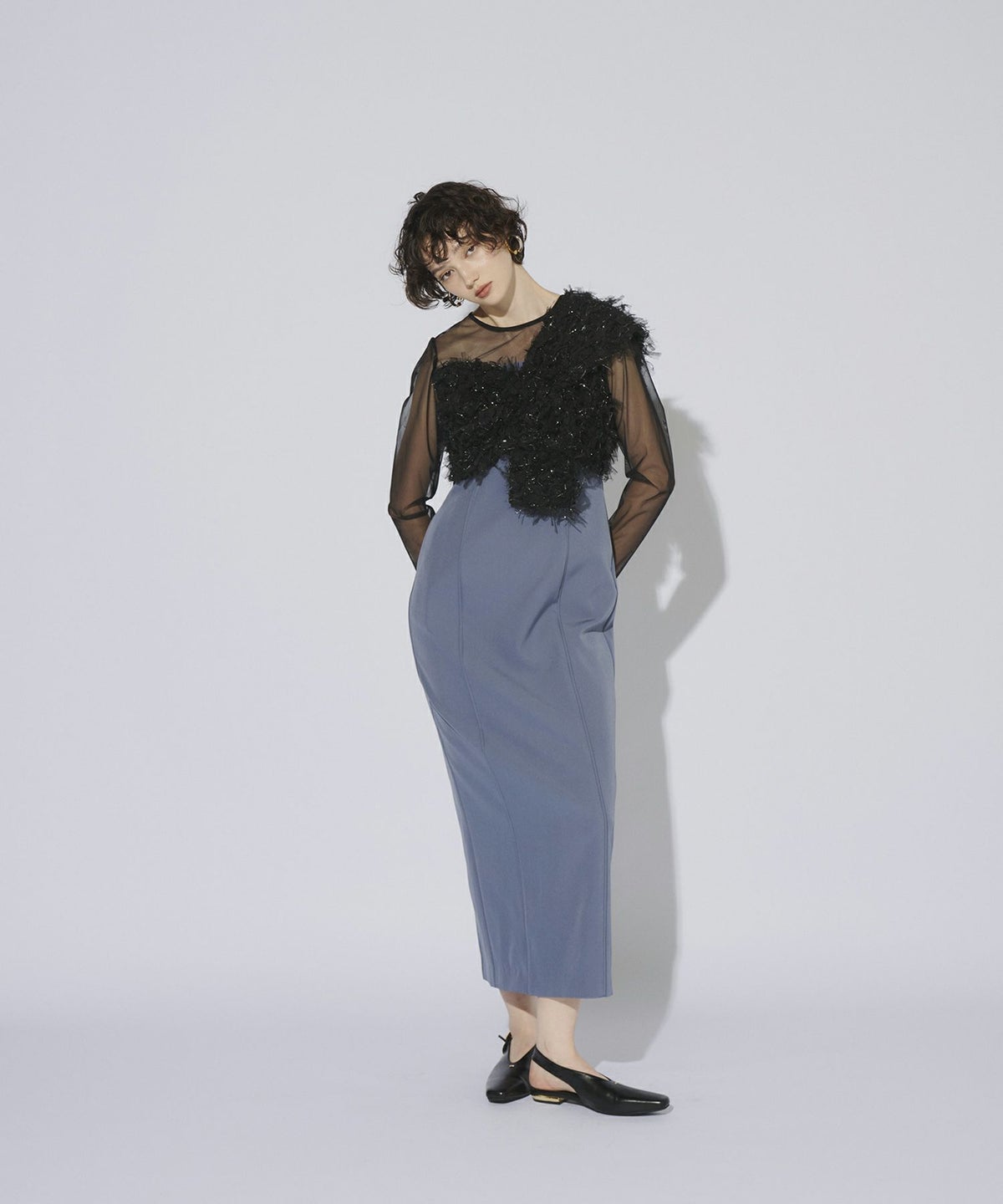 ラメ糸をMIXした生地でブラックも重くならないデザイン。