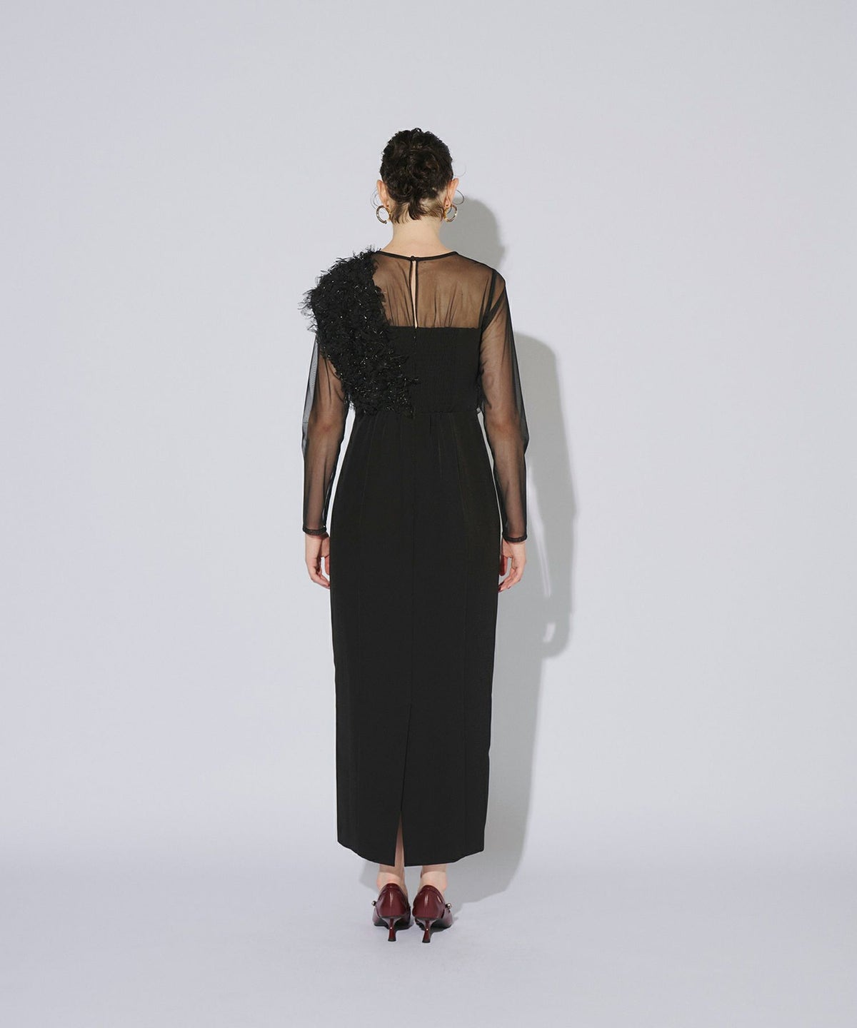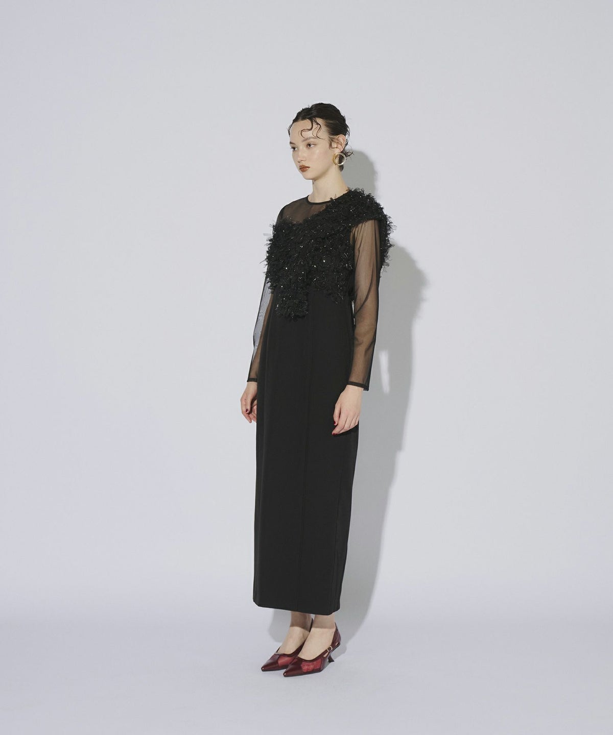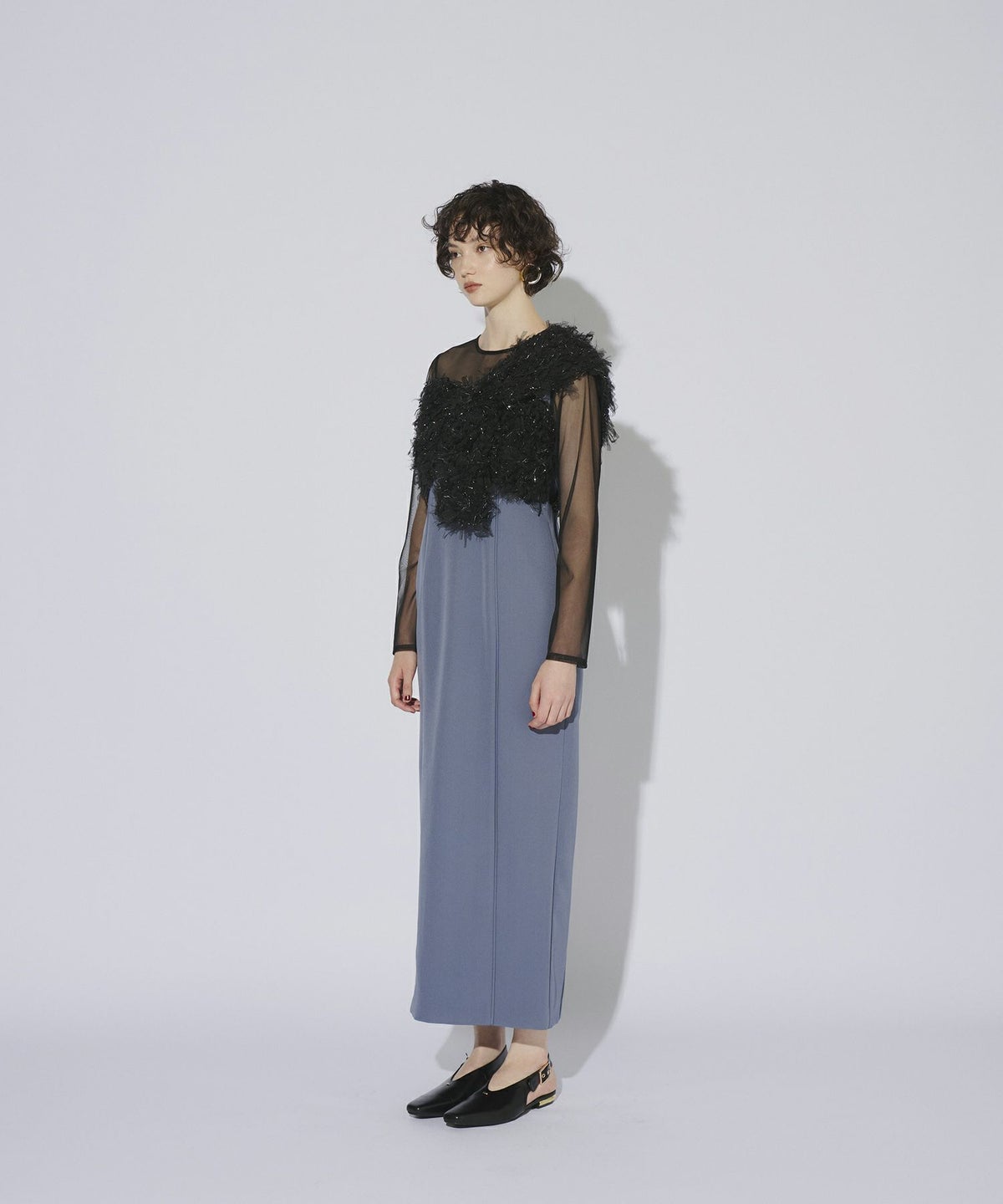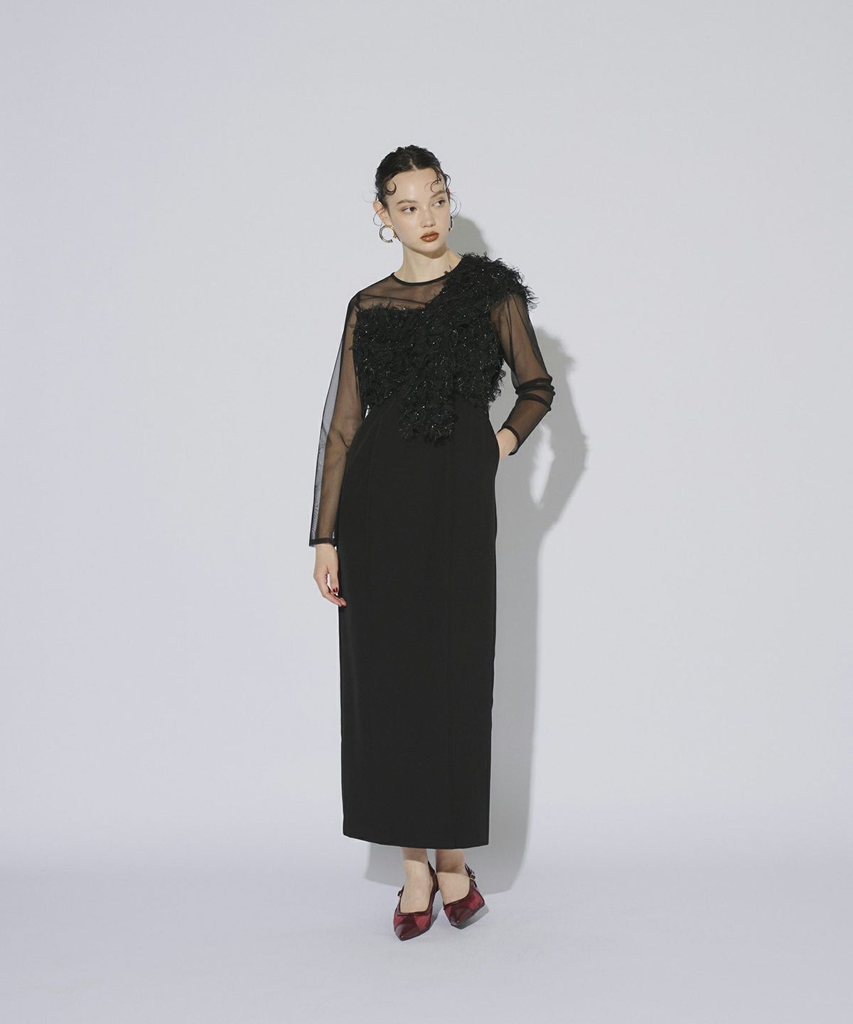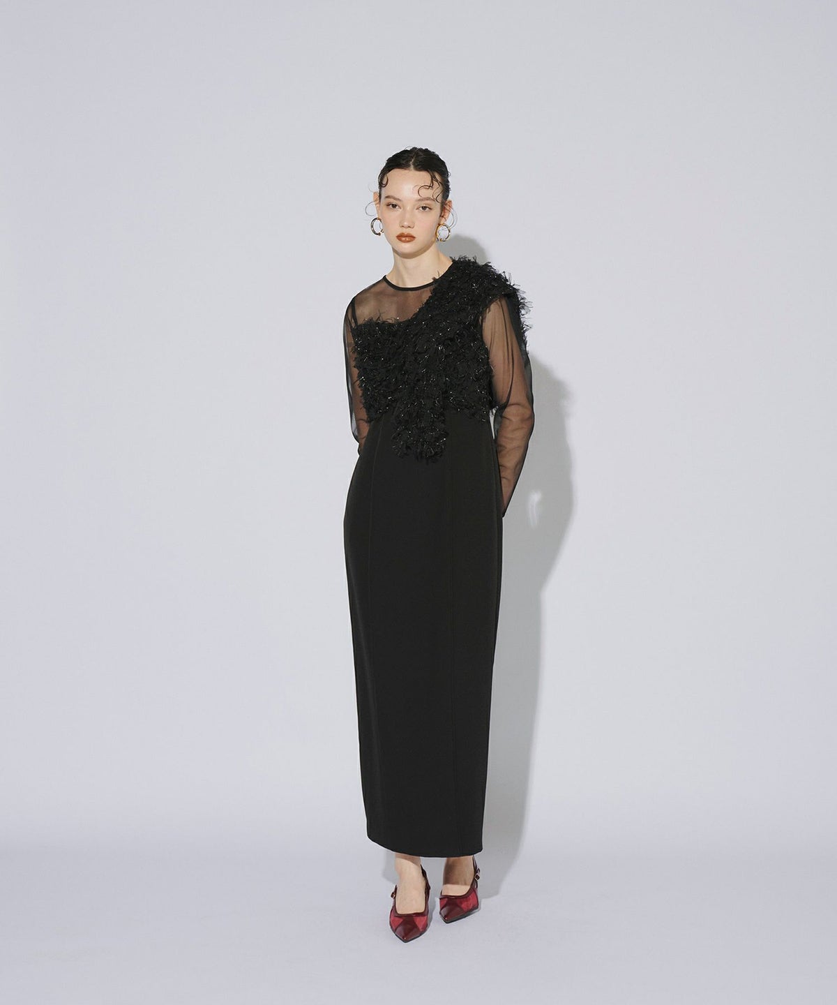 ラメ糸をMIXした生地でブラックも重くならないデザイン。