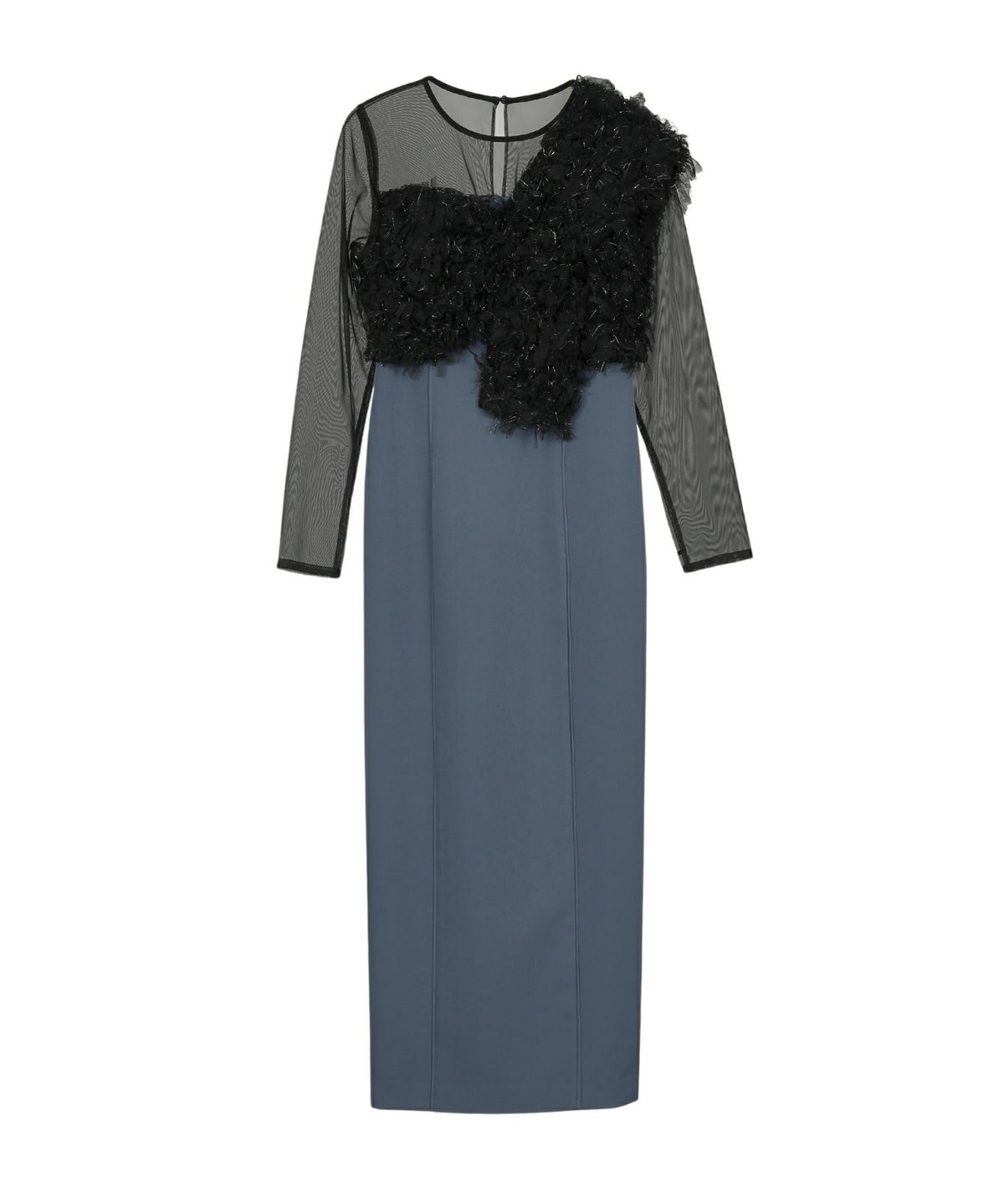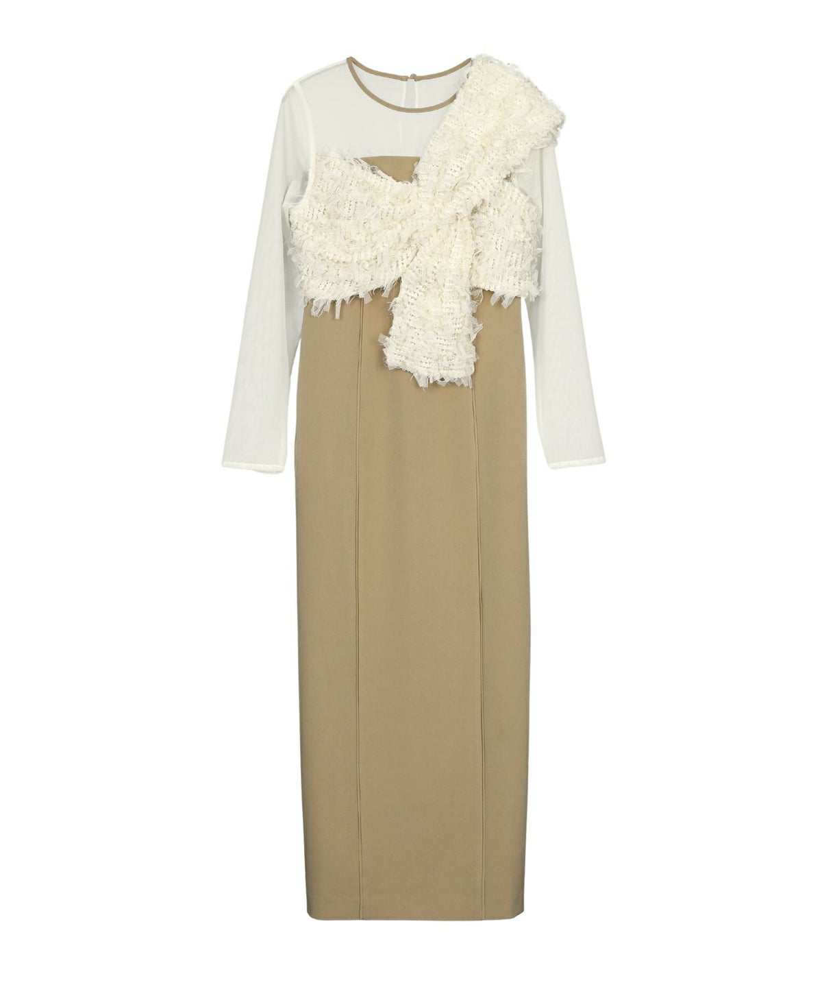 存在感のあるラメ生地を使用したノットデザインが目を惹く1着。