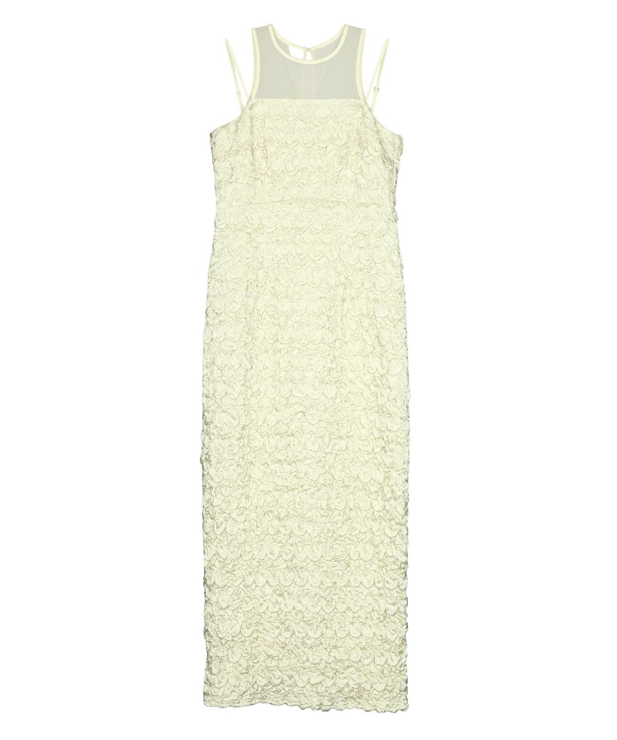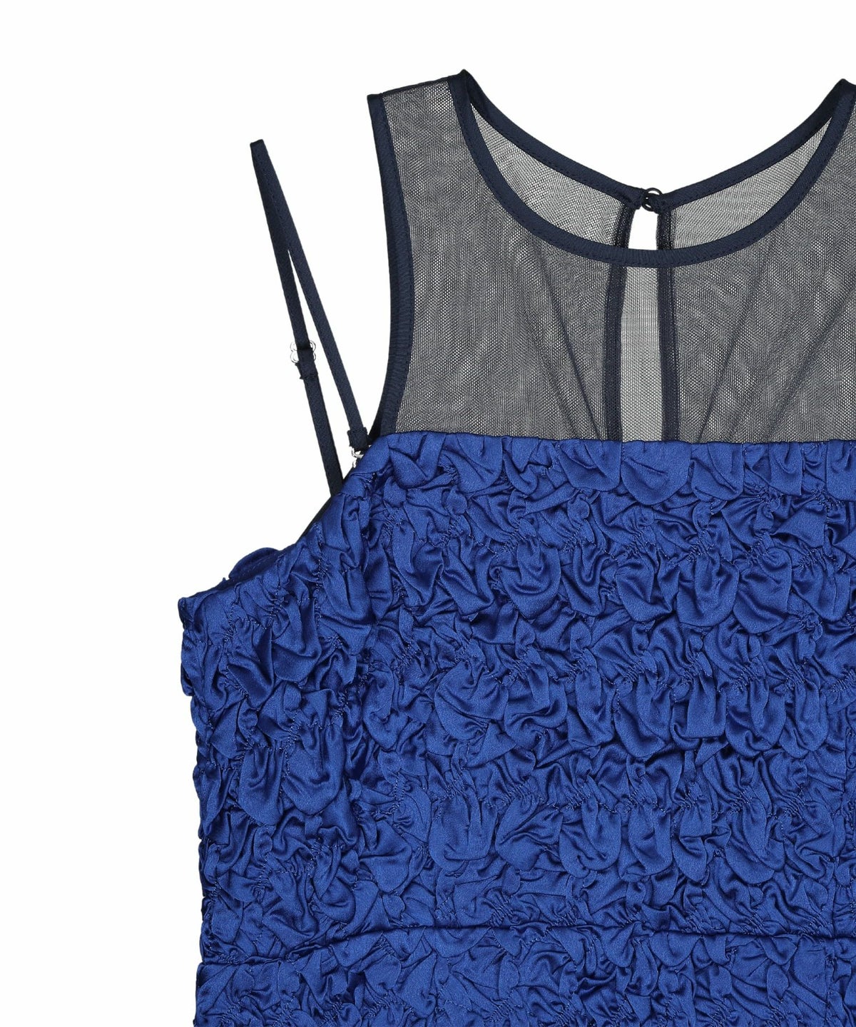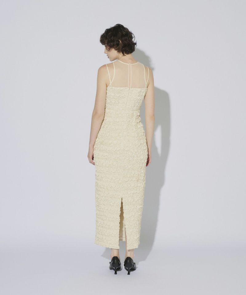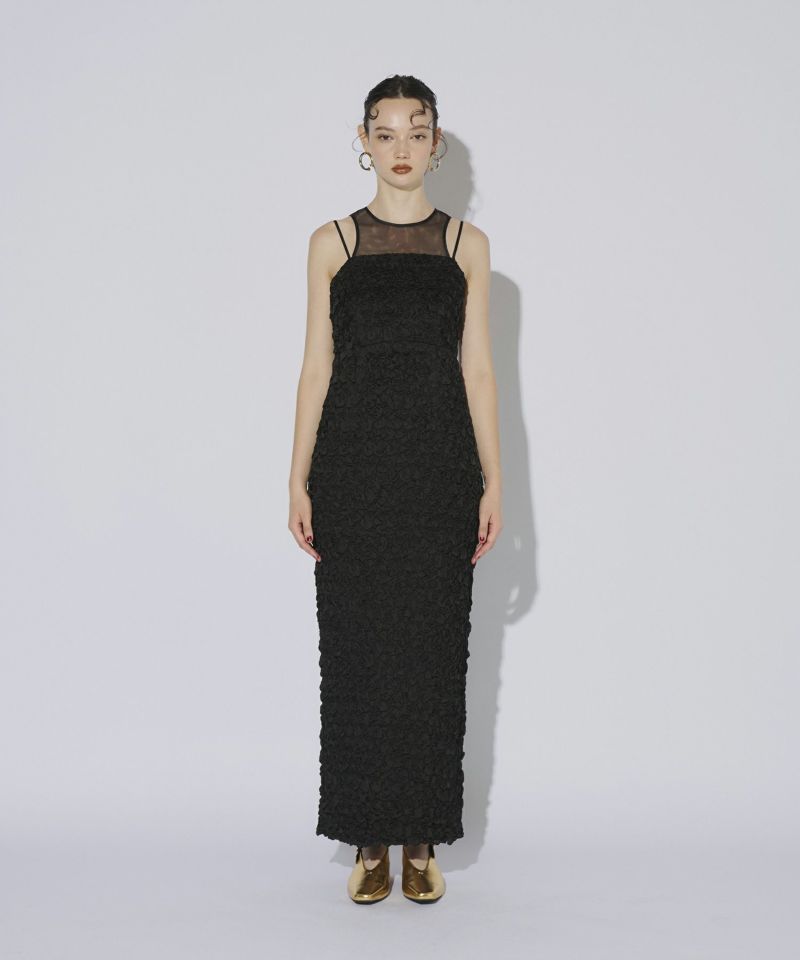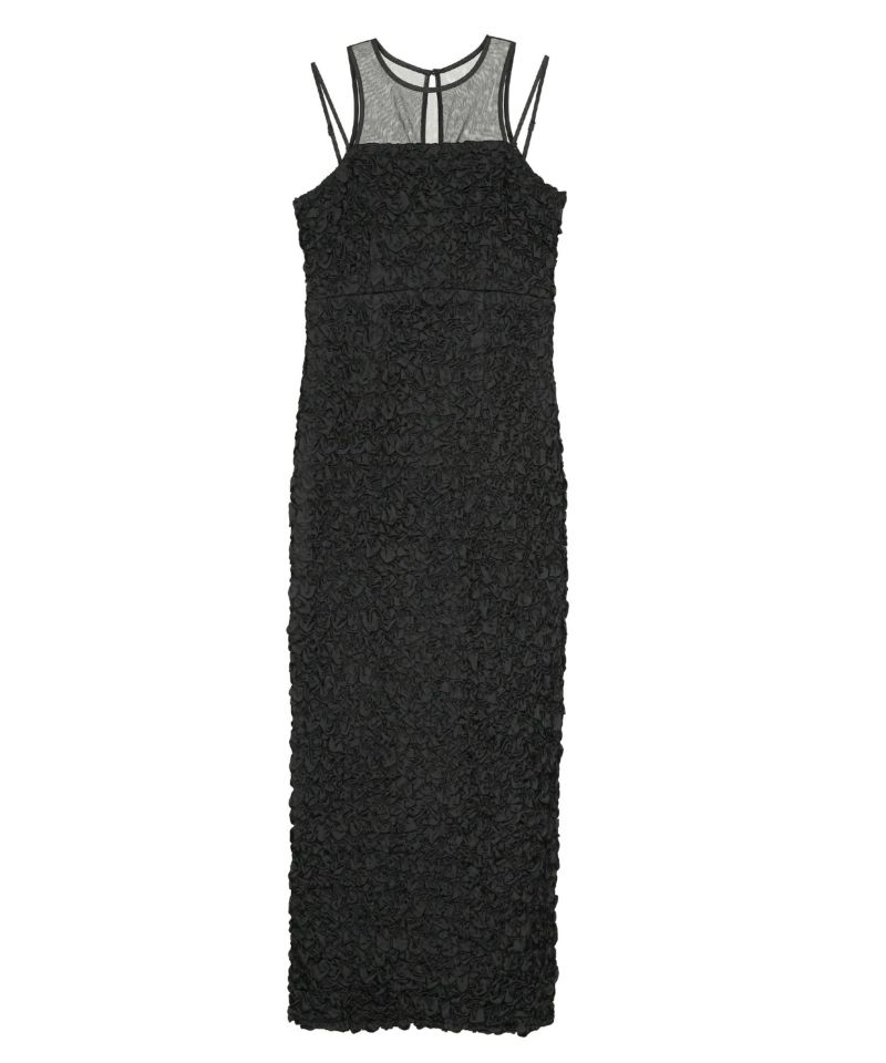 ヨーク部分には繊細なチュール素材を使用し、透け感がエッジを効かせています。