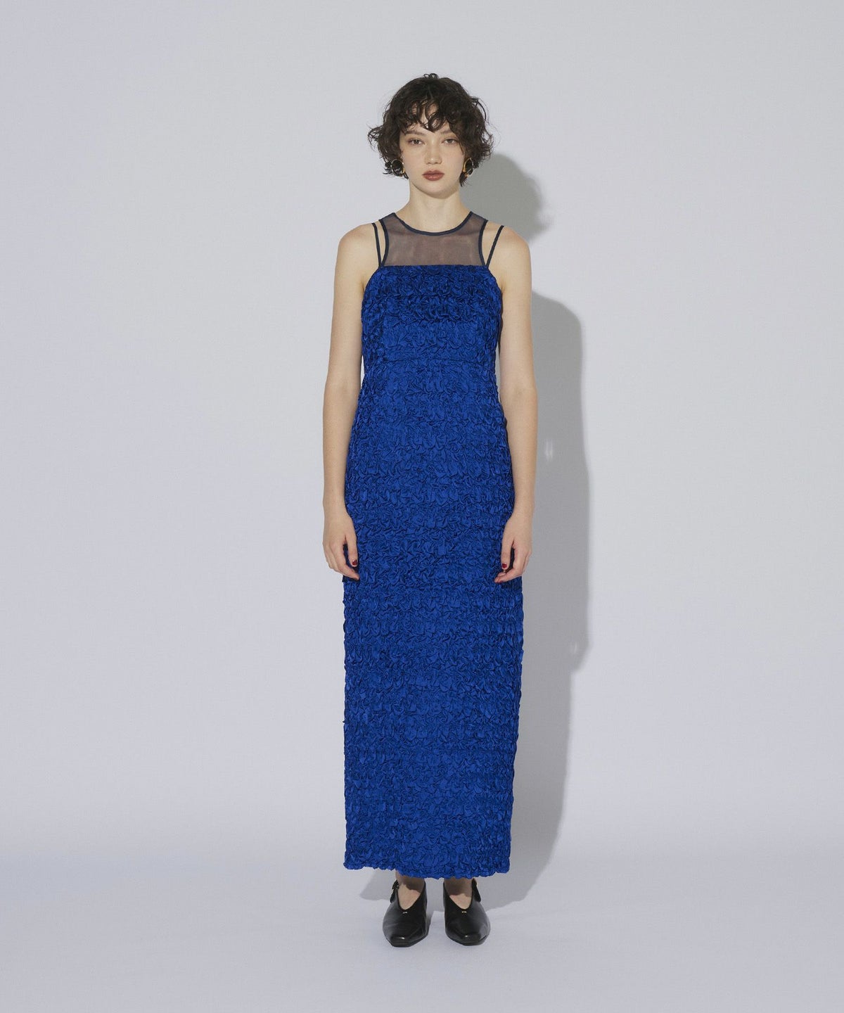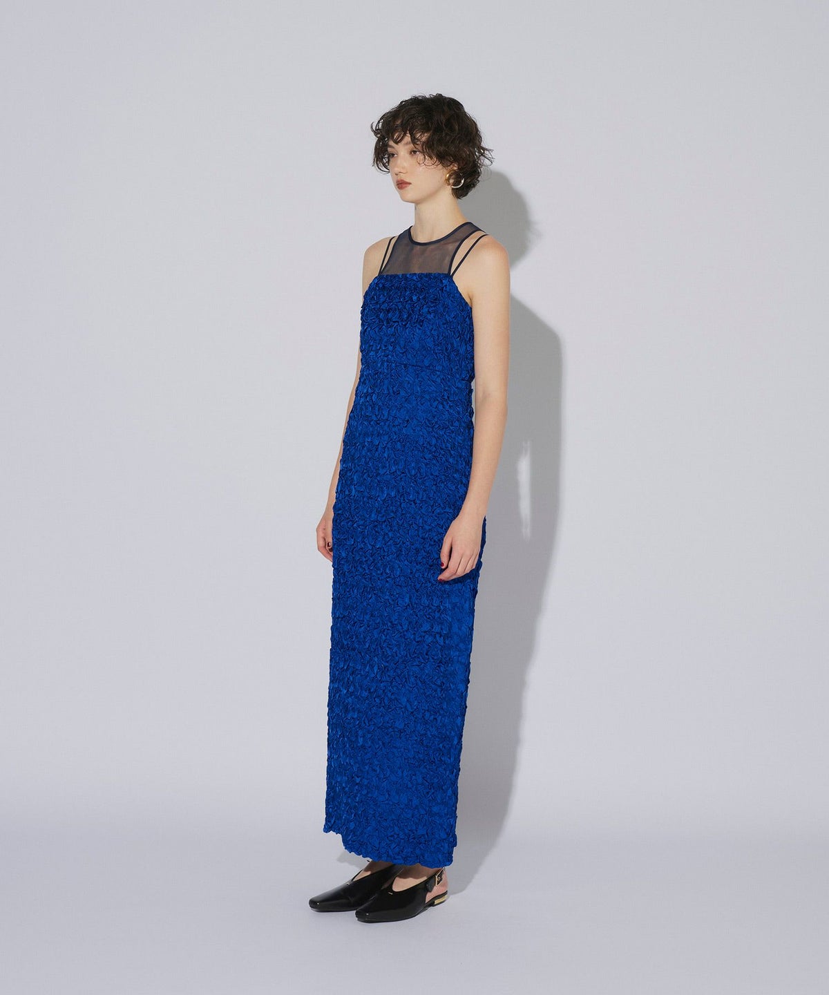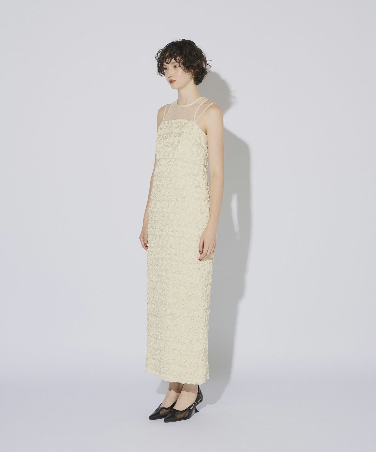 ヨーク部分には繊細なチュール素材を使用し、透け感がエッジを効かせています。