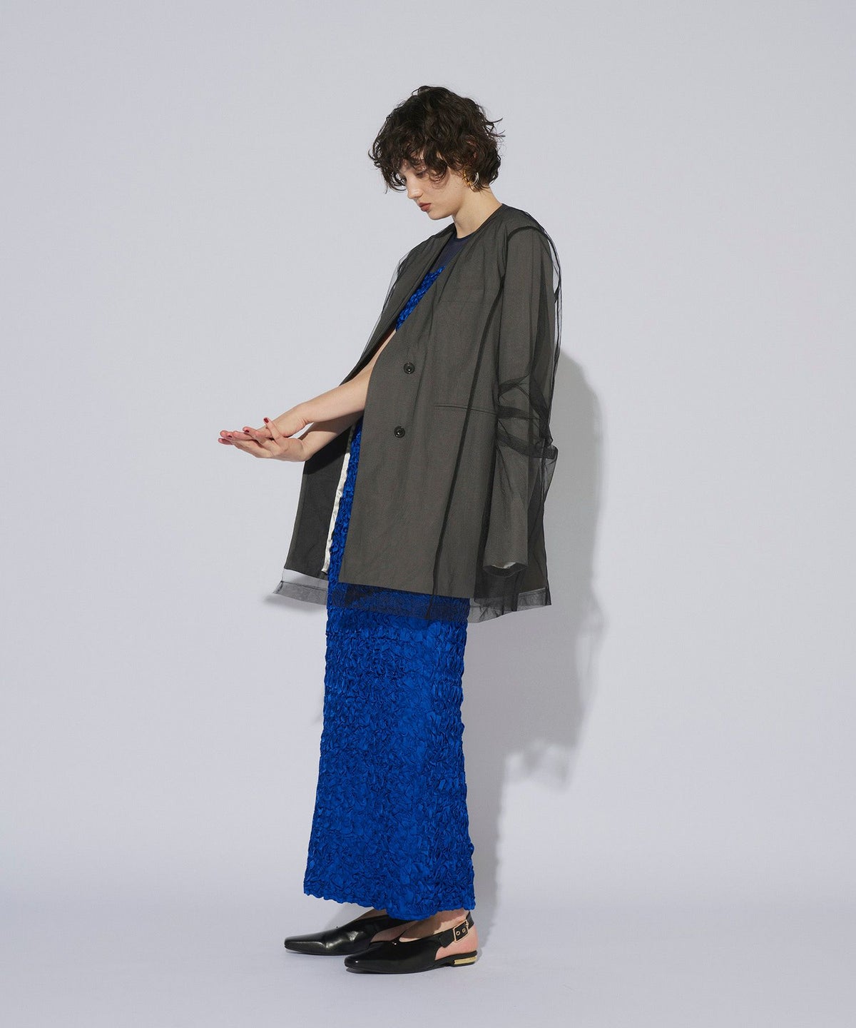 より個性的に行きたい方はboxy layered tulle jacket(品番:50150) の合わせもお洒落☺︎