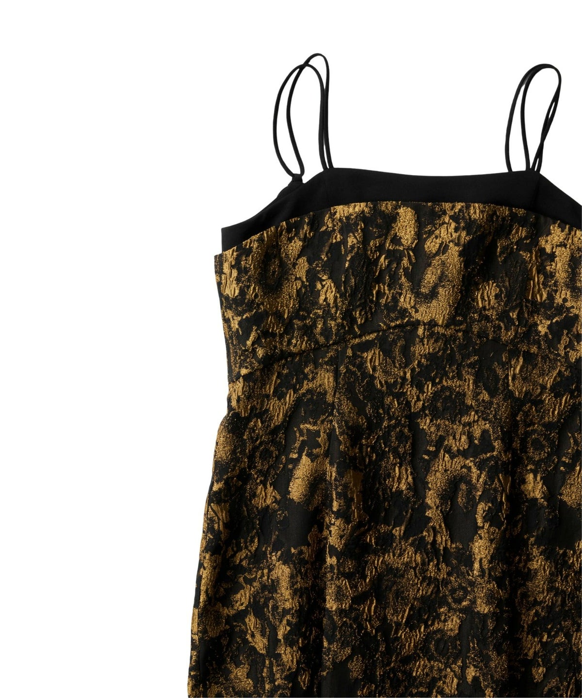 レイヤードしているように見える胸元のデザインが目を引き、肩紐は後ろで結ぶ仕様になっているため、