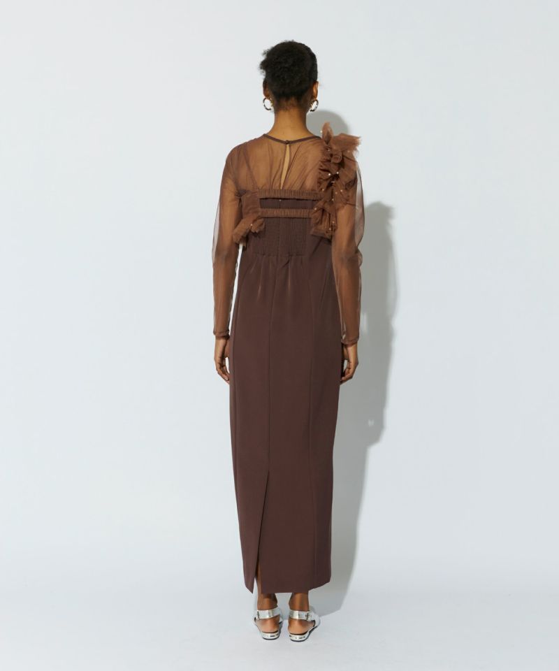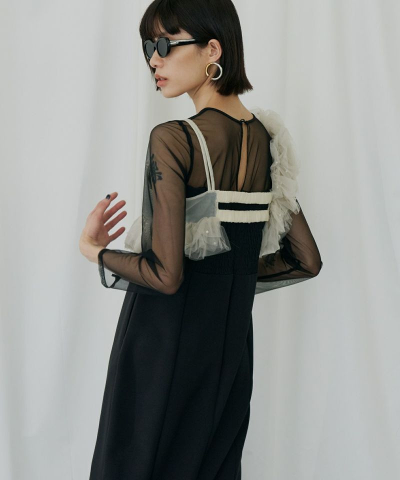 透け感:あり(ビスチェ)、ワンピース:デコルテ~袖