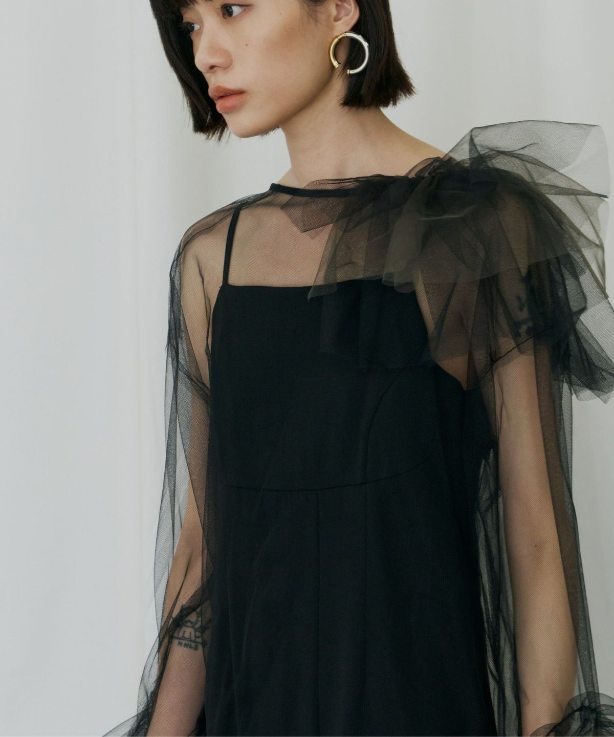 カラーのブラック、ベージュは2色のチュールを重ねたニュアンス感のあるカラーリングが魅力。