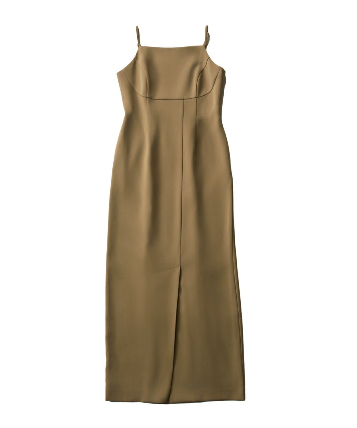 シンプルな設計ながら、バストの切替や深めのスリット、ウエストのディテールなど、細部にはさりげない遊び心をプラス。