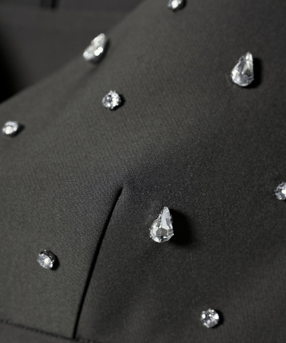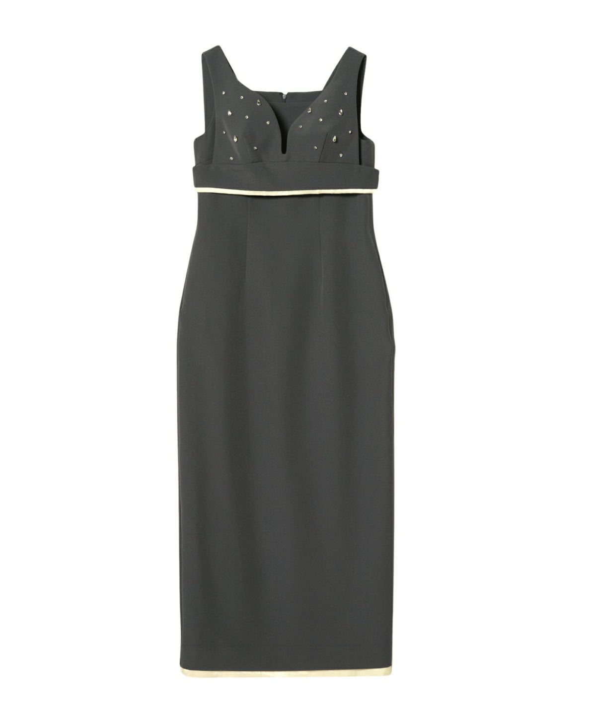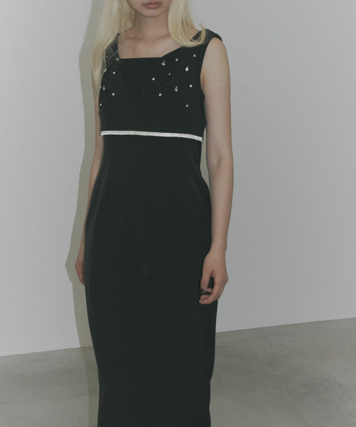 雨粒がこぼれたような煌めきが印象的な、しずく型のビジューが目を惹くビスチェとワンピースのセットドレス。