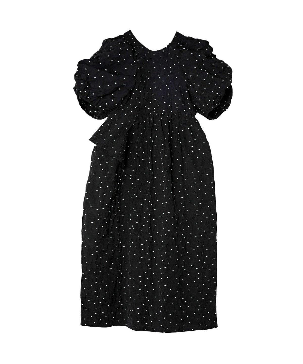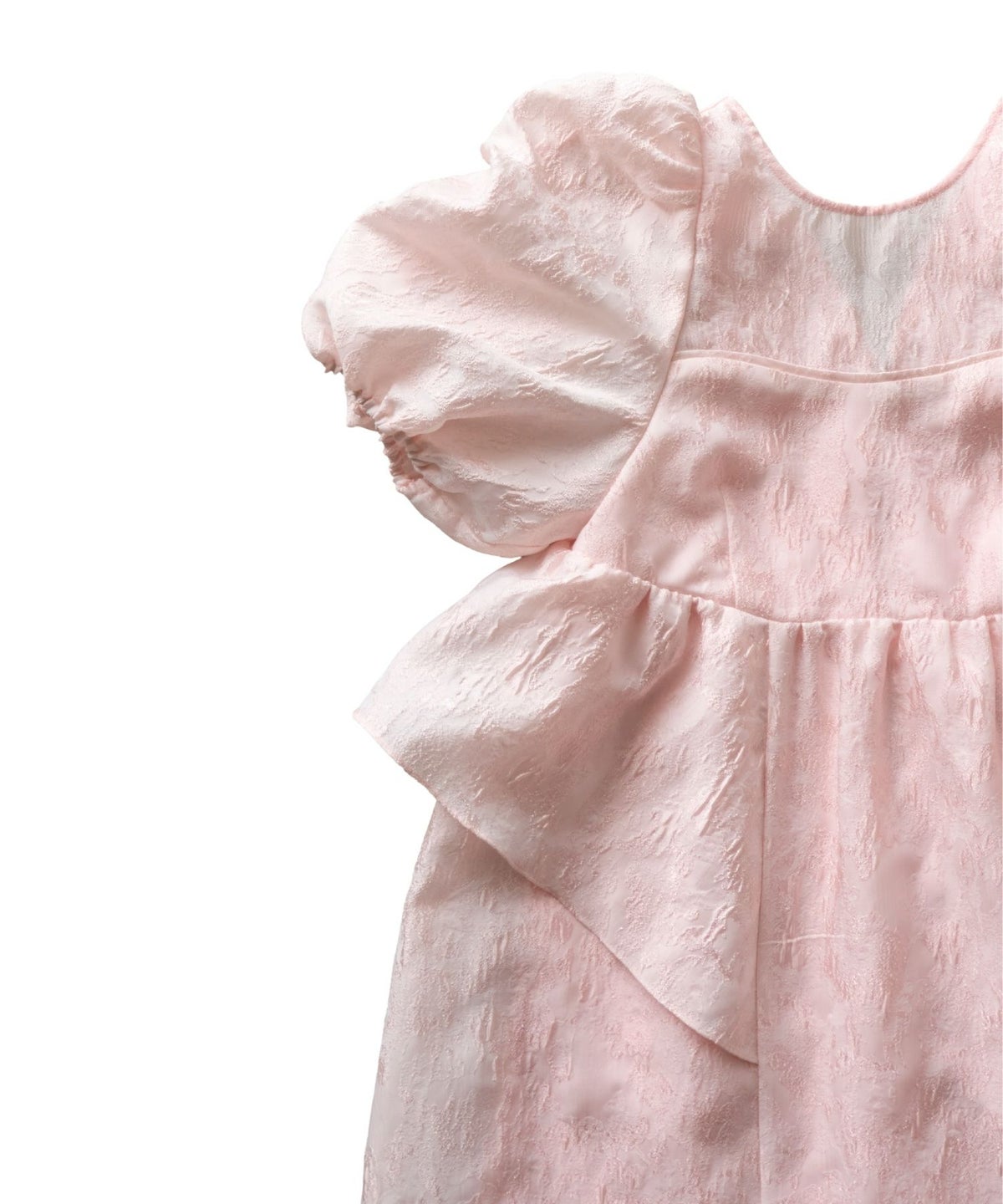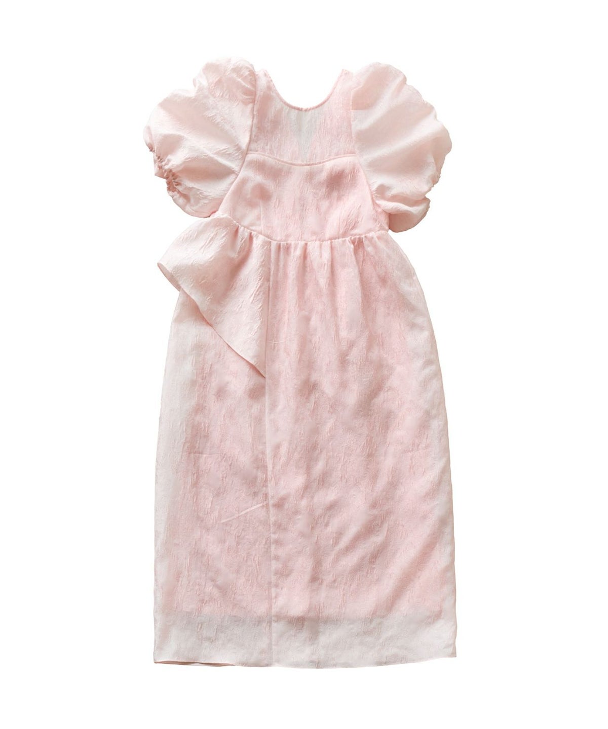 ギャザーをたっぷり寄せてつくったパフスリーブや、アシンメトリーなフリルがキャッチー。