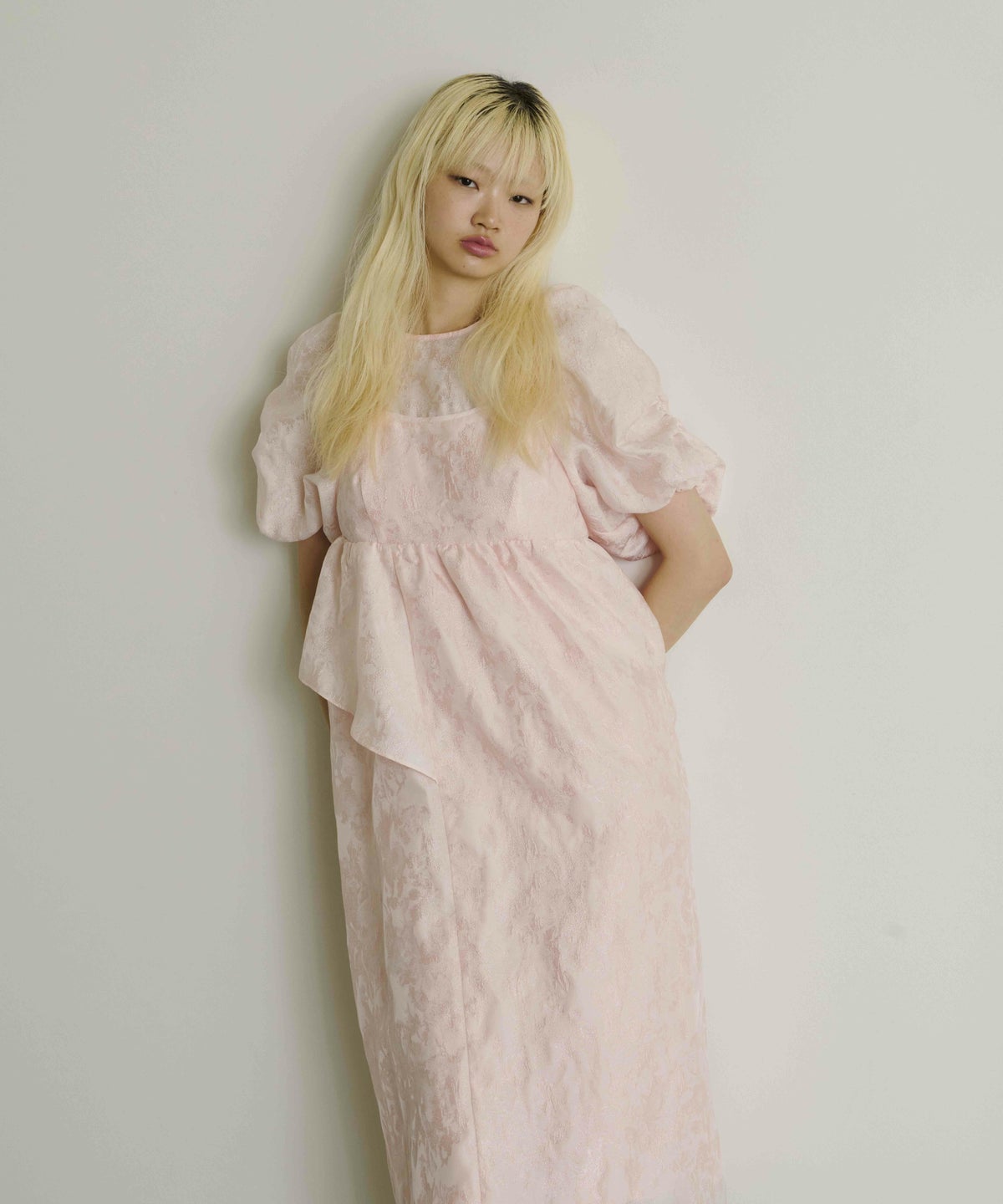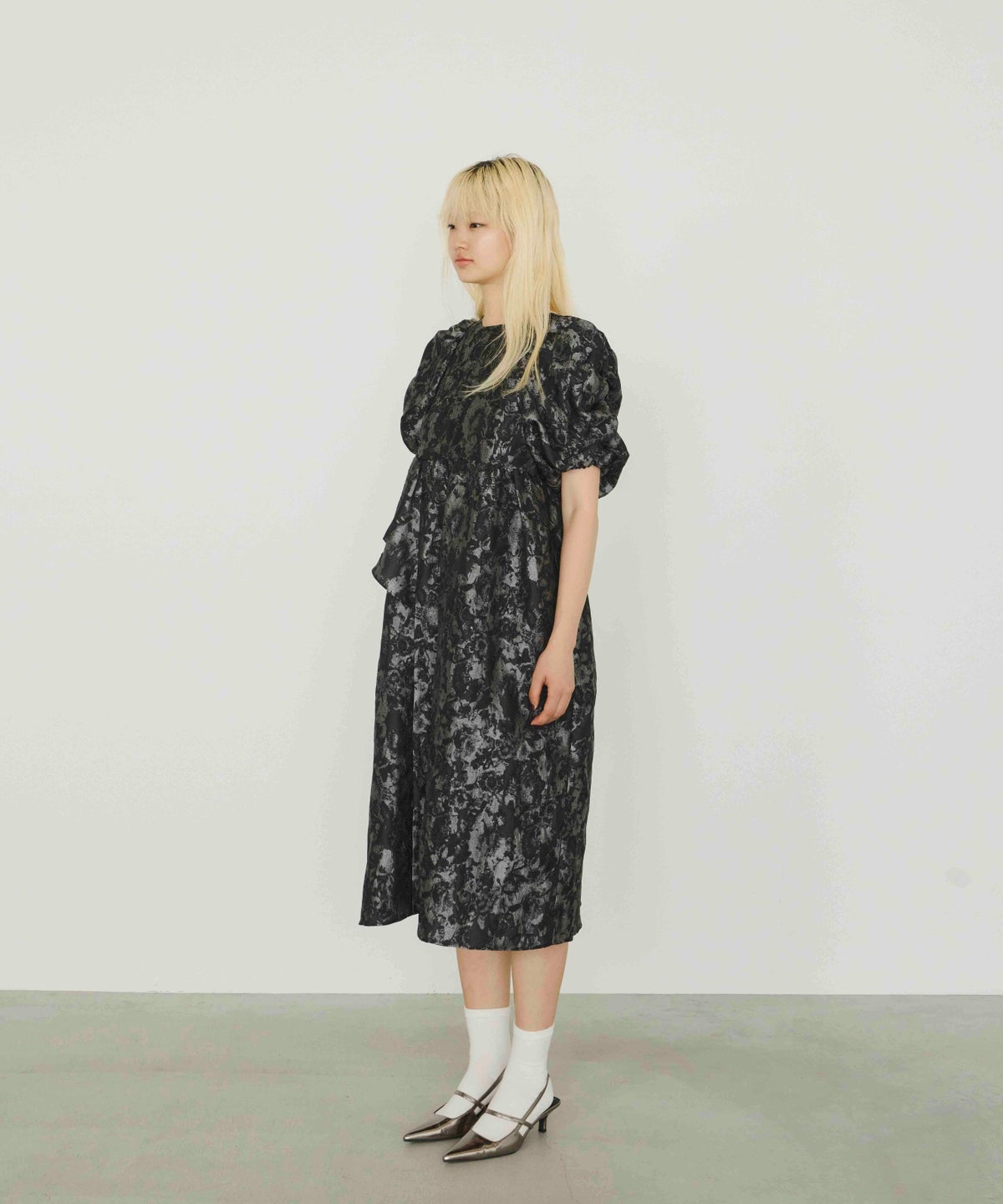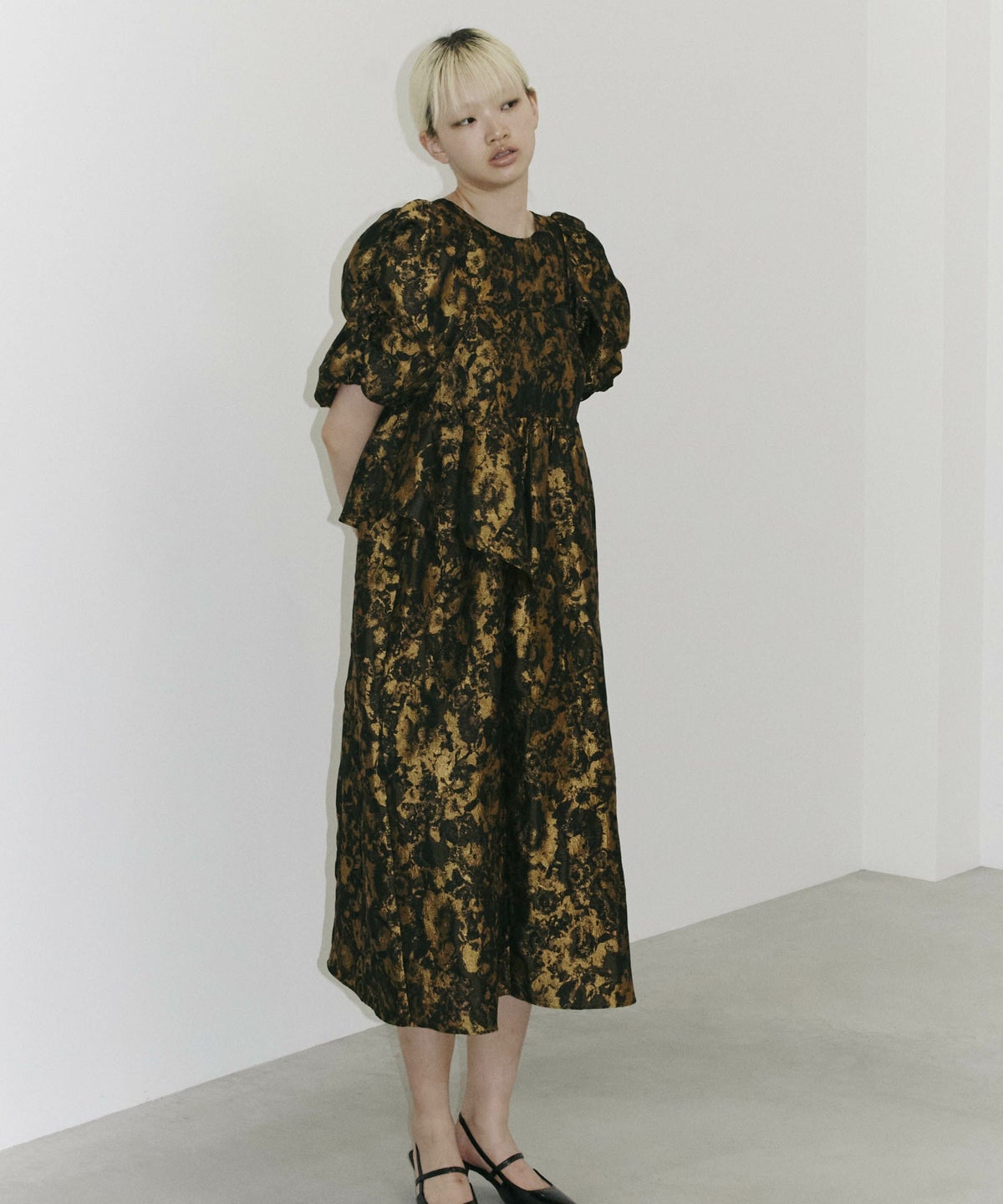 ジャカード生地を贅沢に使った特別感のある一着です。