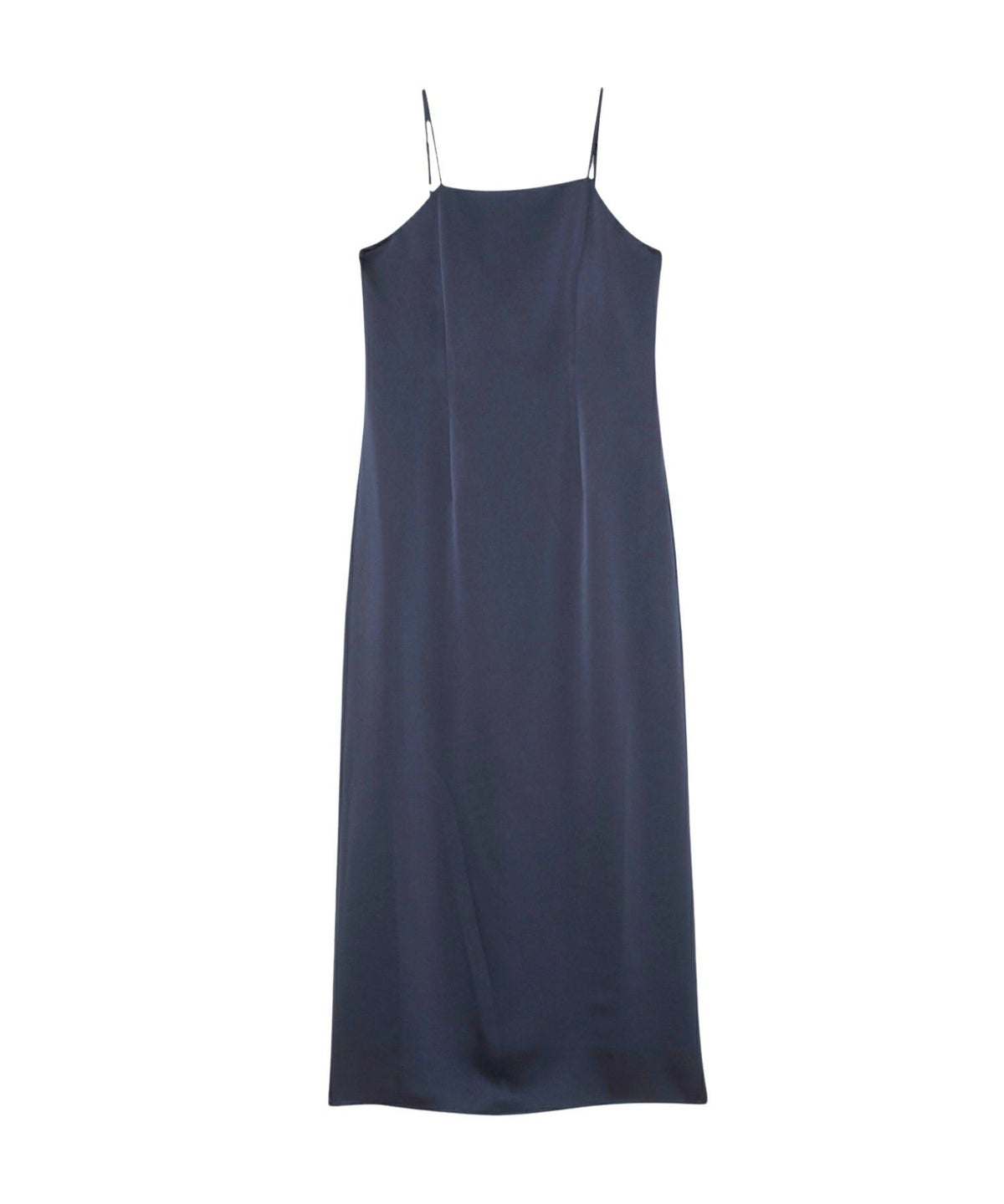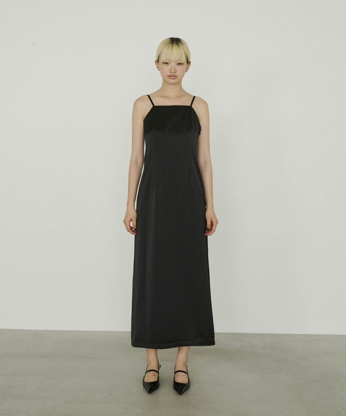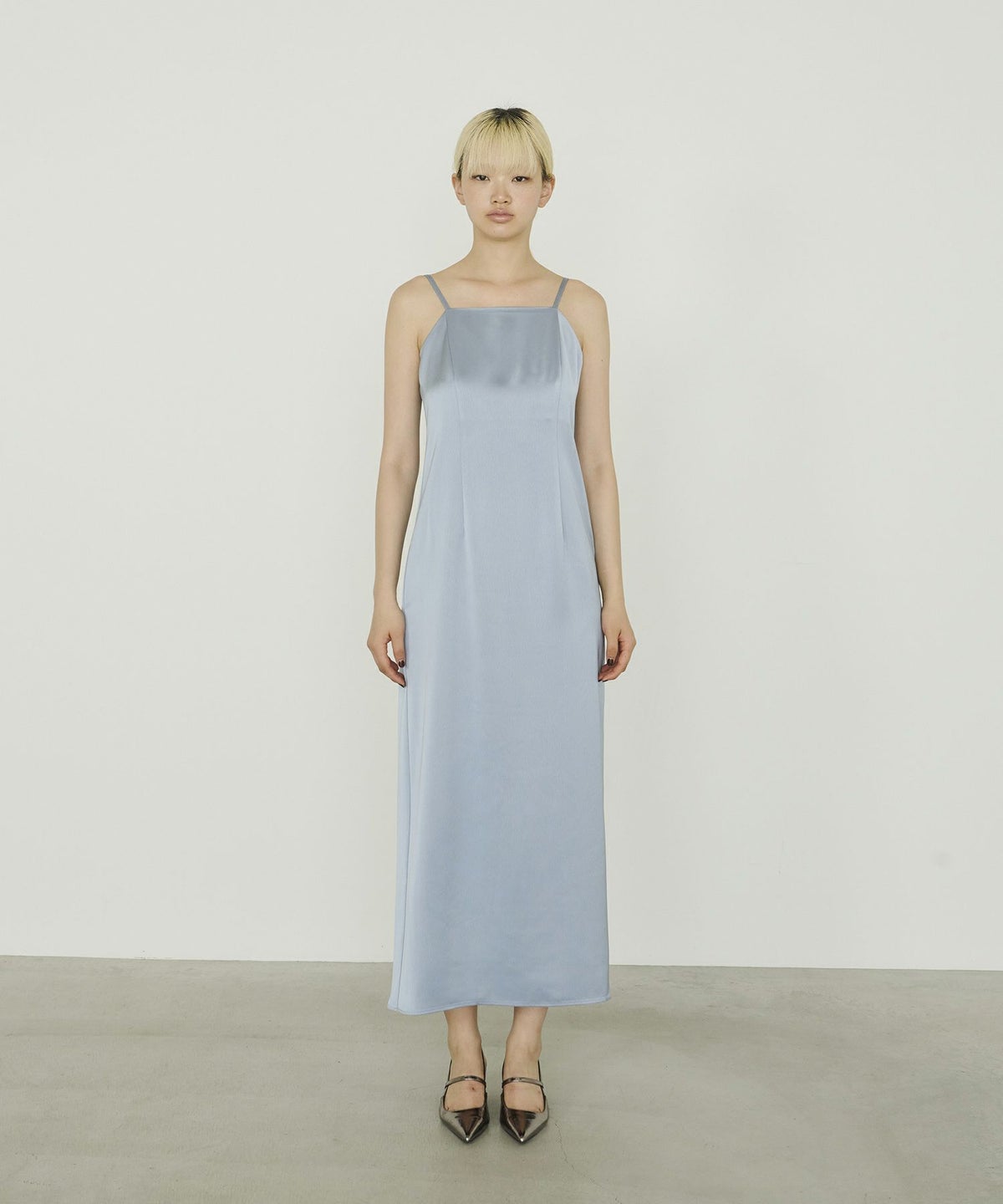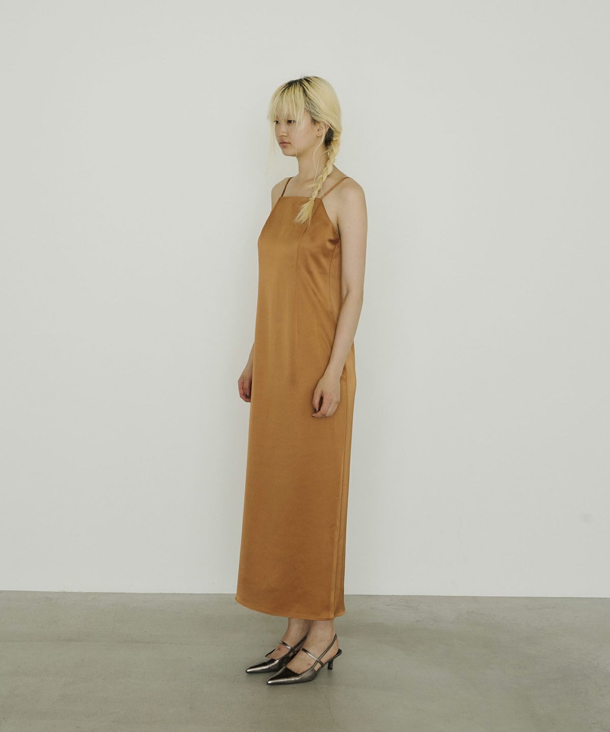 上品な光沢のダブルサテンで仕立てたキャミドレス。