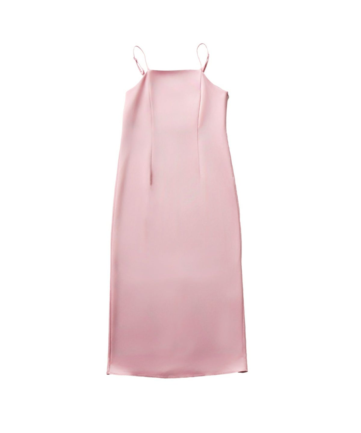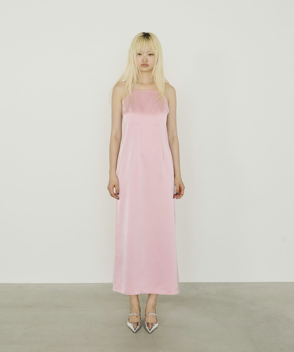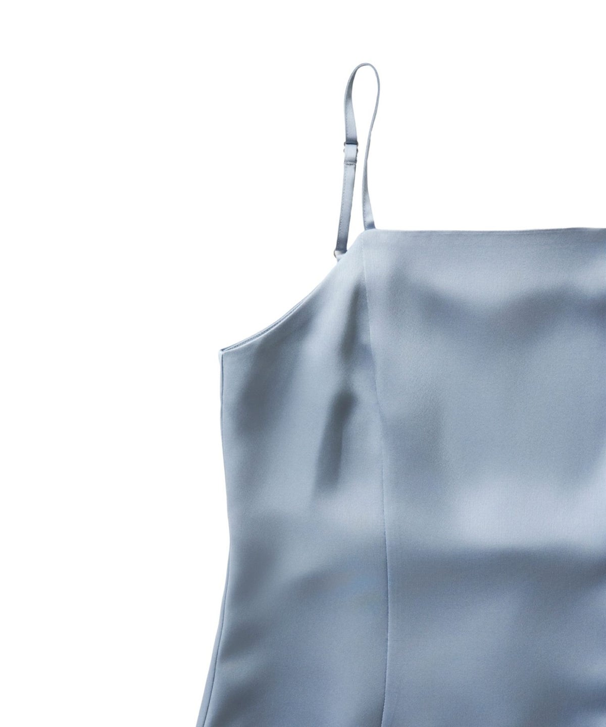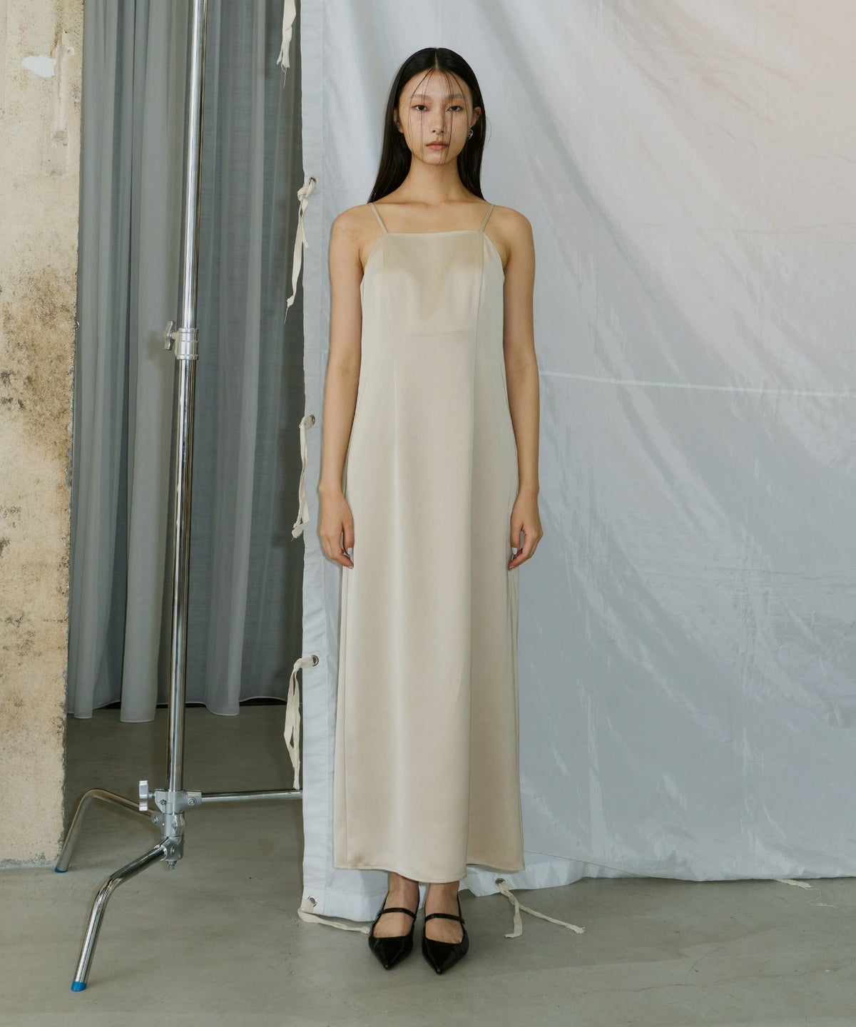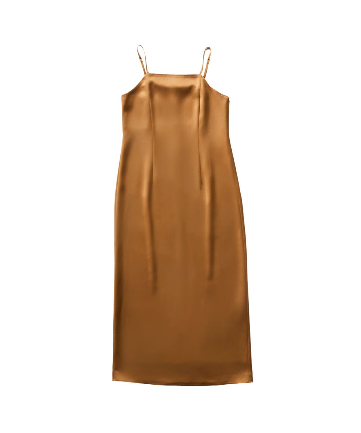 上品な光沢のダブルサテンで仕立てたキャミドレス。