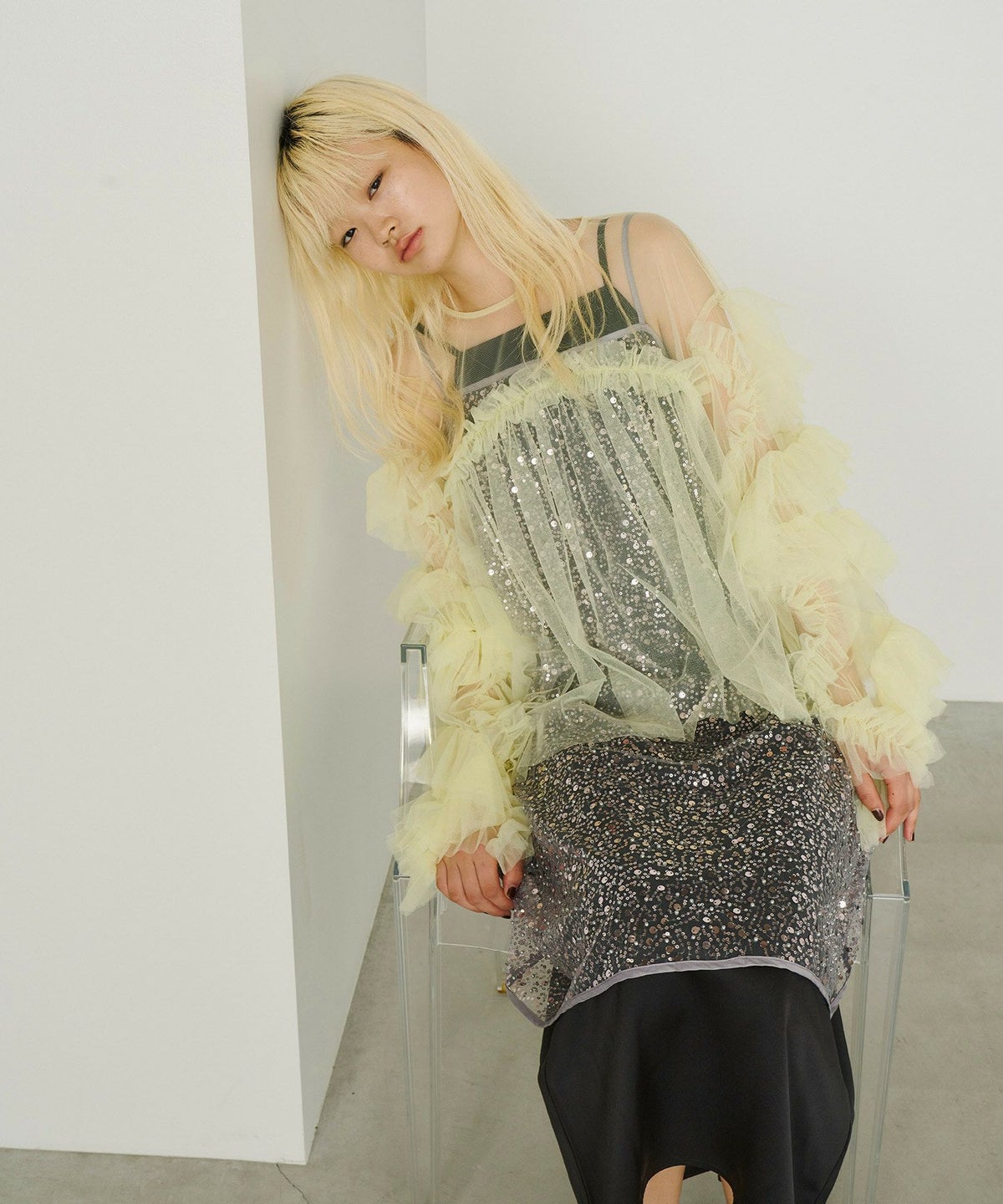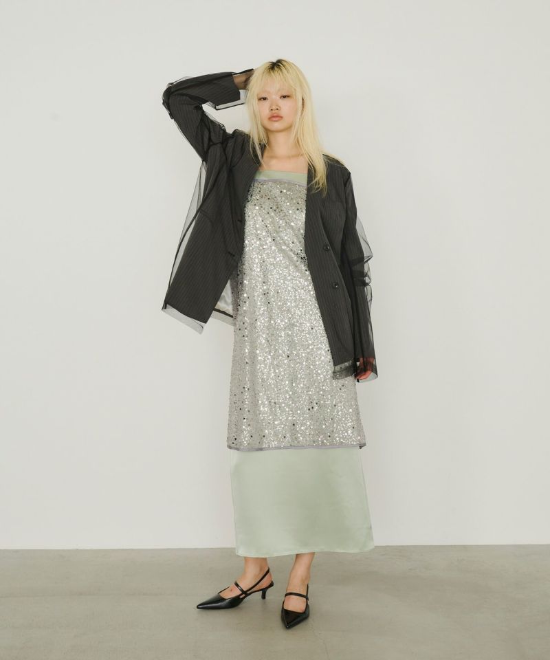 サテンのセンシュアルなムードに傾きすぎず、ヘルシーさを感じられるデザインに仕上げました。