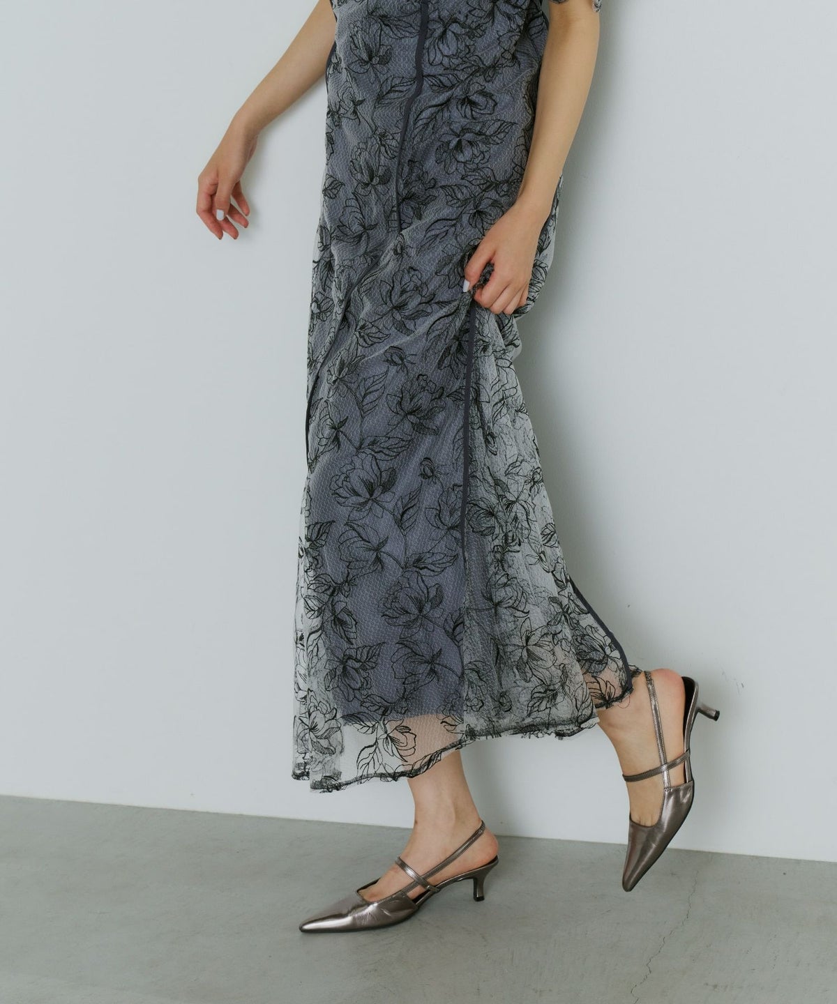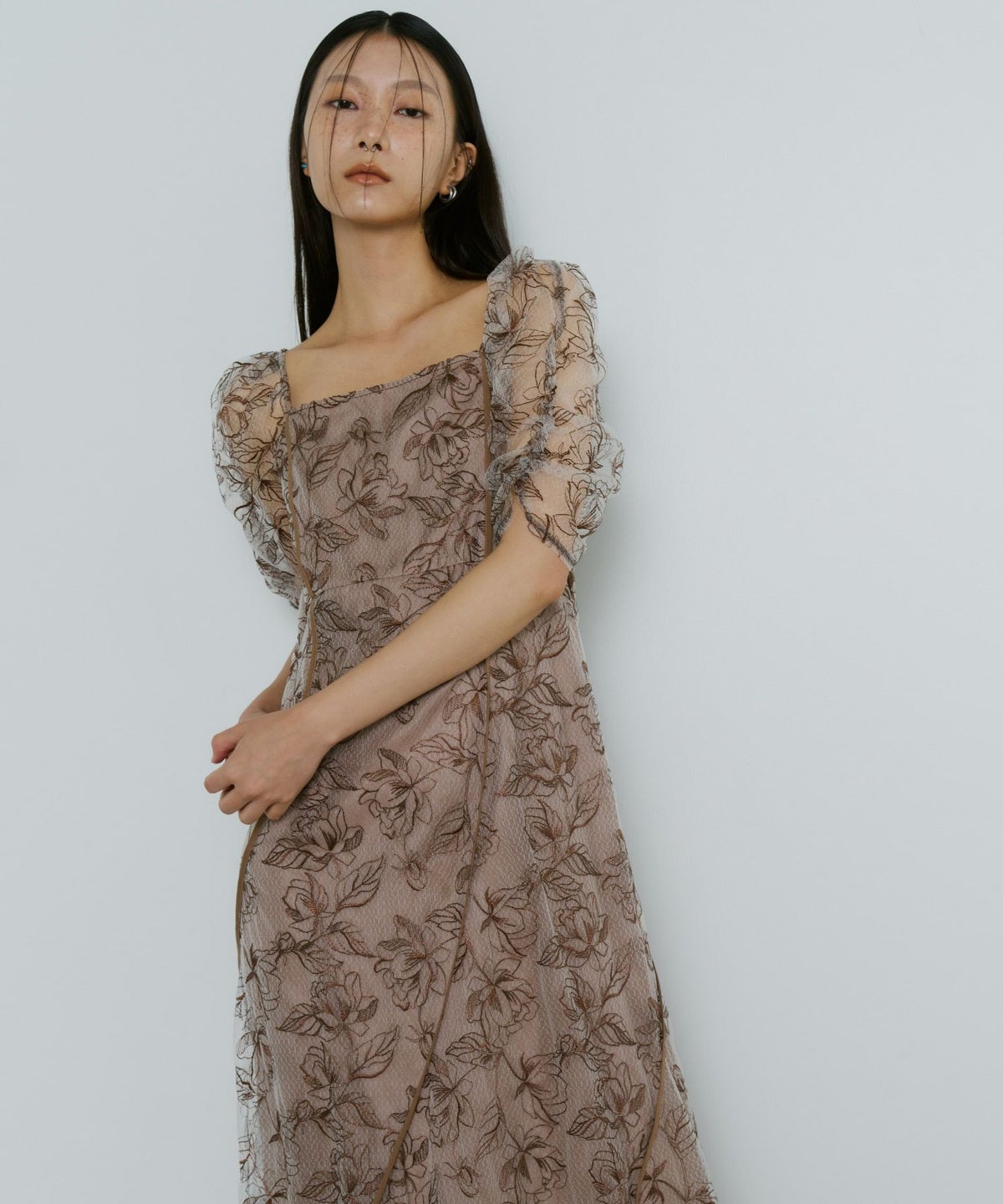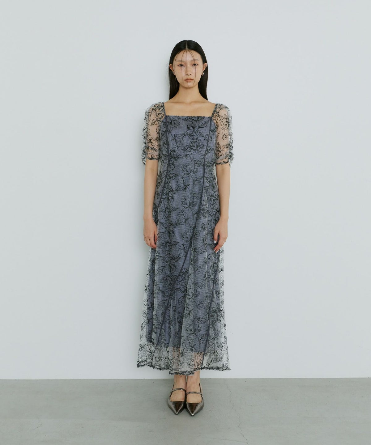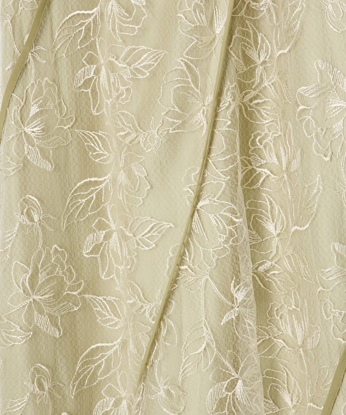 線画調の繊細なフラワー刺繍と軽やかな素材感で