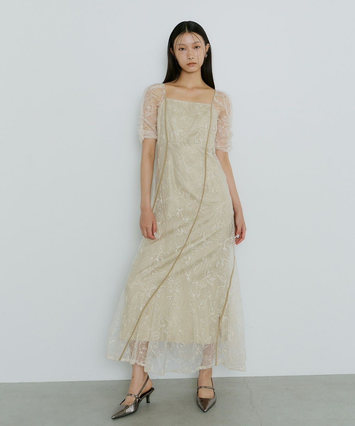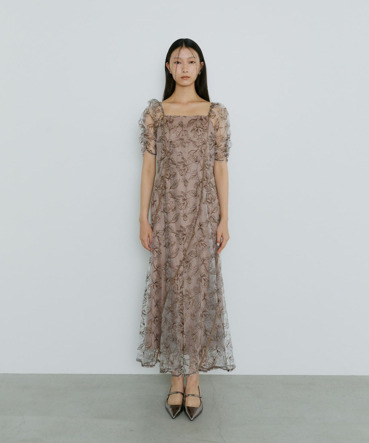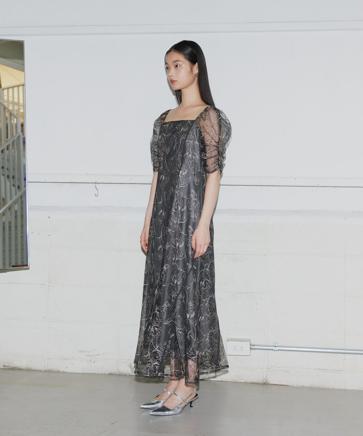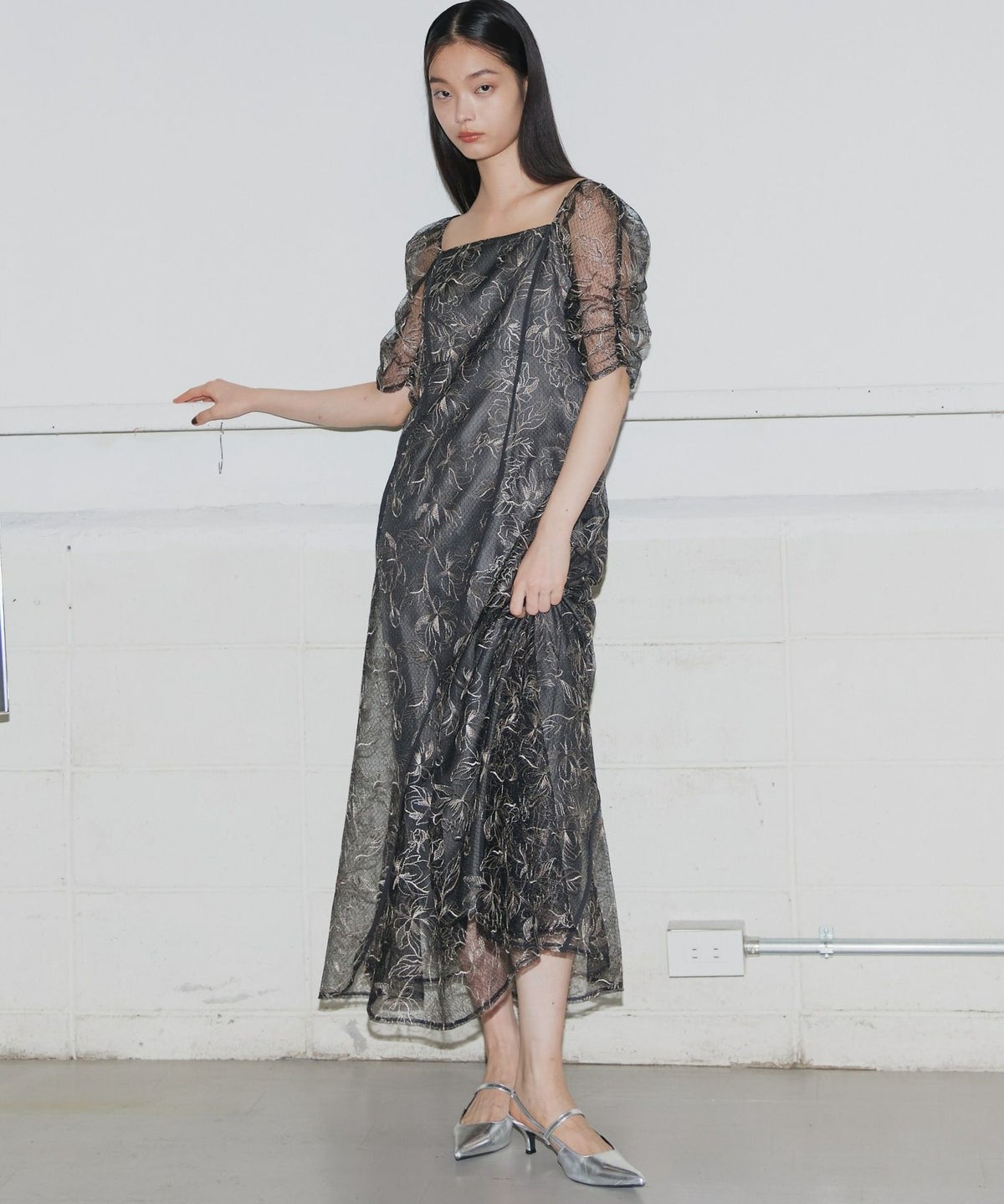 線画調の繊細なフラワー刺繍と軽やかな素材感で