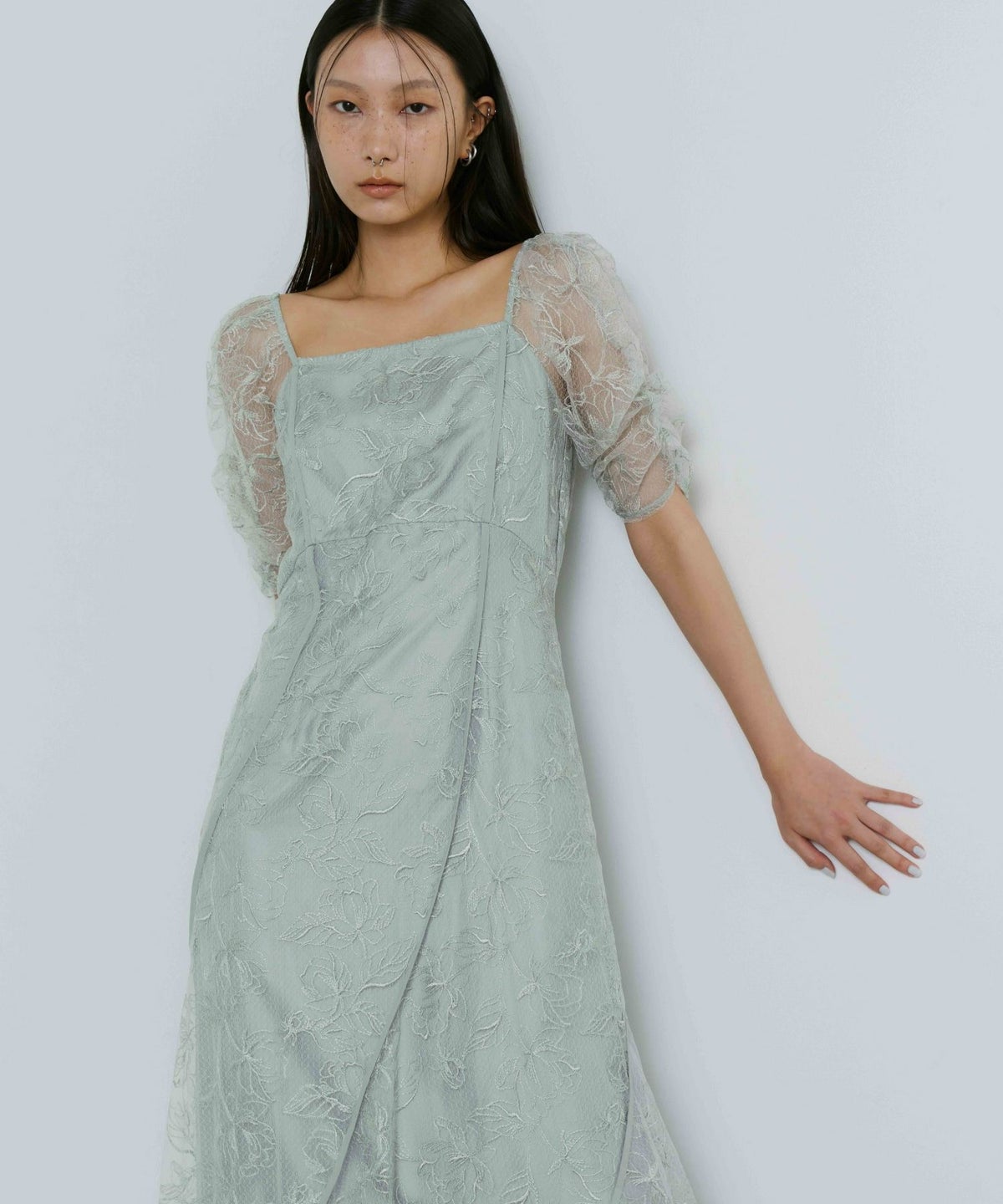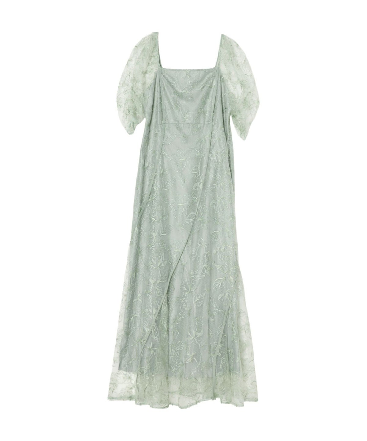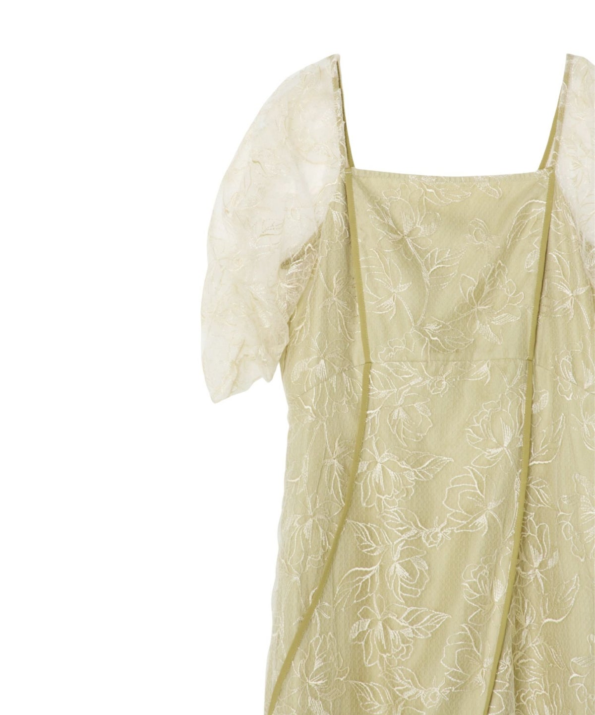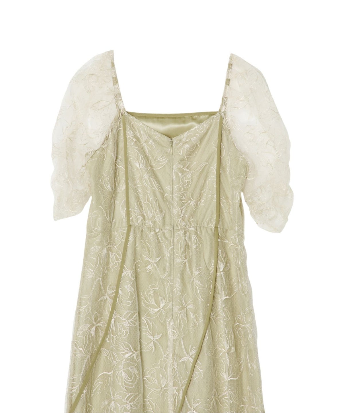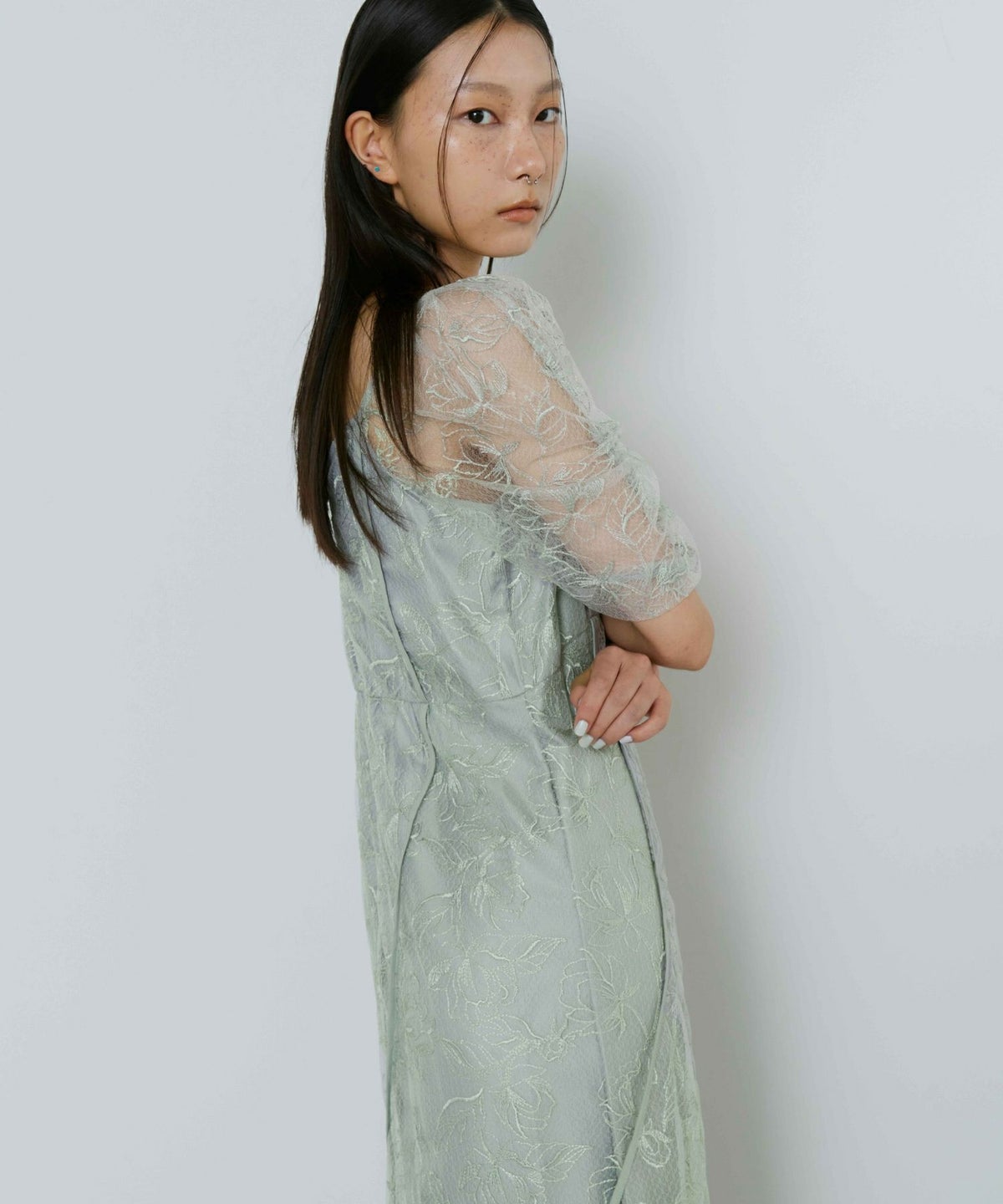 線画調の繊細なフラワー刺繍と軽やかな素材感で