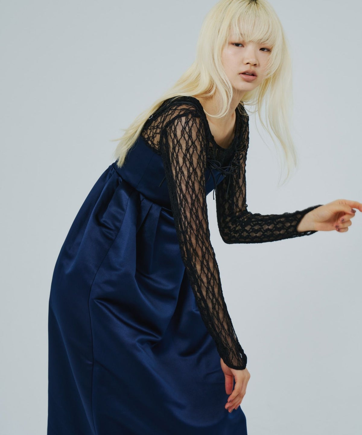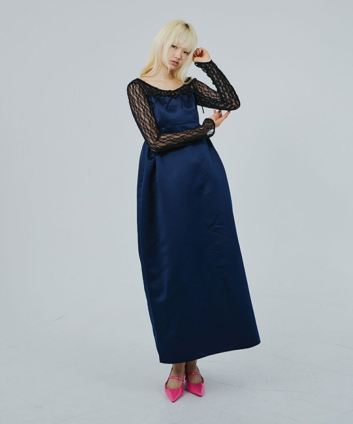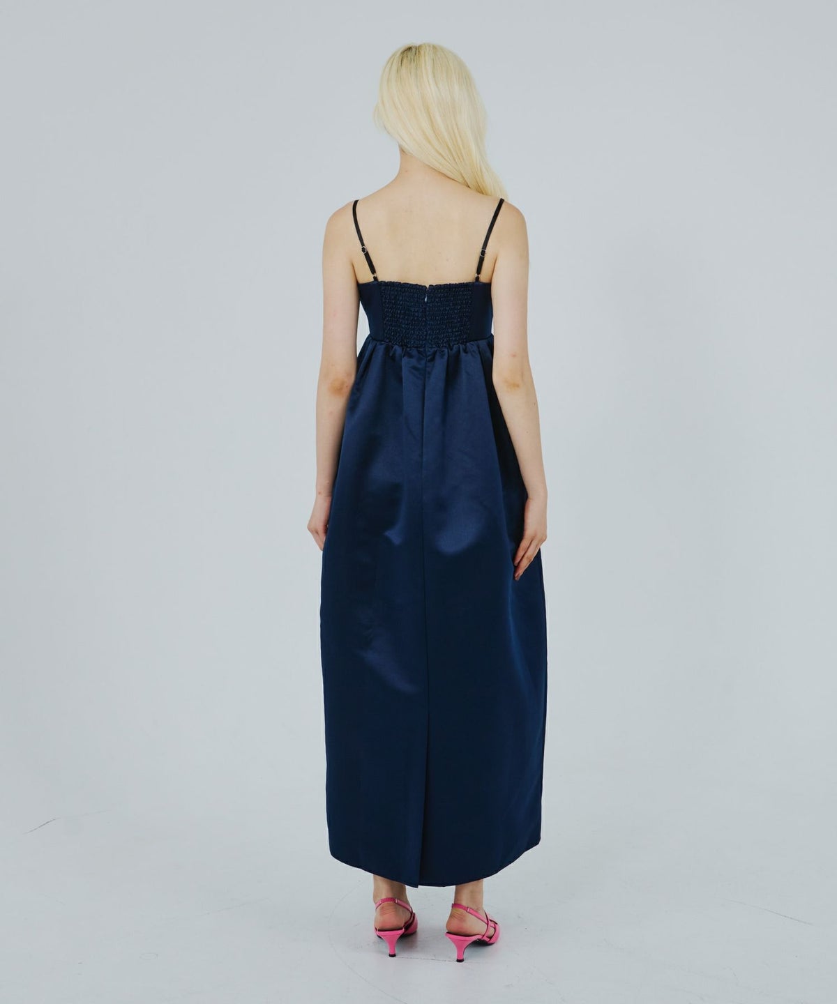 ハリと光沢を兼ね備えた上質な生地を使用し、理想のフォルムを追求するために何度も試作を重ねたこだわりのドレス。