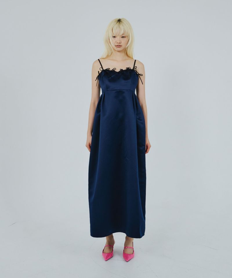 シンプルながらディティールに拘ったツヤっぽサテンドレス。