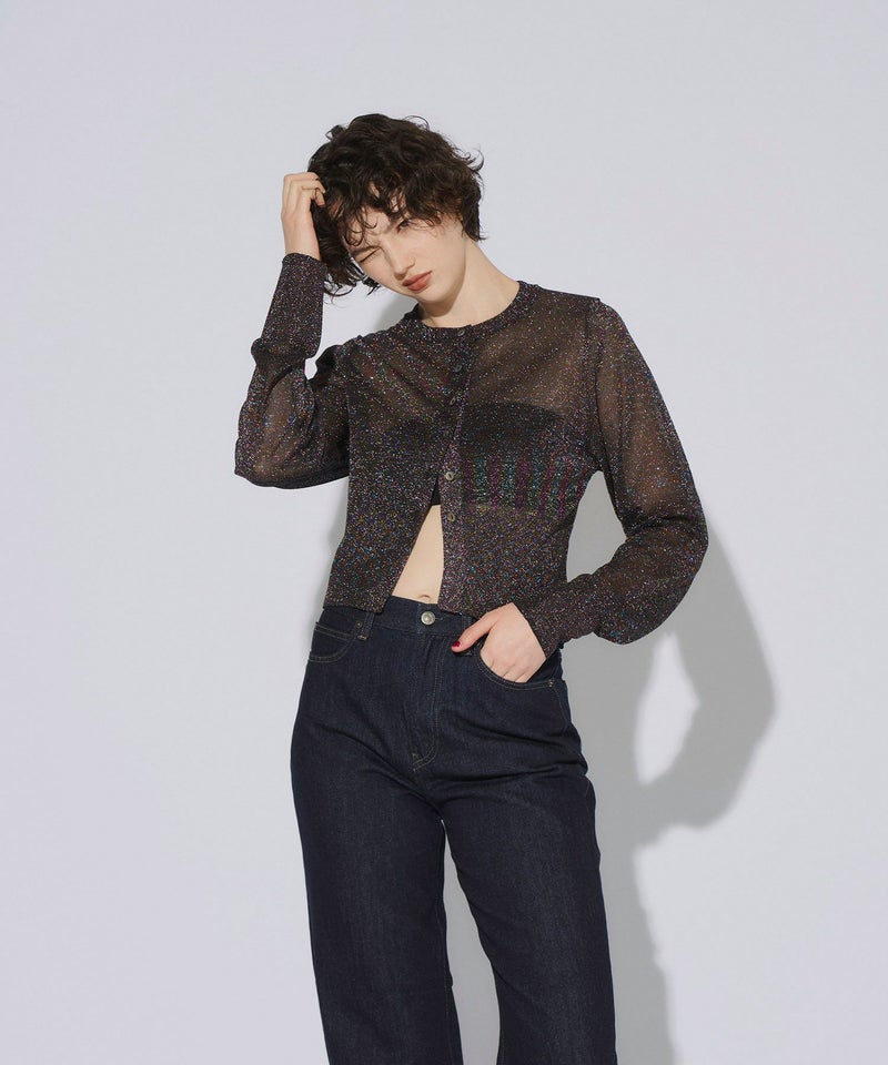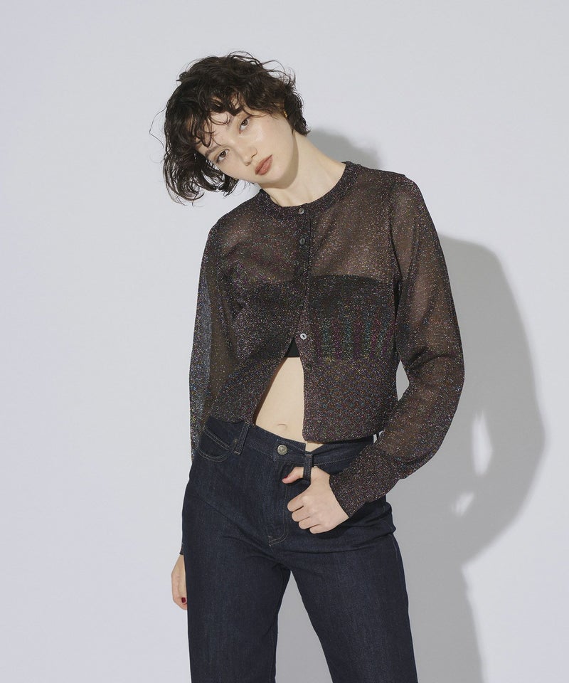 glitter crew neck cardigan