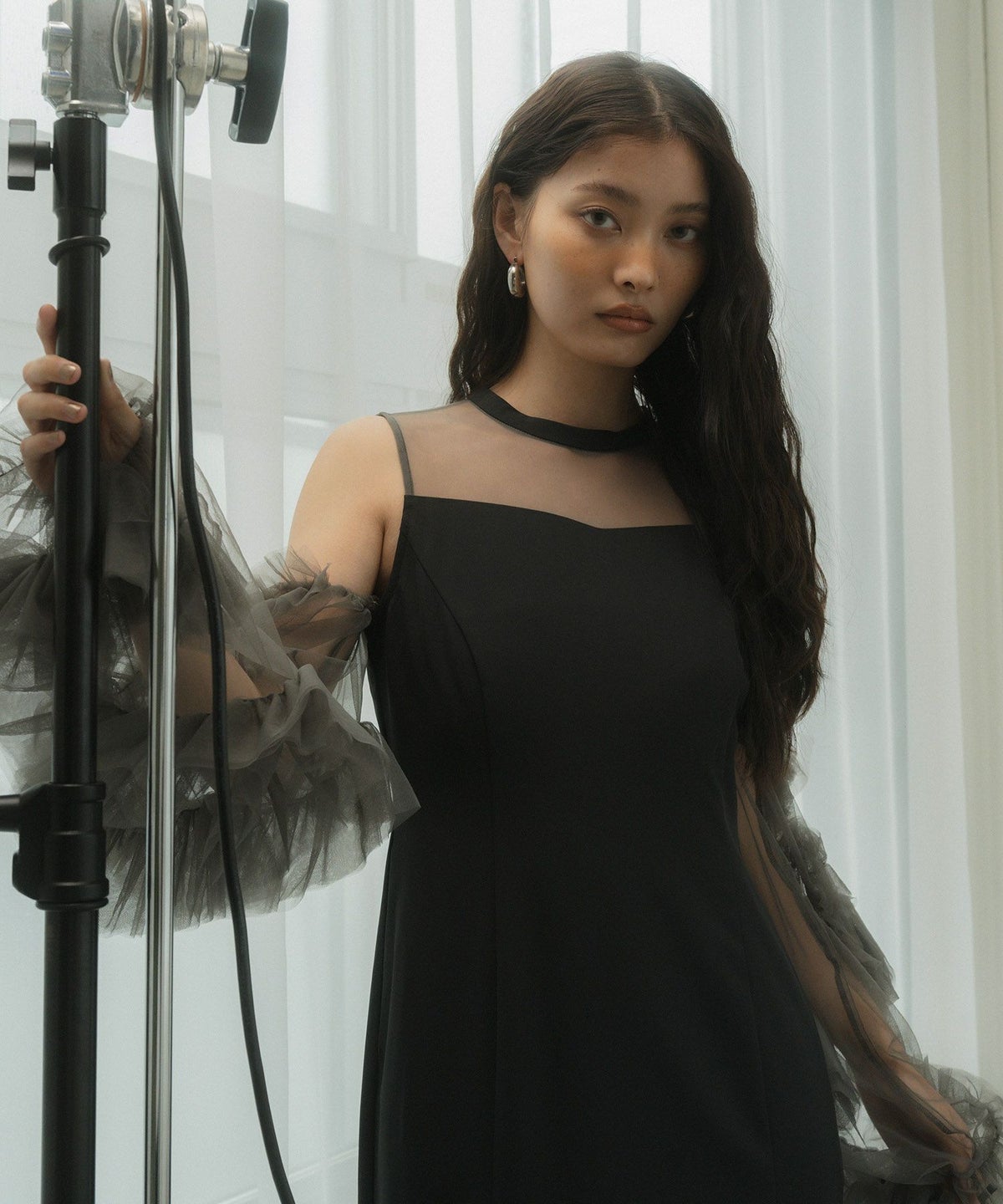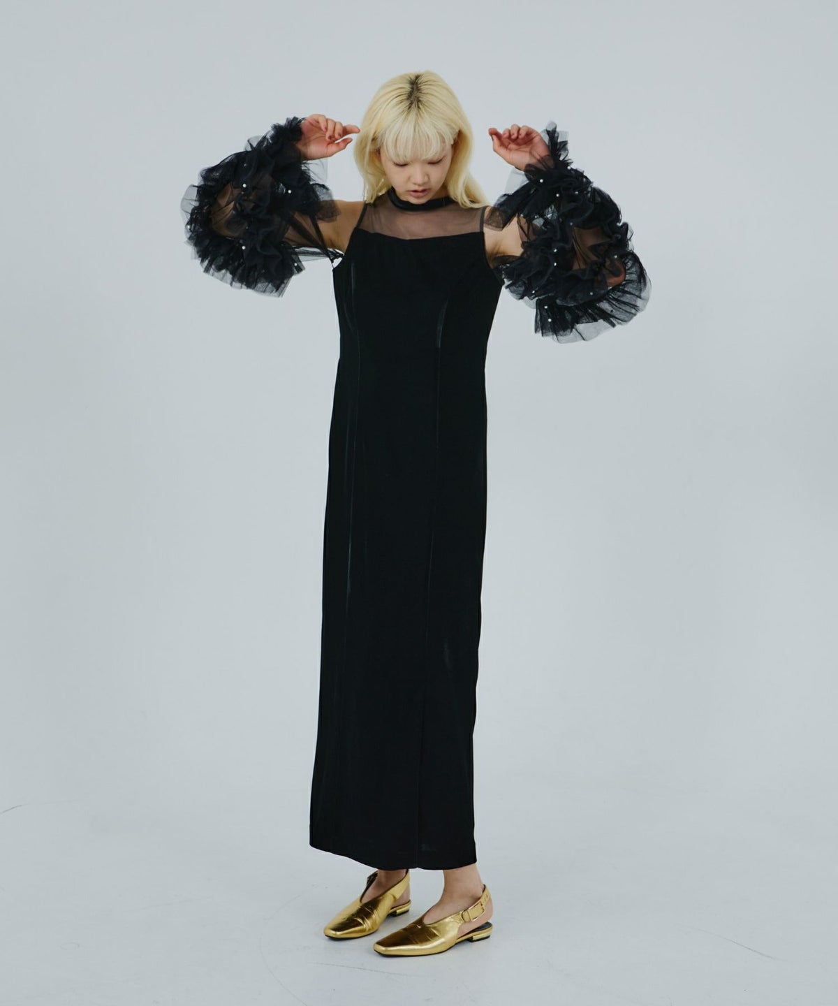 合わせるワンピースはシンプルなデザインに抑えて、ボリュームスリーブがより際立つバランスに。