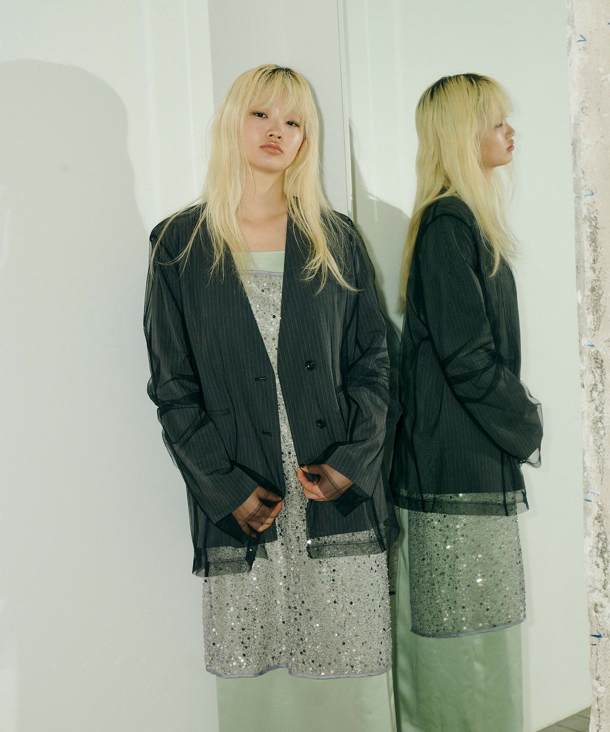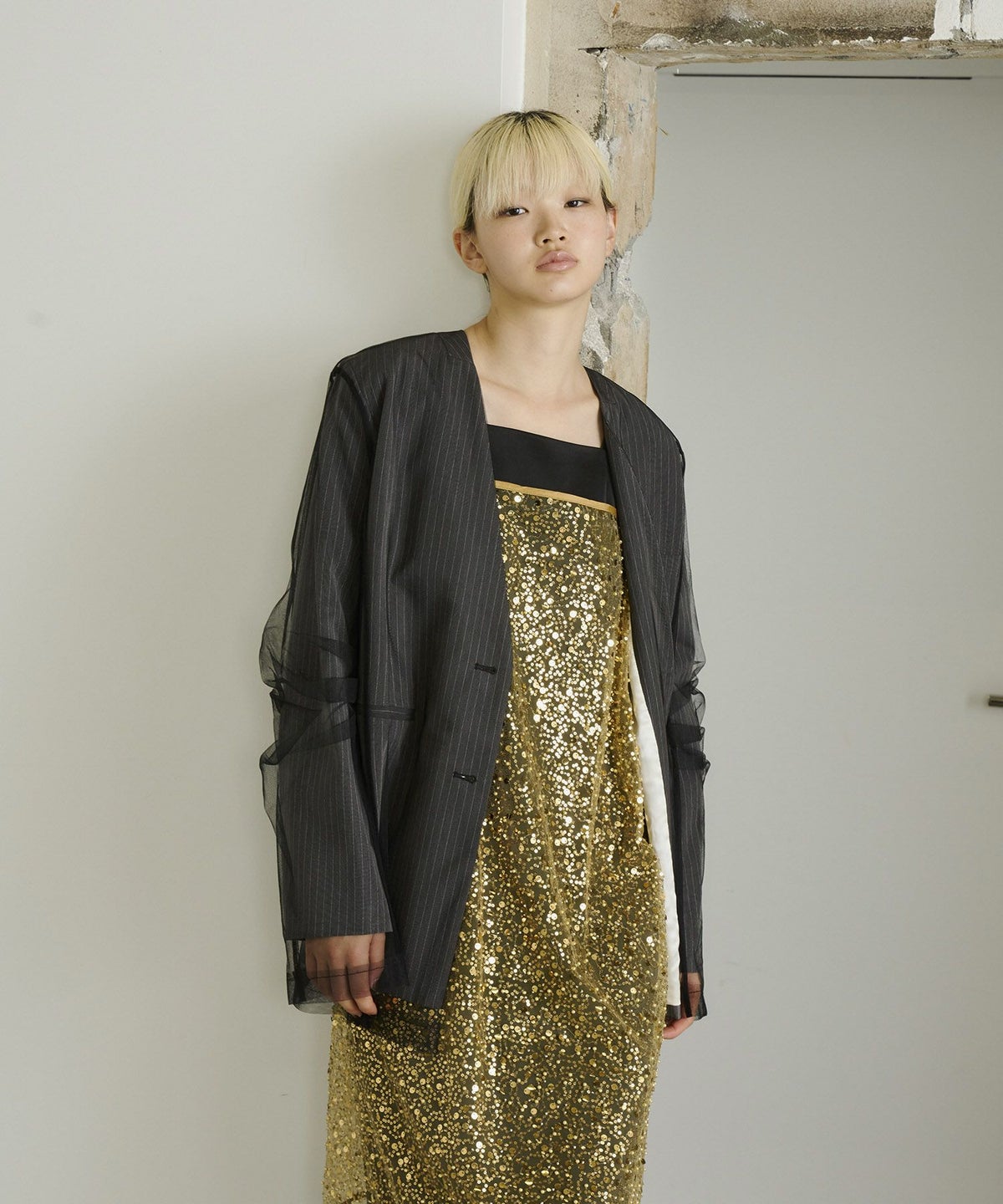 程よい透け感ときらめきが、重ねるアイテムにさりげない華やかさを加えてくれます。