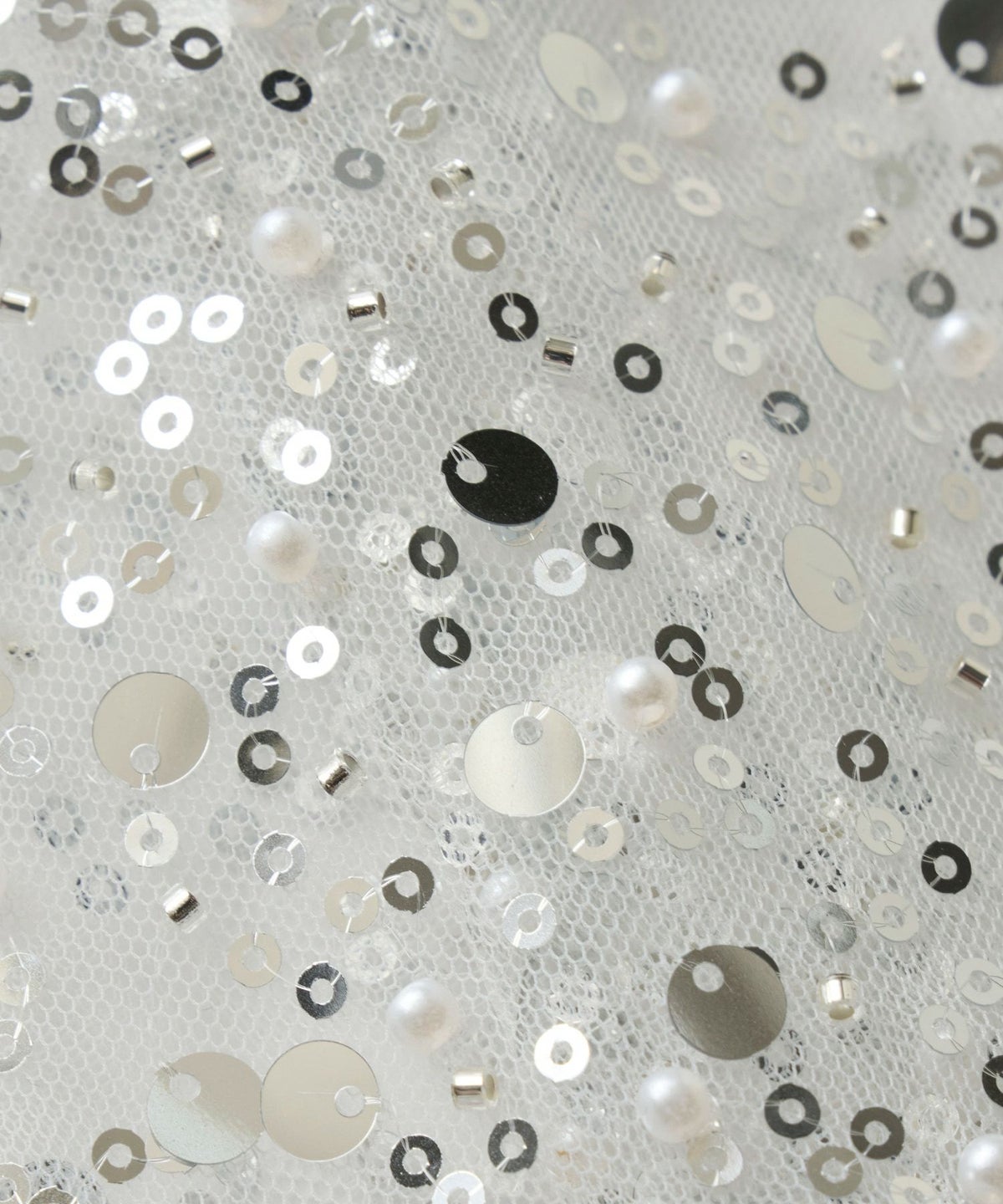非常にデリケートな素材のため、優しくお取り扱いください。引っ掛かったり、無理な力が加わると、ビーズやスパンコールが取れてしまう場合がございます