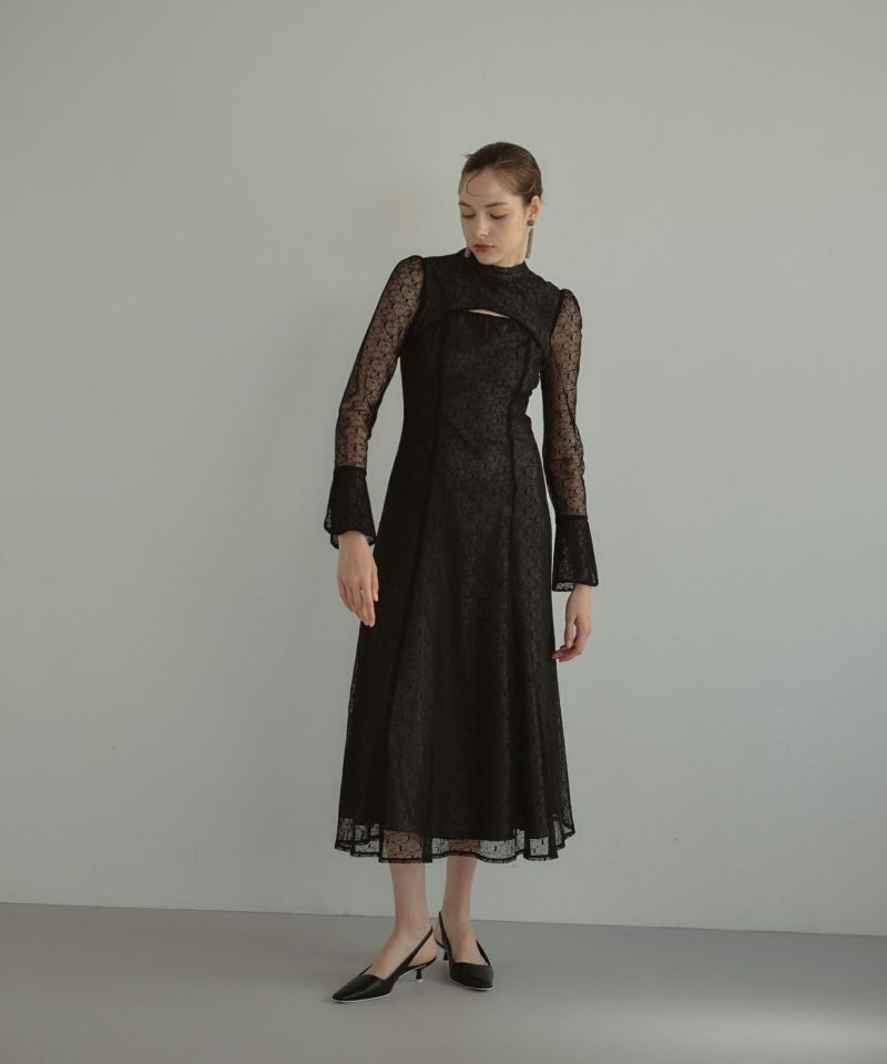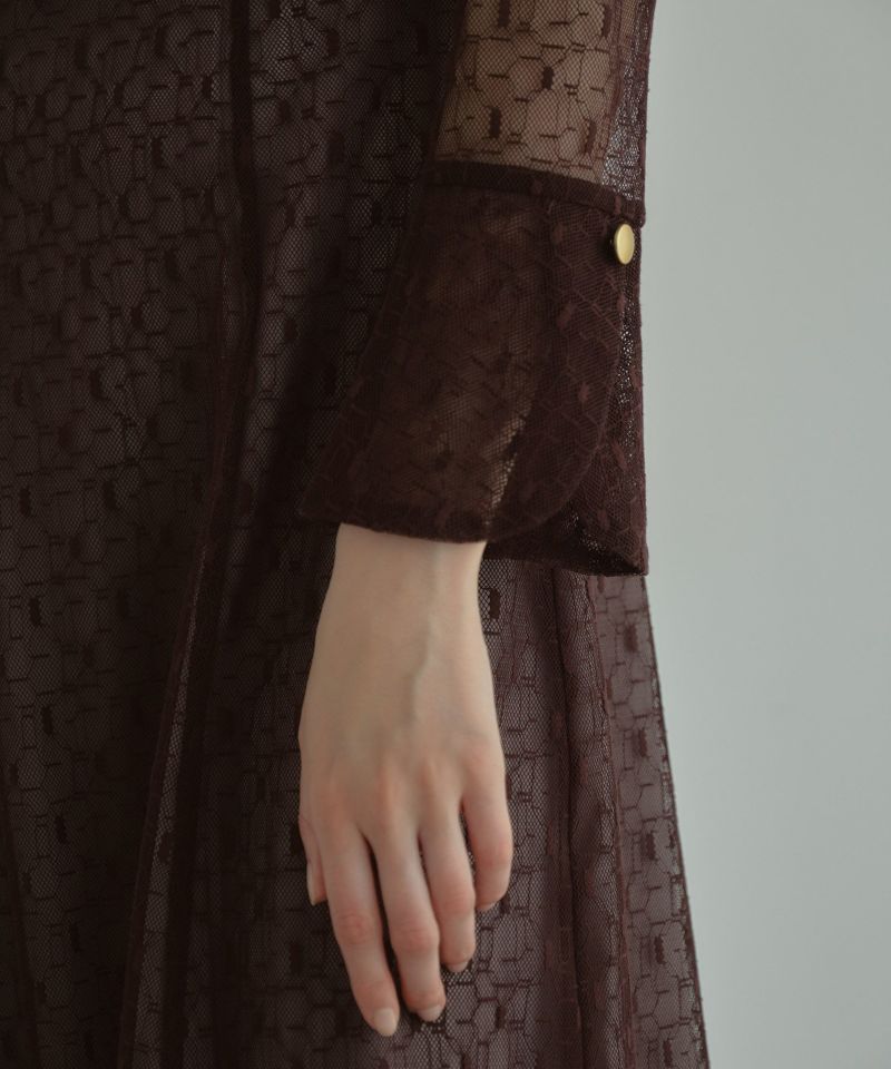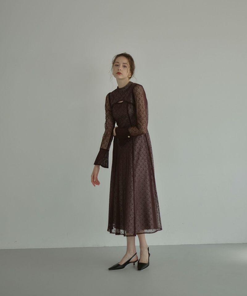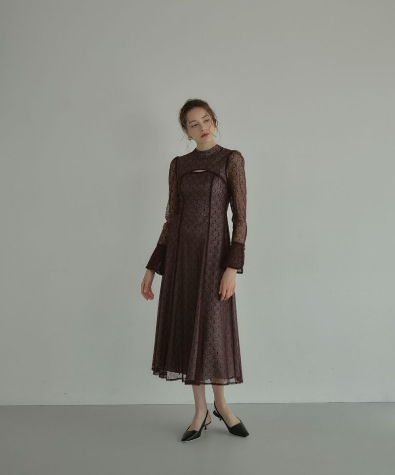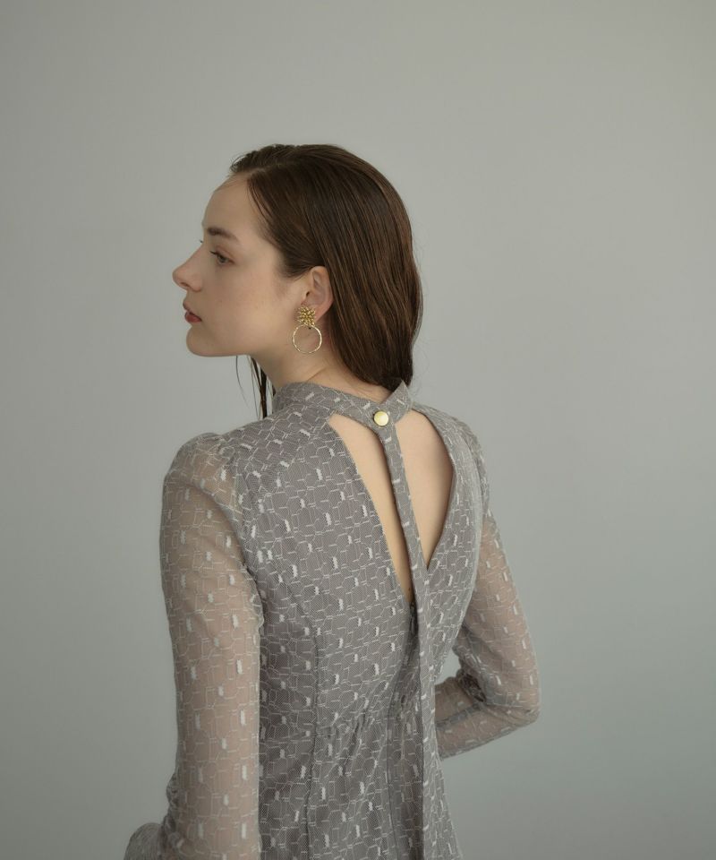 幾何学柄はプリントではなく実はレースなので、オケージョンシーンでも上品にきていただけます◎