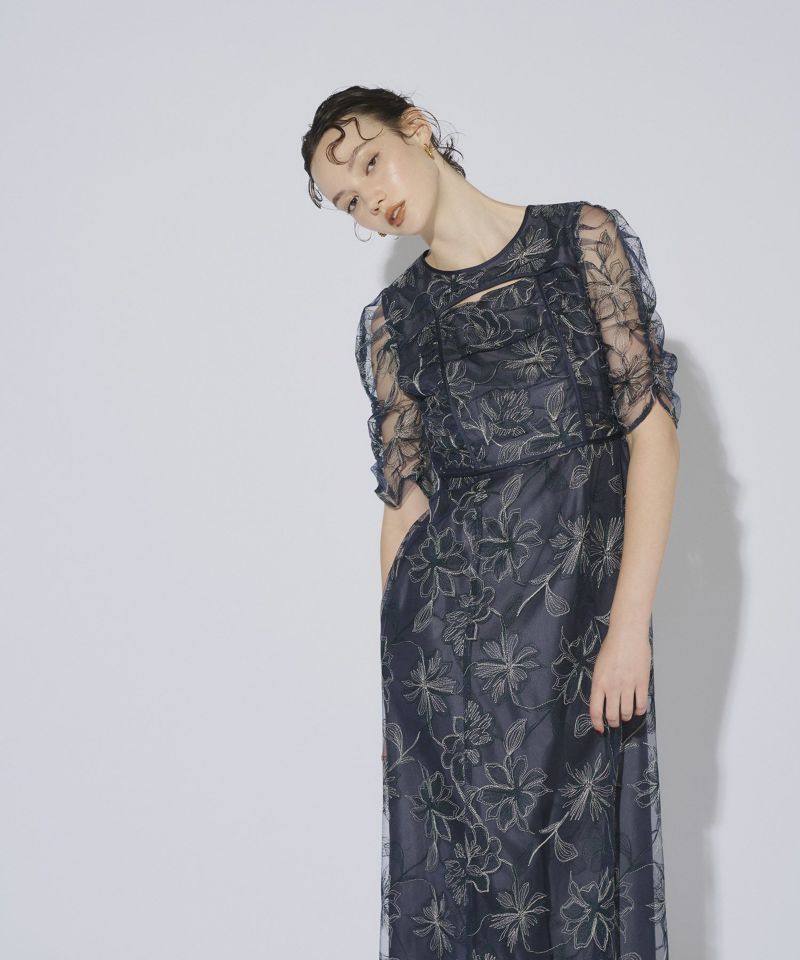 刺繍素材を使ったAラインドレスは、どのオケージョンシーンにおいても間違いのない1枚です。