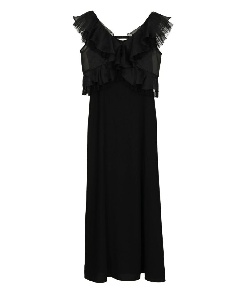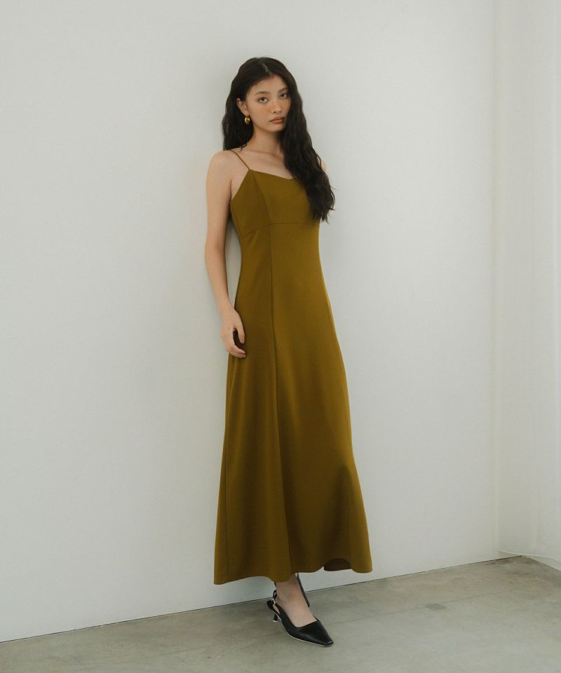 合わせるキャミドレスはジョーゼット素材でスッキリしたフレアシルエットを採用。