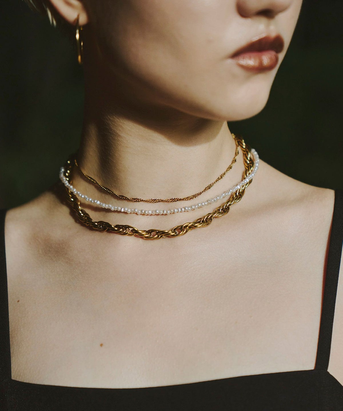 組み合わせ次第で何通りにも使える3点マルチネックレス。