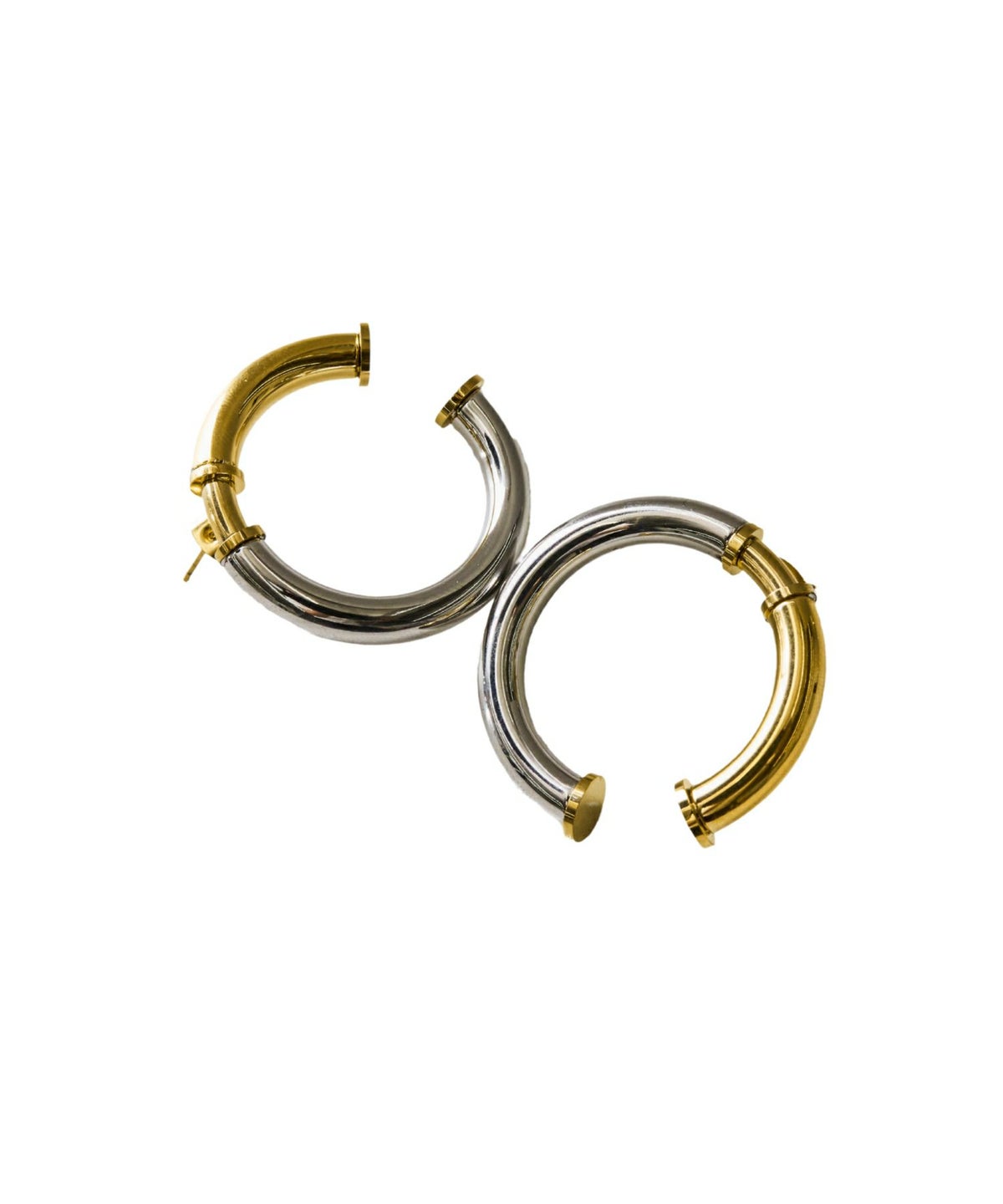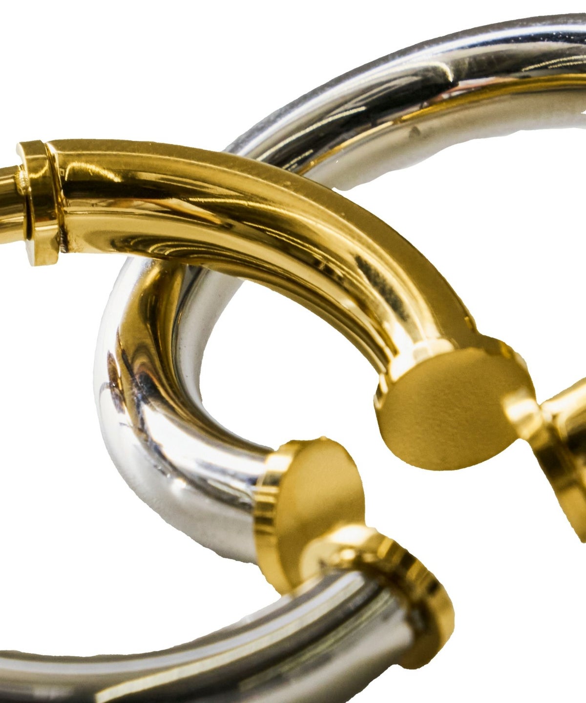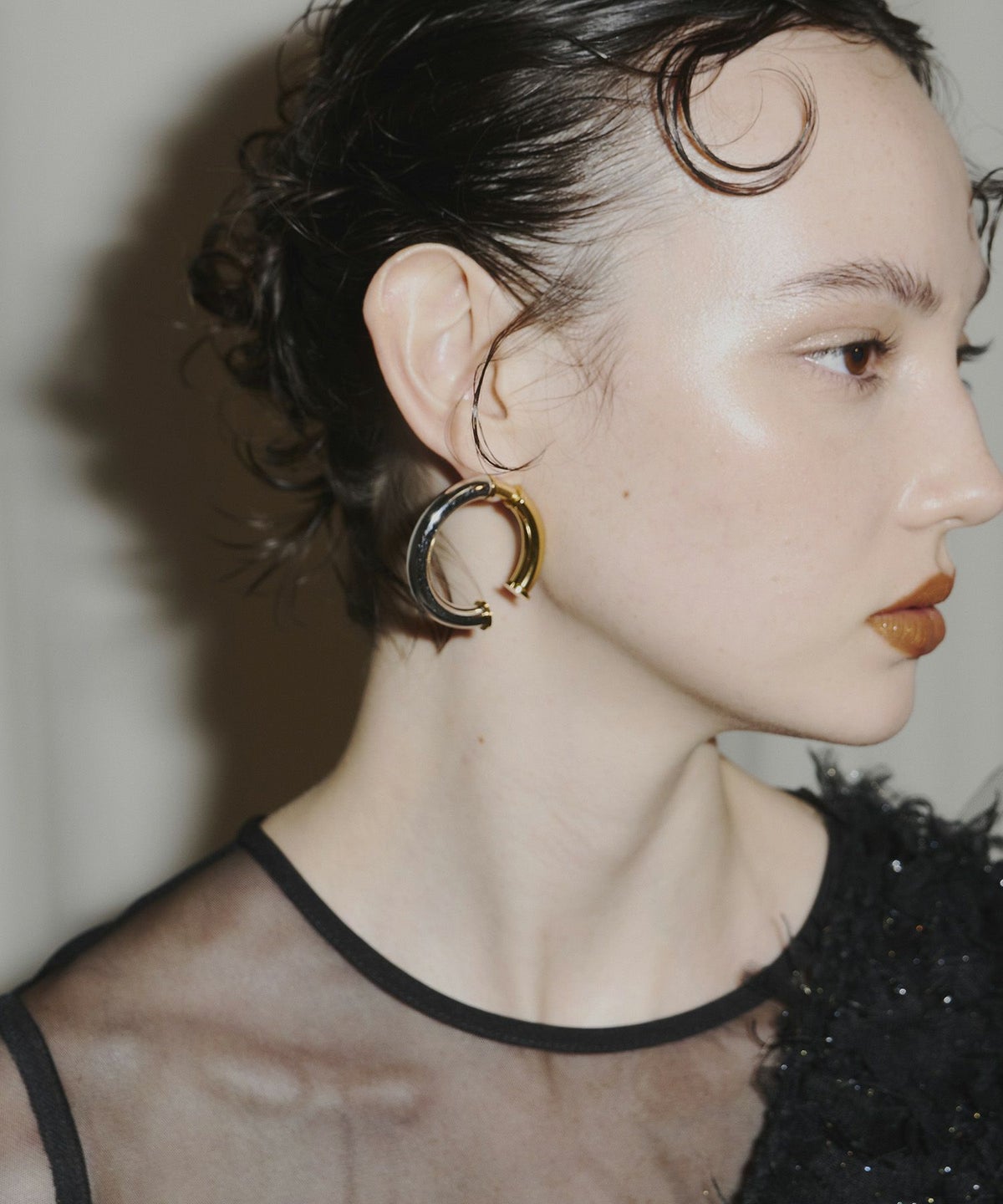 モードなスタイリングのポイントにぴったりな大振りで存在感のあるリングピアス。