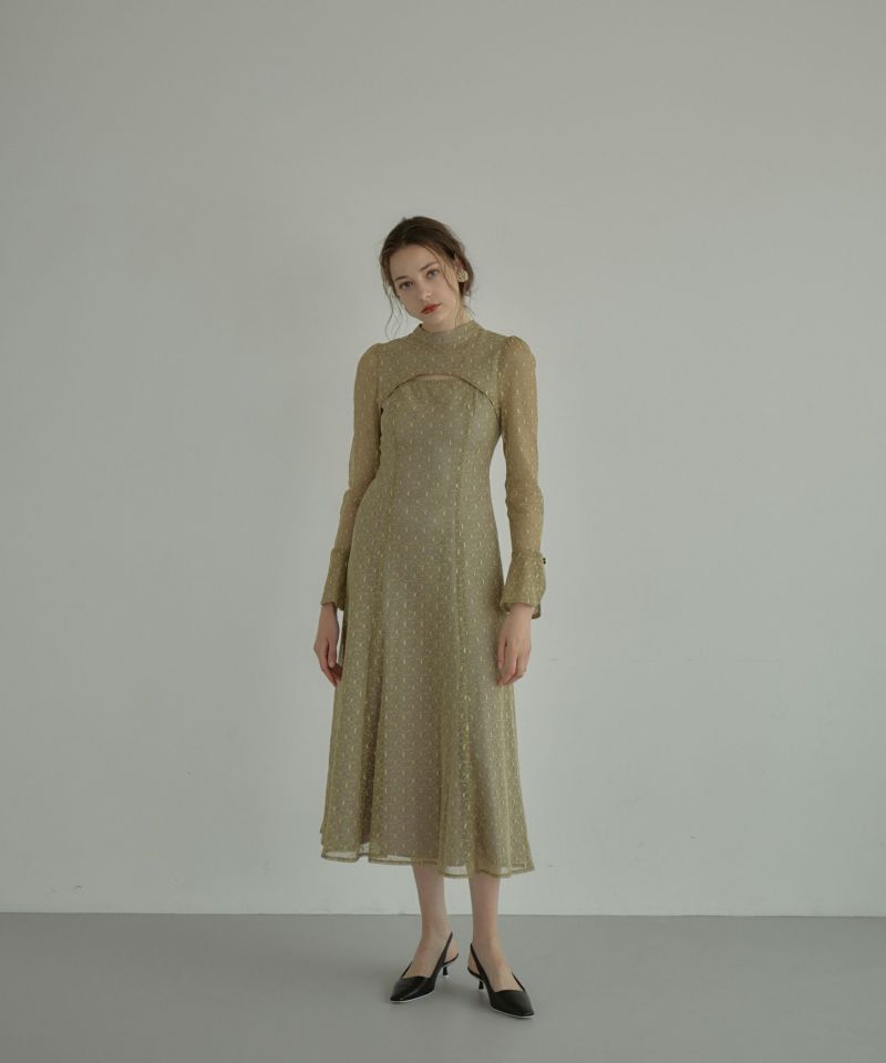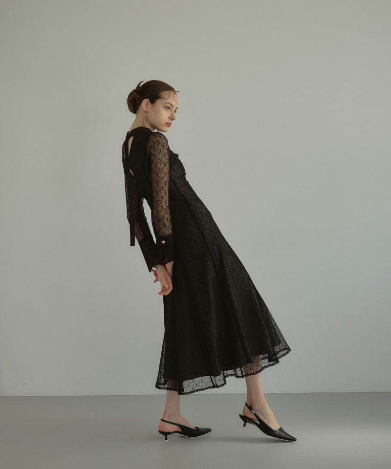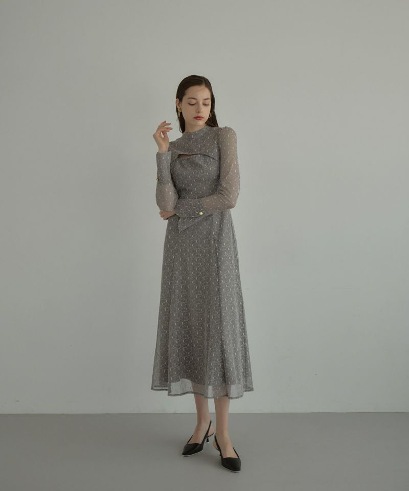 幾何学柄はプリントではなく実はレースなので、オケージョンシーンでも上品にきていただけます◎
