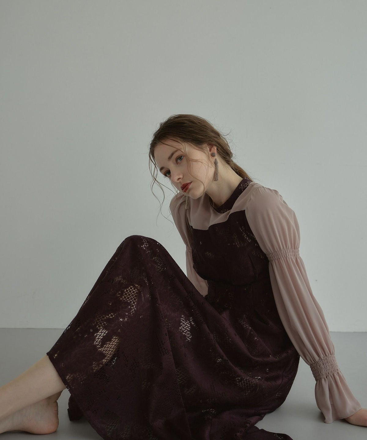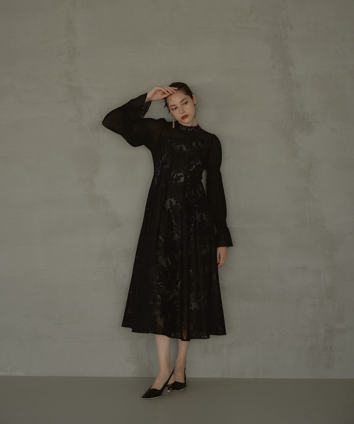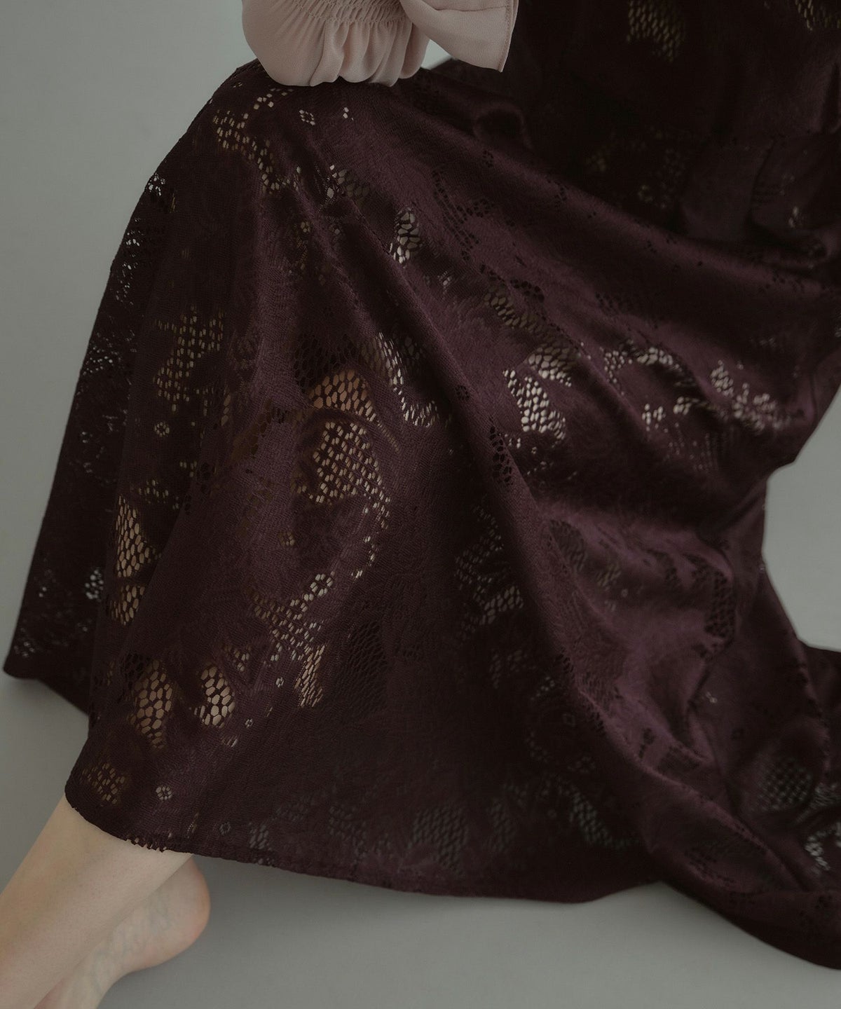ほどよい肉感と光沢感のあるレースを採用した、高級感漂うドレス。