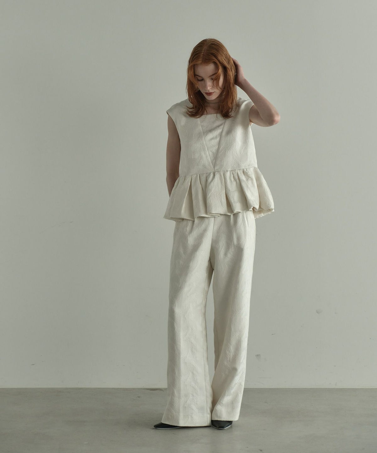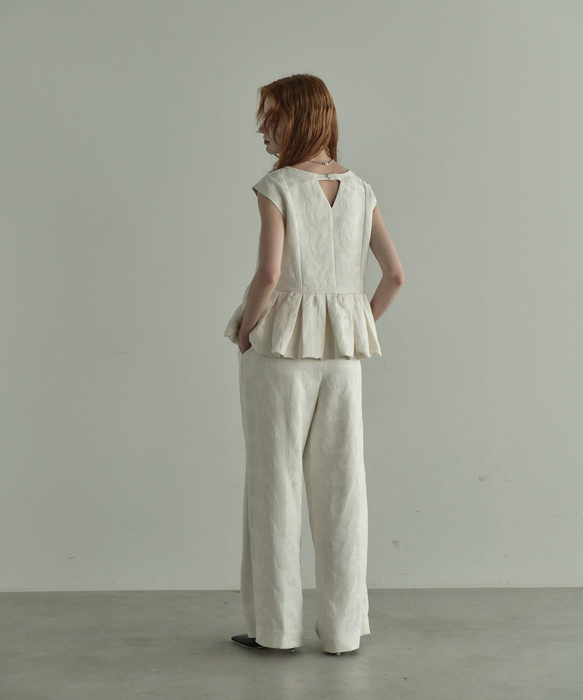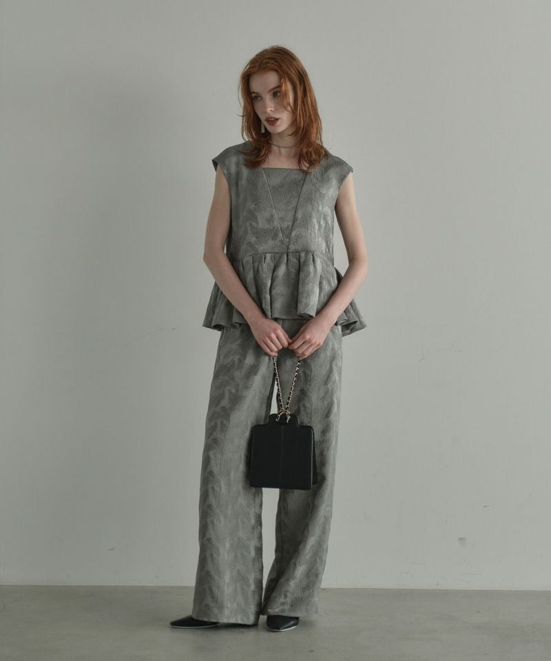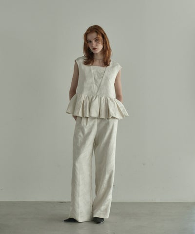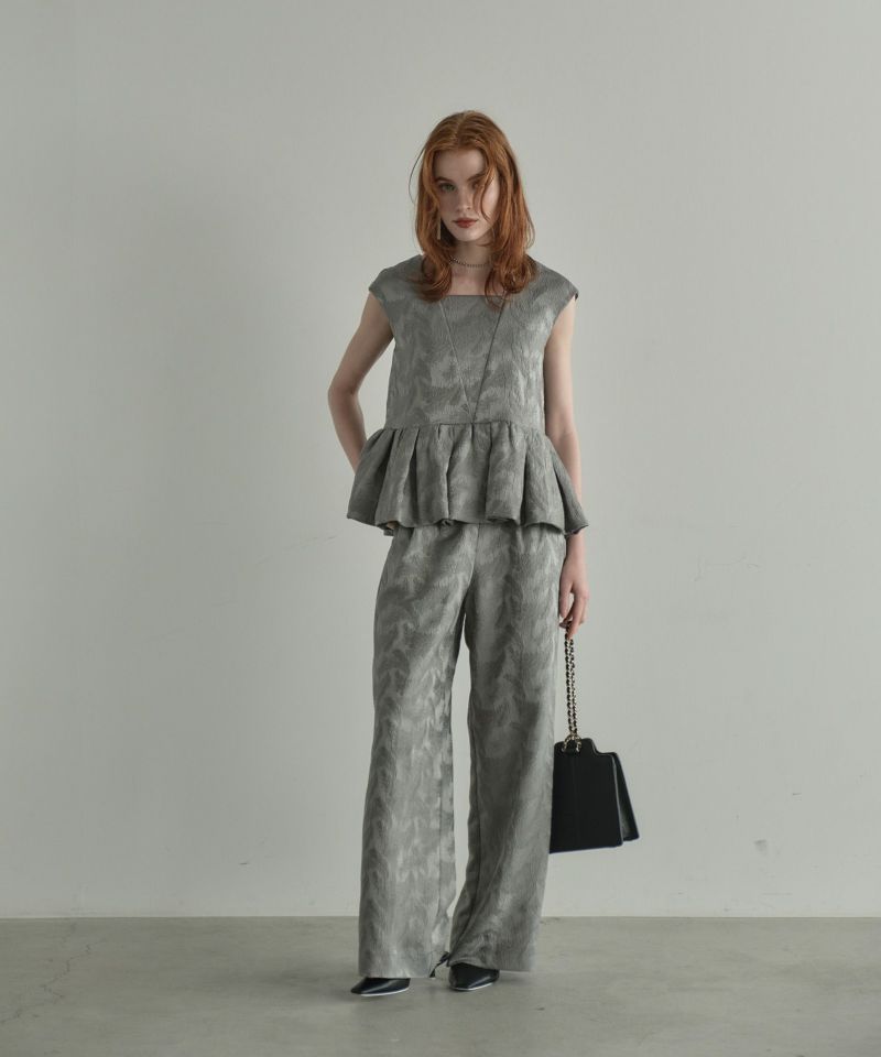 フェザー柄のジャガード素材でお作りした、パンツセットアップ。