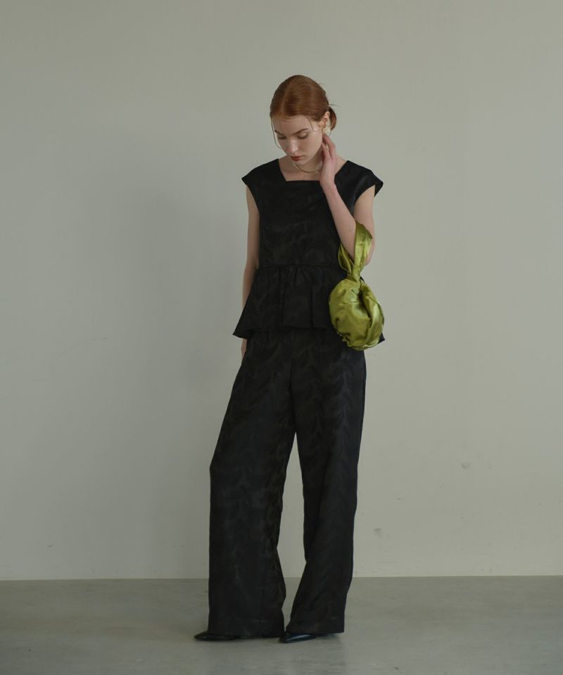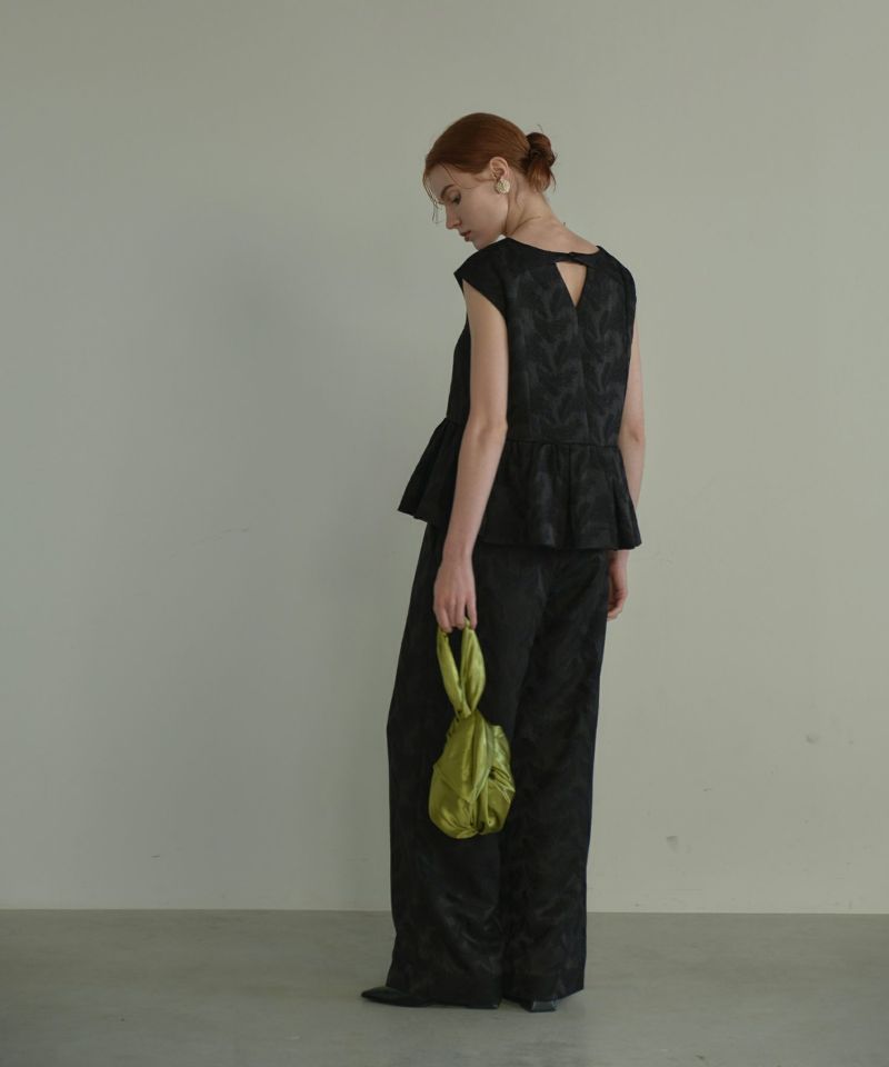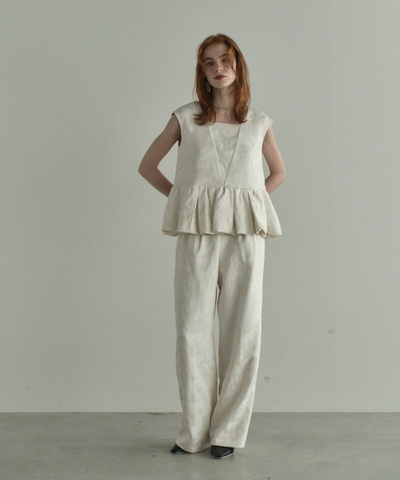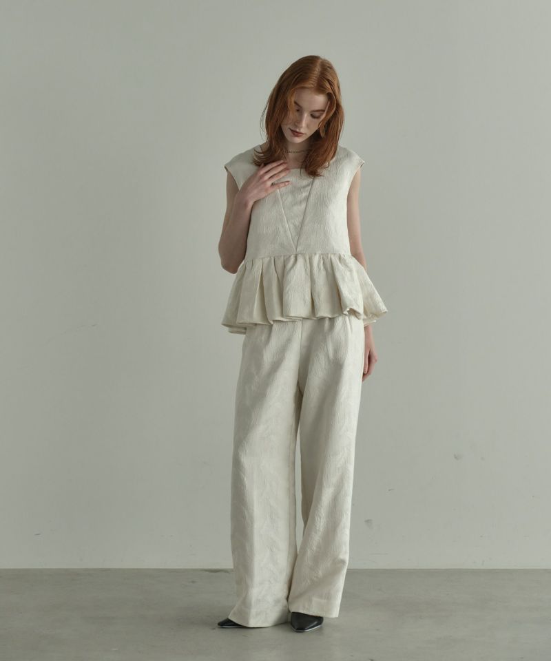 フェザー柄のジャガード素材でお作りした、パンツセットアップ。