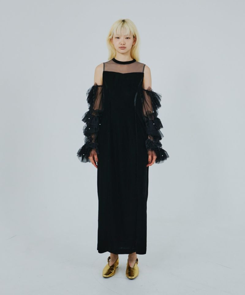 大人気の「decorative tulle tops」と同じチュールを採用し、ハリ感と柔らかさの絶妙なバランスで、たっぷりなボリュームフリルでも柔らかな着心地。