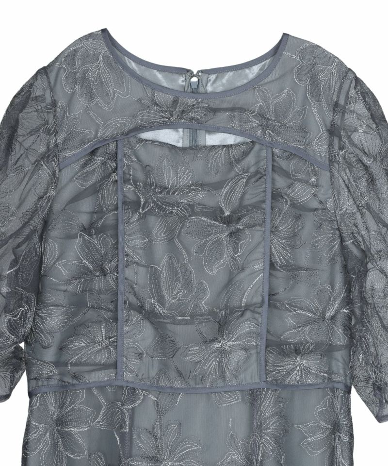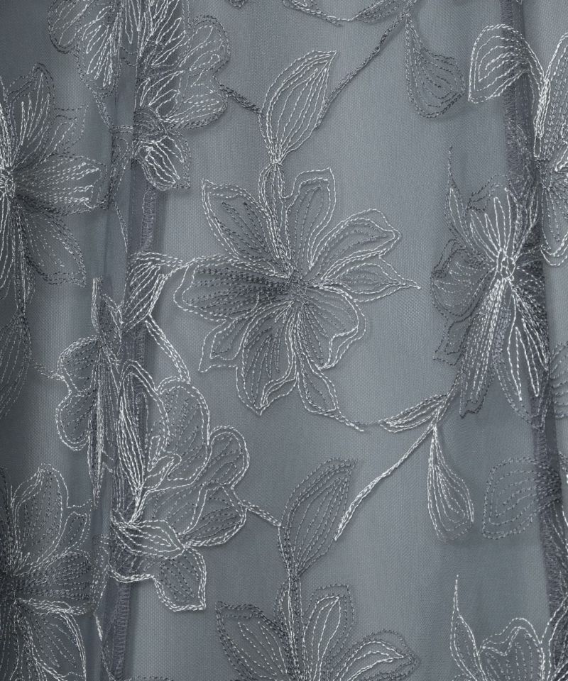 チュール素材に、甘すぎないフラワー柄を刺繍した素材を使用。
